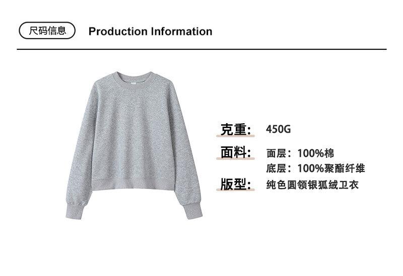 Sudadera pesada de otoño e invierno de 450 g de algodón puro compuesto con forro polar de zorro plateado cálido de cuello redondo para mujer, marca de moda, color sólido, sencilla, top para llevar debajo