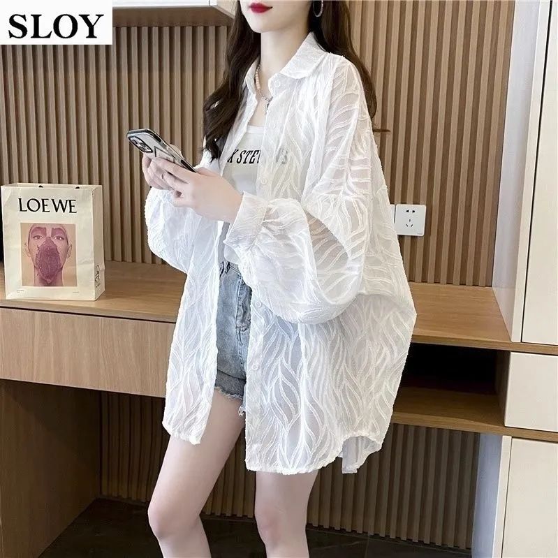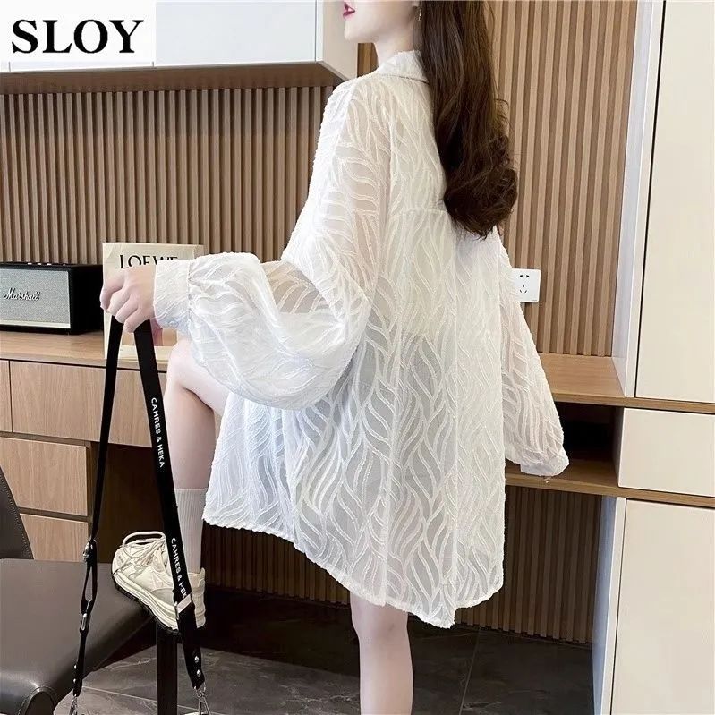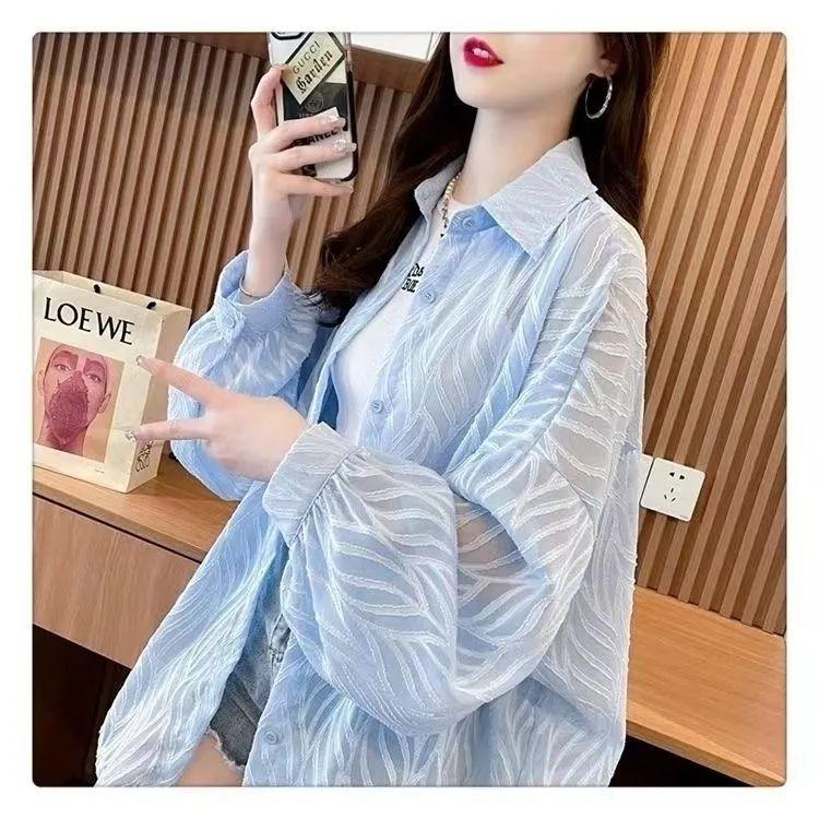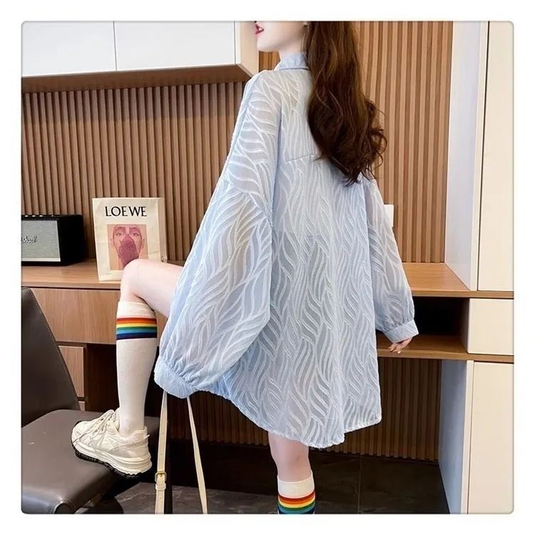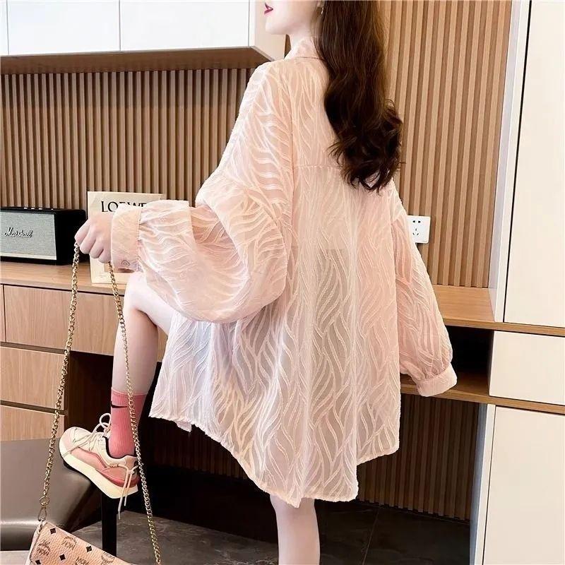 Camisa de Manga Larga para Mujer Verano 2025 Nueva Talla Grande Suelta Delgada Transpirable Chaqueta Cárdigan Top Moderna y Versátil