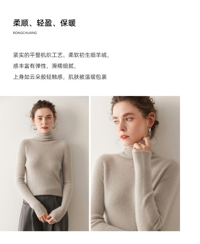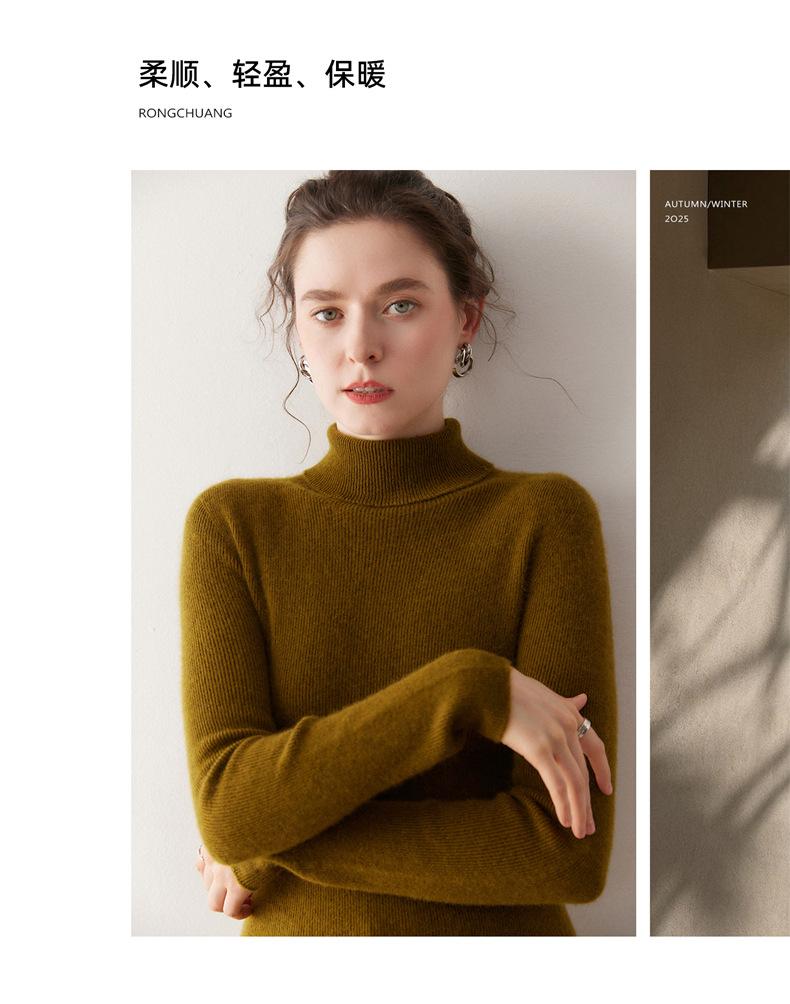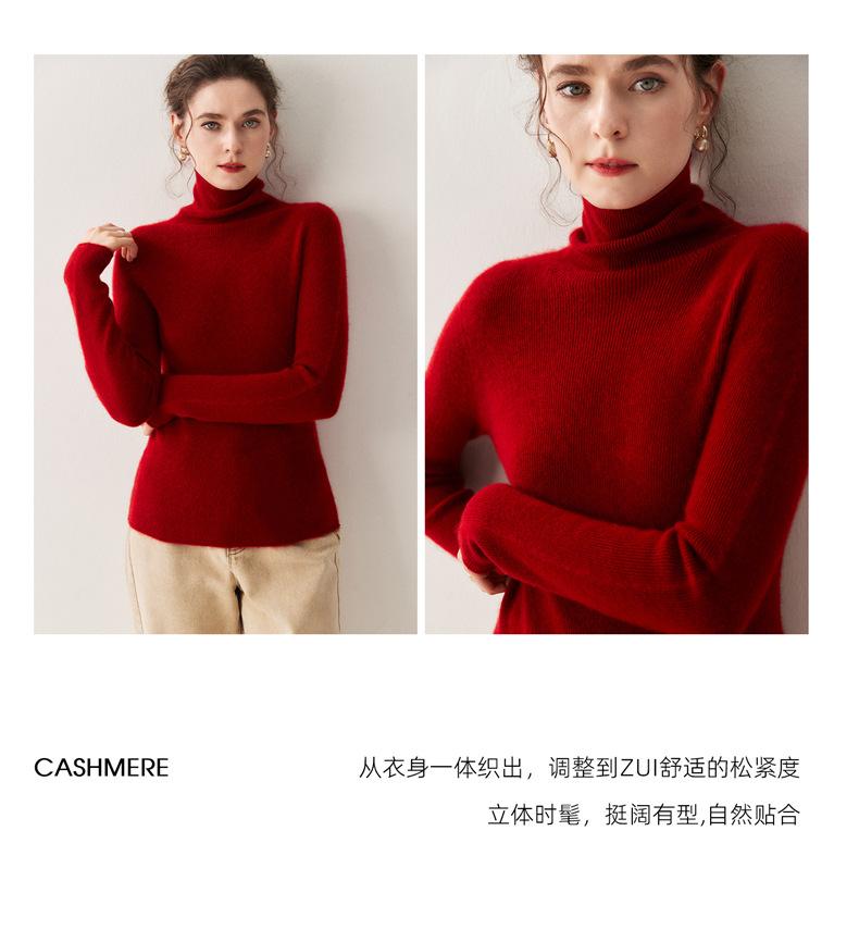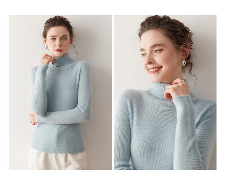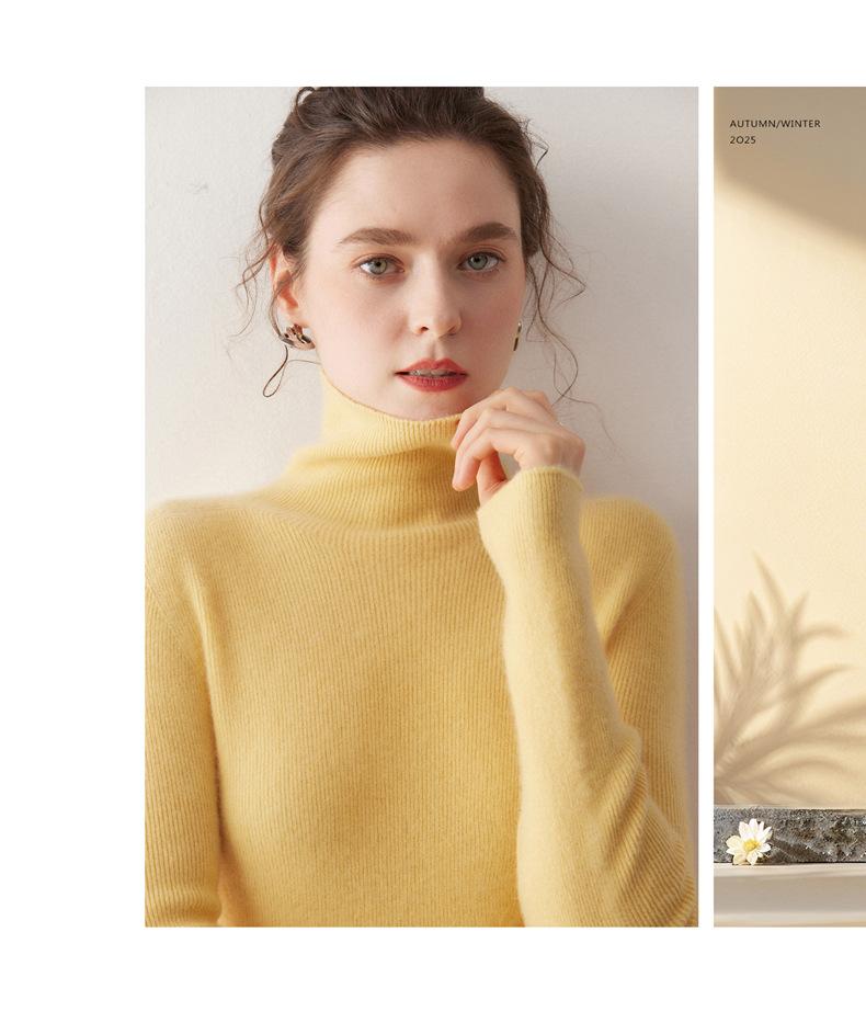 Suéter de punto de cachemira sin costuras de una pieza para mujer, capa interior de otoño e invierno, corte ajustado y temperamento adelgazante, cuello cowl, suéter de color sólido