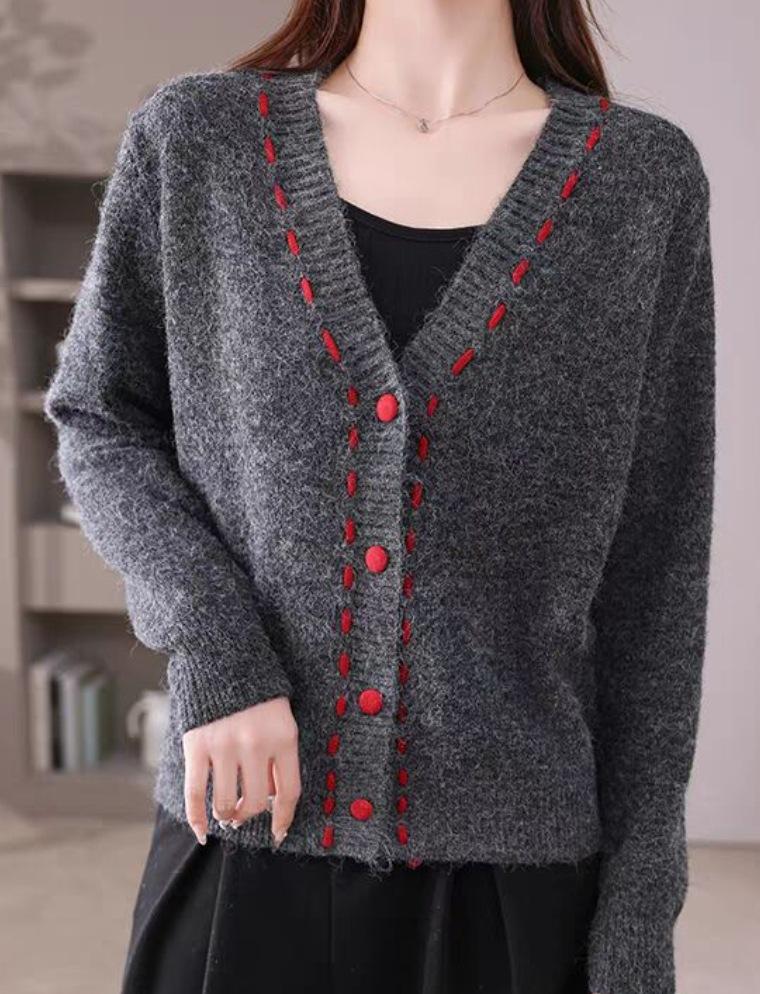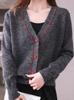 2025 Otoño Nuevo Cárdigan de Punto con Cuello en V para Mujer Nuevo de Otoño e Invierno Suéter Holgado Adelgazante Abrigo Top Moda