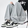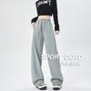 Pantalón de chándal gris a rayas mujer 2025 otoño/invierno estilo grueso petite pierna recta cintura media suelto adelgazante pierna ancha joggers
