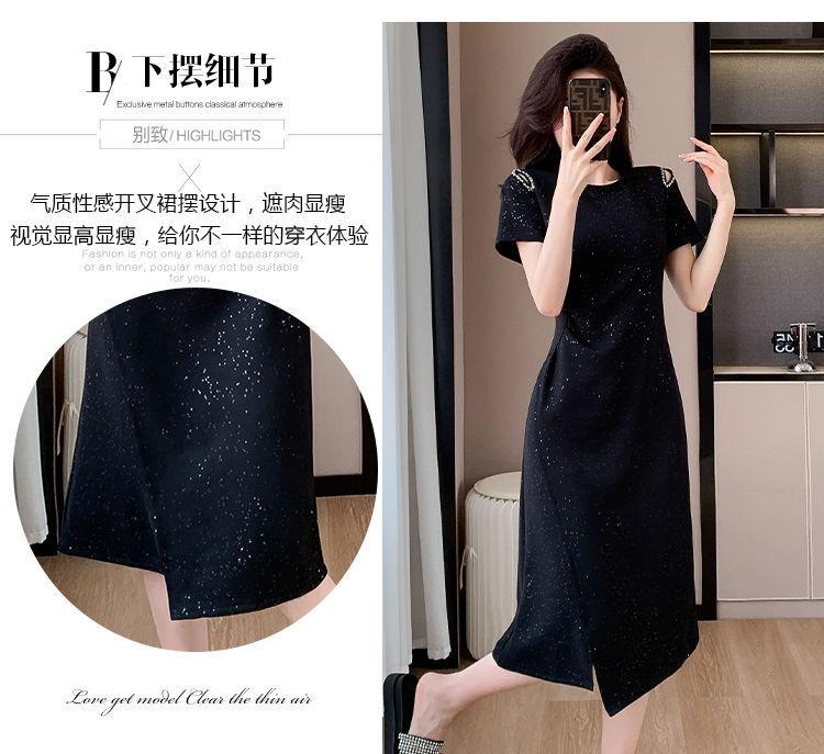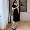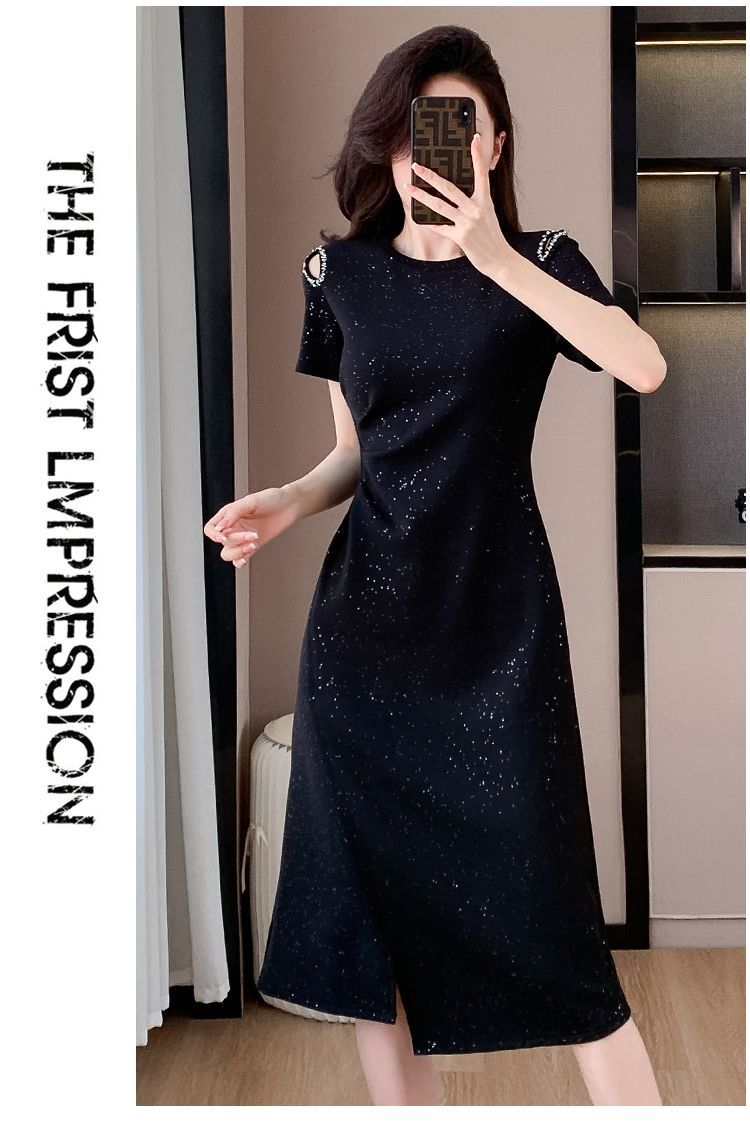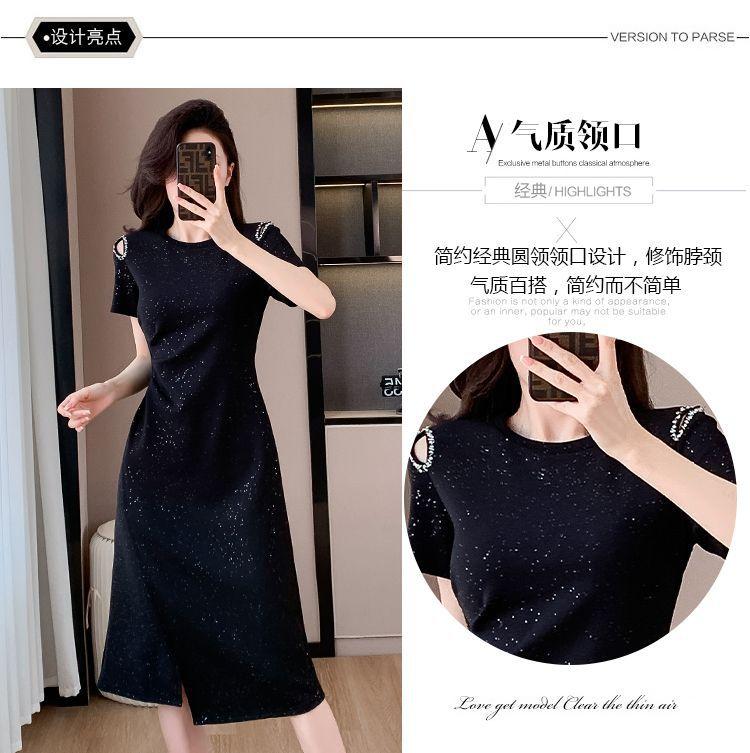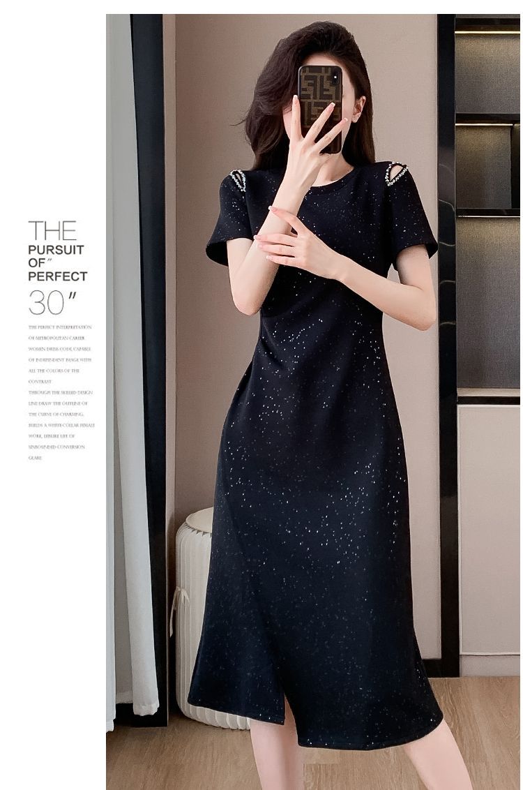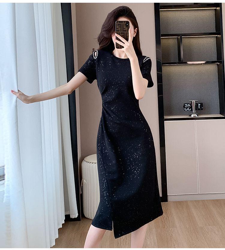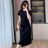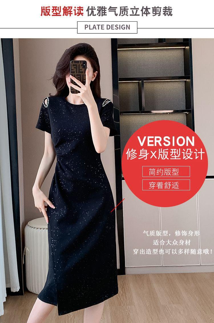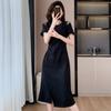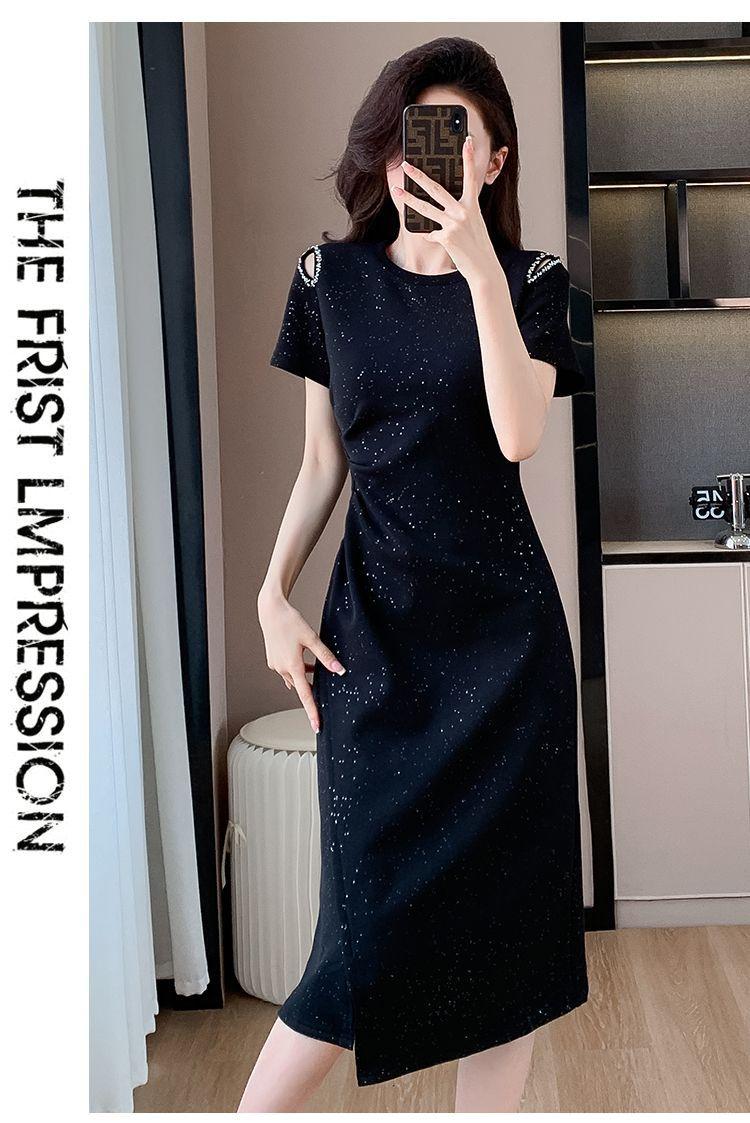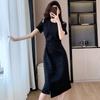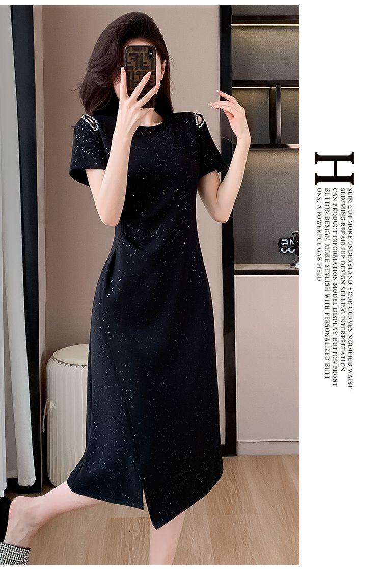 Vestido Casual Francés Negro Ajustado 2025 Ceñido a la Cintura Verano Nuevo Estilo Adelgazante Largo Medio Temperamento Falda con Abertura