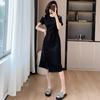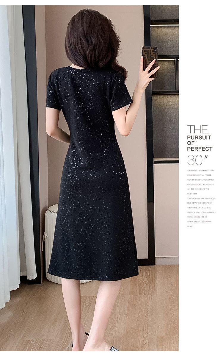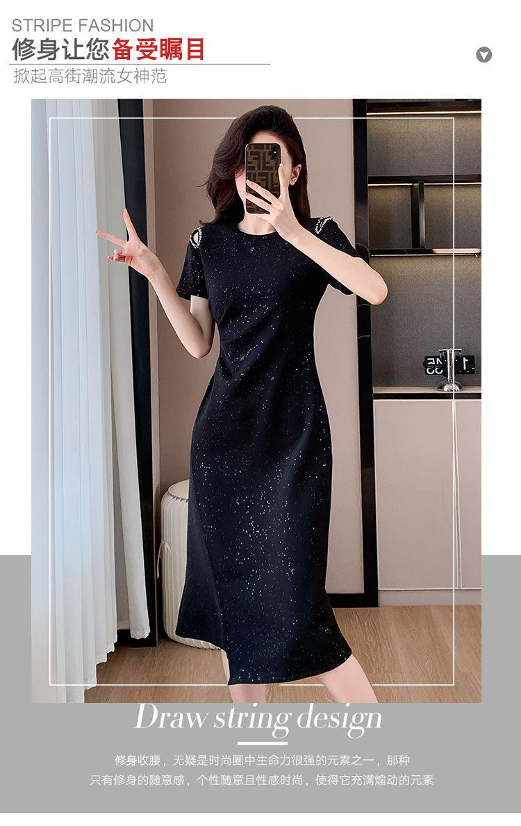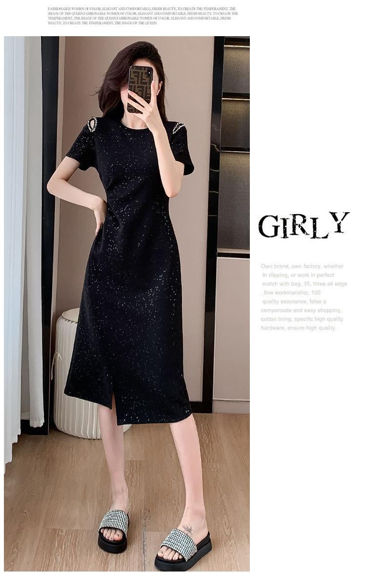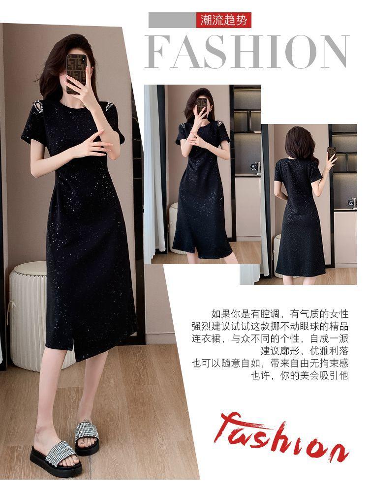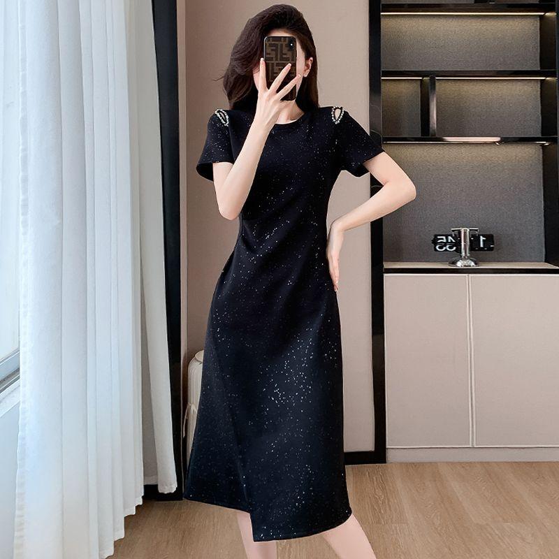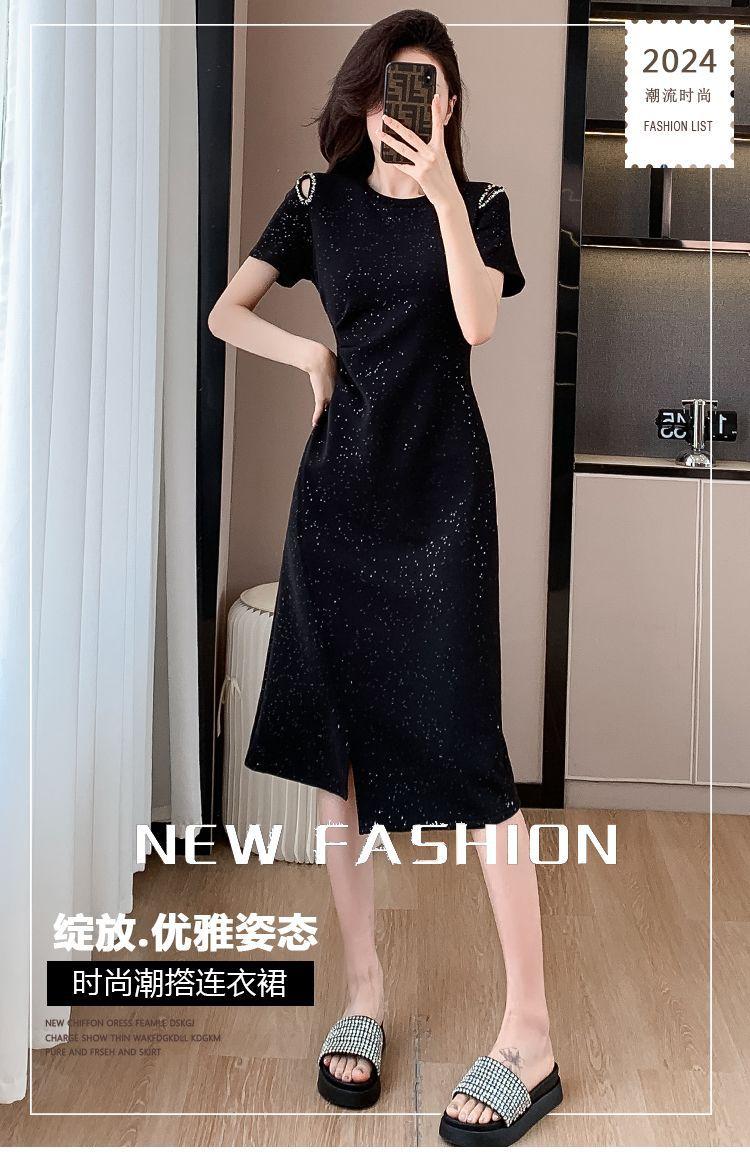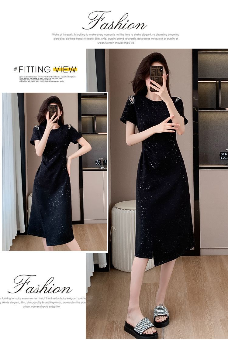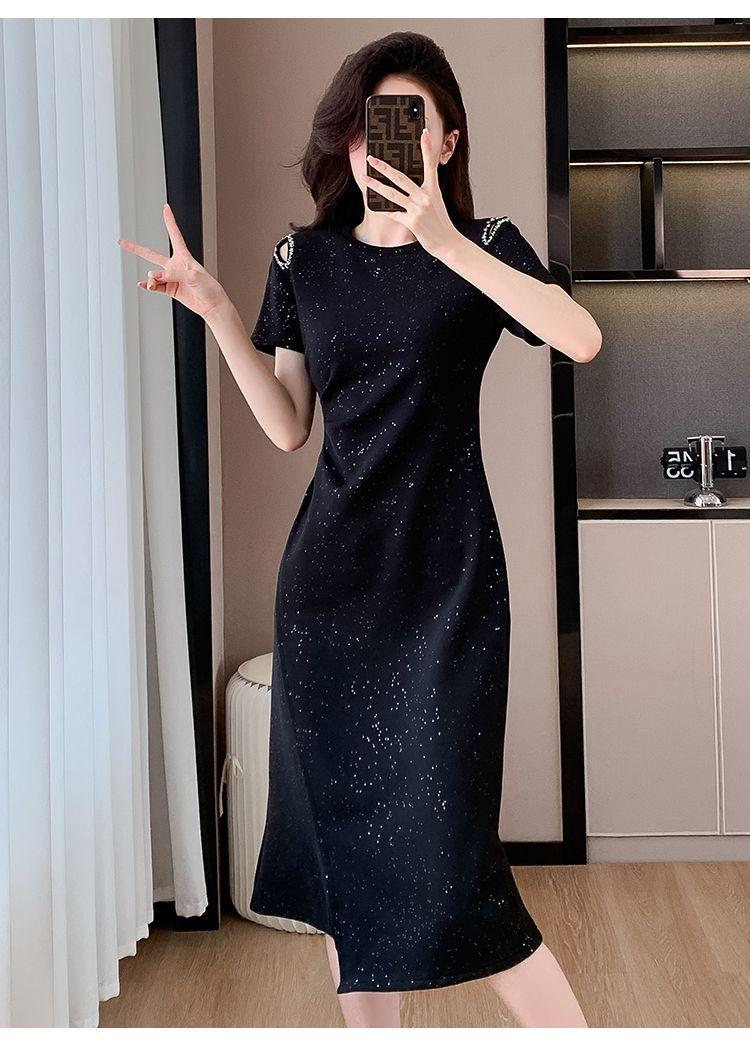 Vestido Casual Francés Negro Ajustado 2025 Ceñido a la Cintura Verano Nuevo Estilo Adelgazante Largo Medio Temperamento Falda con Abertura