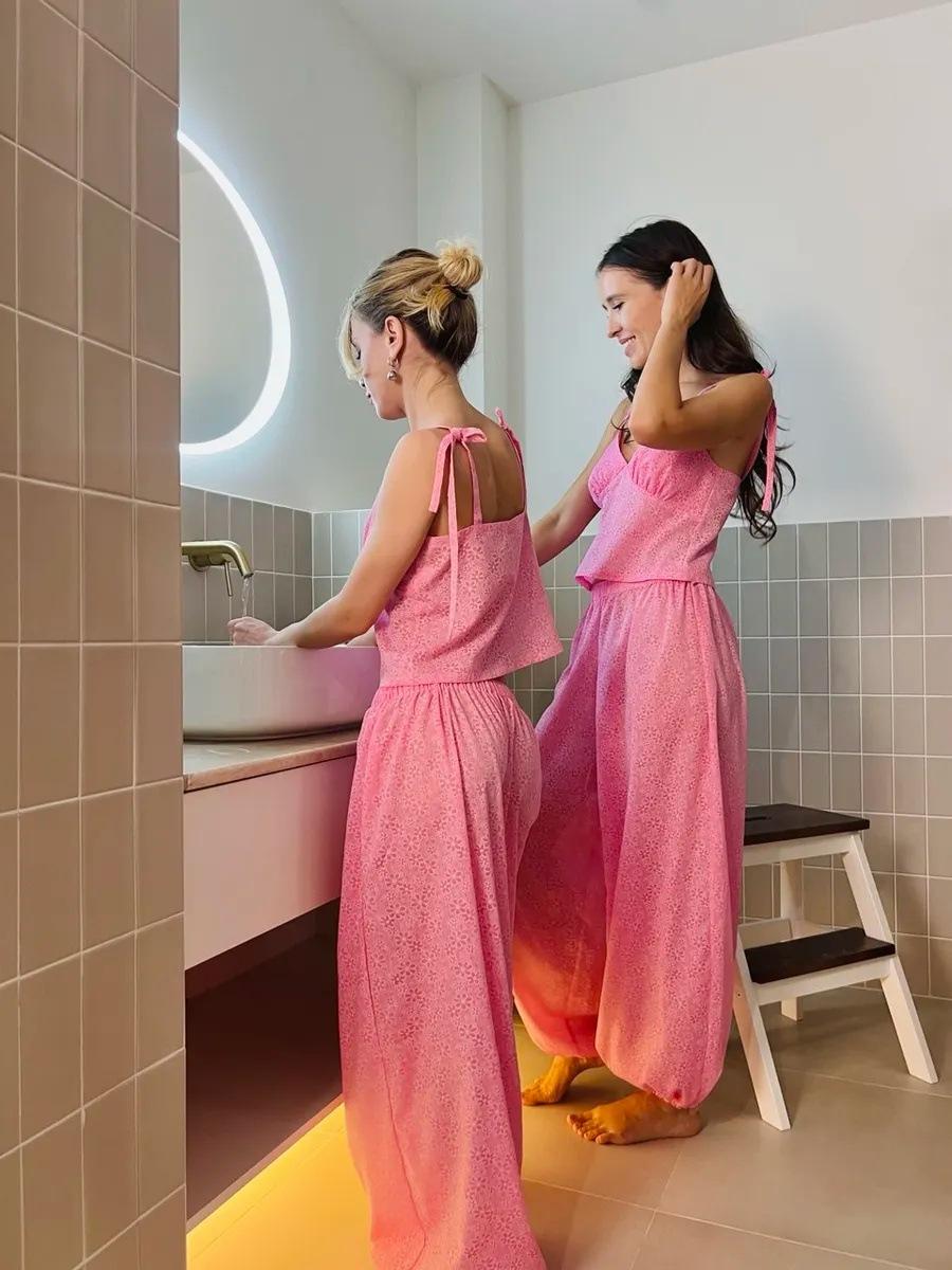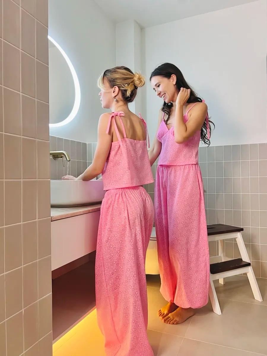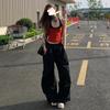 Estilo europeo y americano moda transfronteriza callejero sexy corte bajo ombliguera cómodo top camisola pequeño y pantalones largos con puño conjunto casual