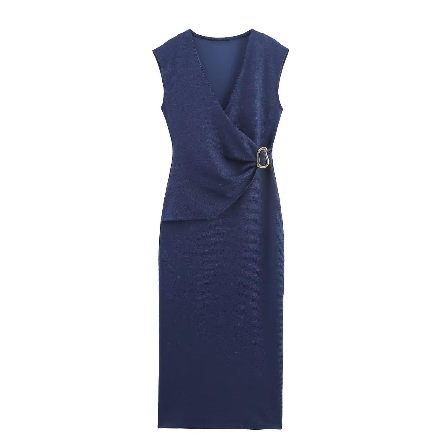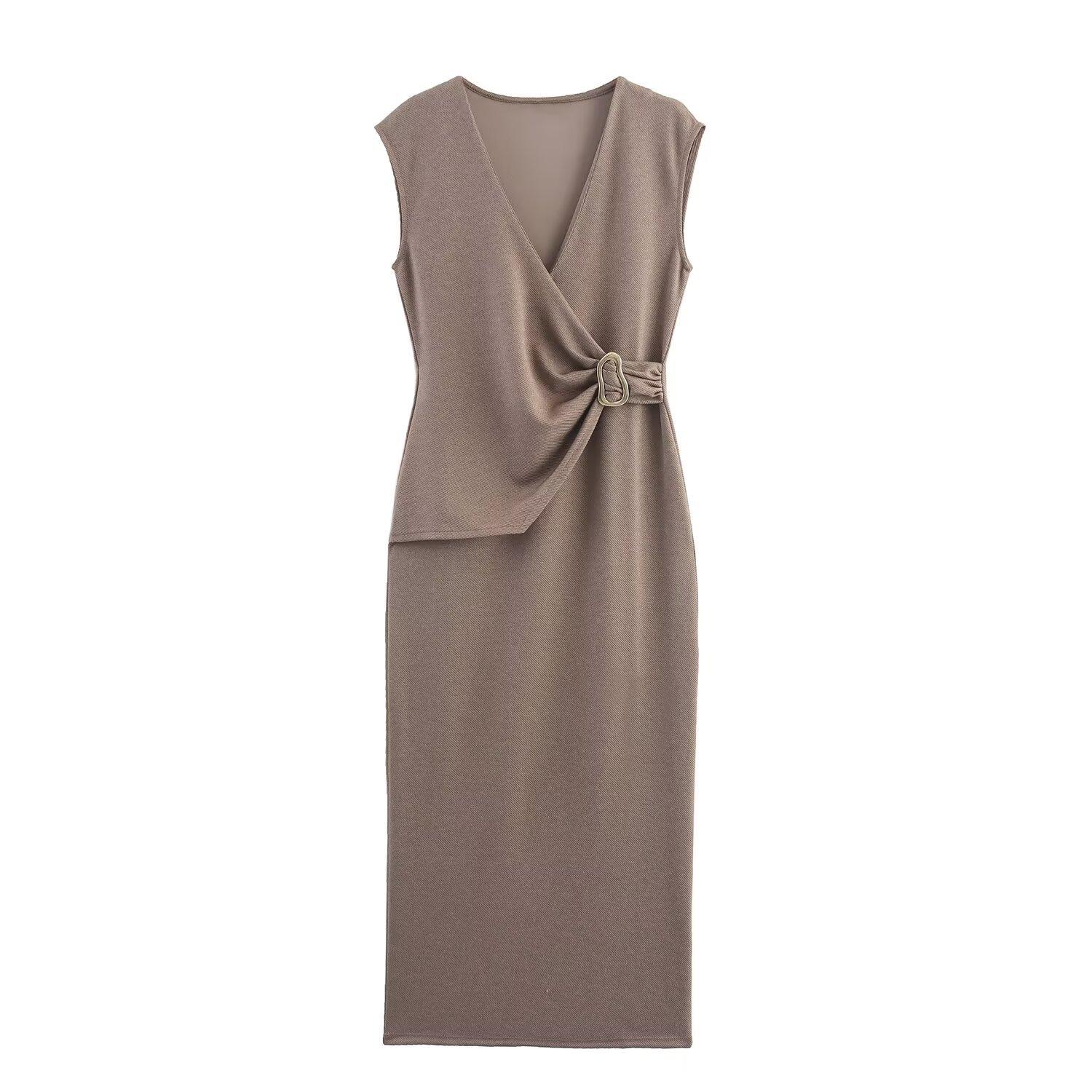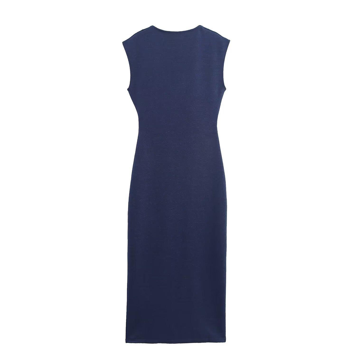 Estilo Europeo y Americano Amazon AliExpress Más Vendido Tendencia de Moda Versátil Vestido Elegante de Sarga de Doble Botonadura de 3 Colores sin Mangas