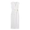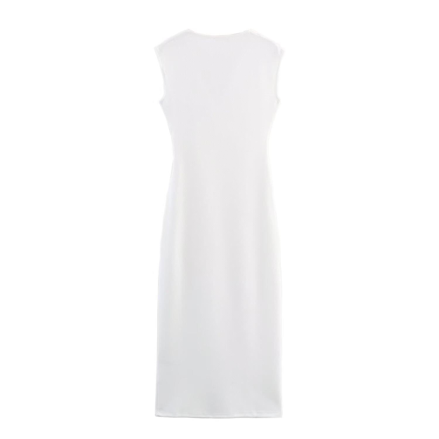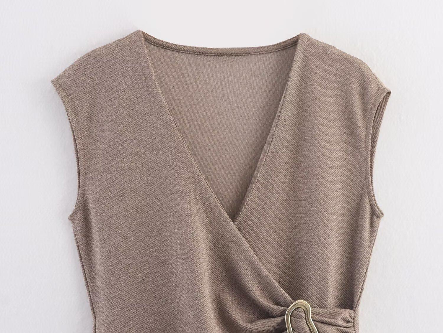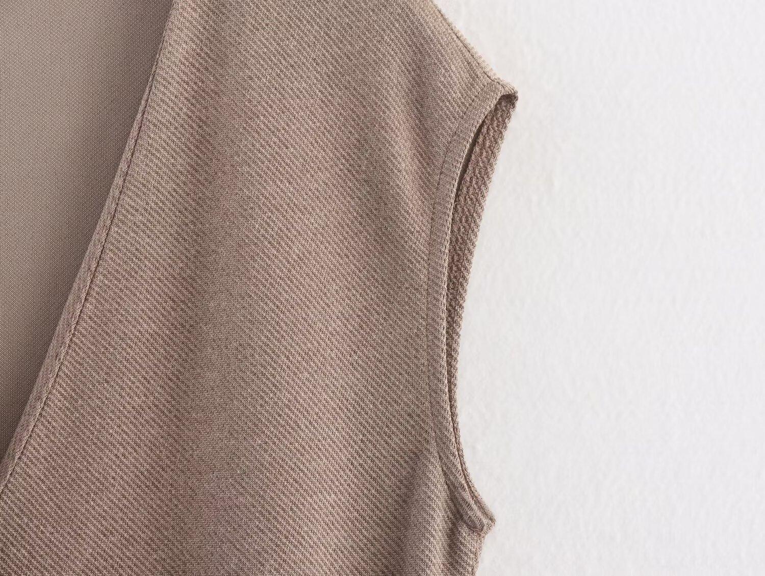 Estilo Europeo y Americano Amazon AliExpress Más Vendido Tendencia de Moda Versátil Vestido Elegante de Sarga de Doble Botonadura de 3 Colores sin Mangas