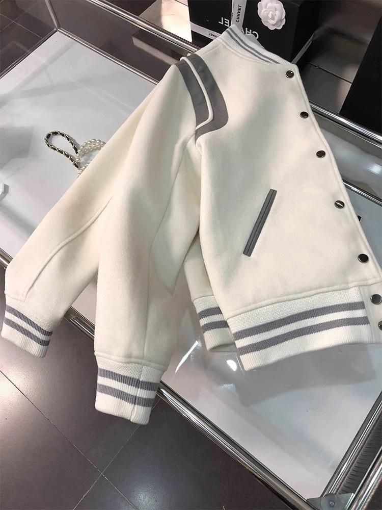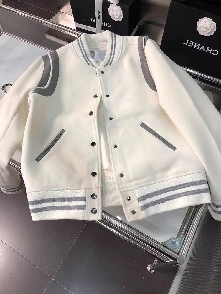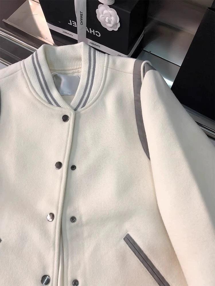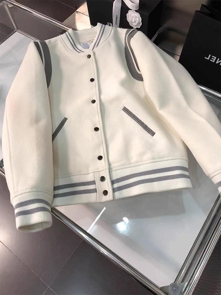 Chaqueta Corta Americana Nueva de Alta Gama Estilo Fragancia Pequeña para Mujer Primavera y Otoño Nuevo Diseño Chaqueta de Béisbol Blanca para Mujer