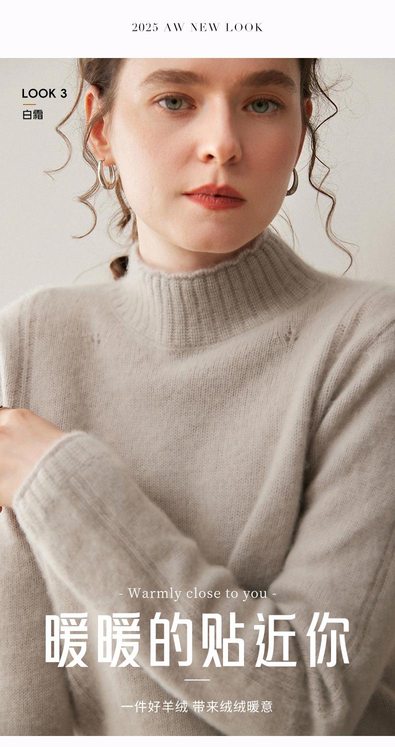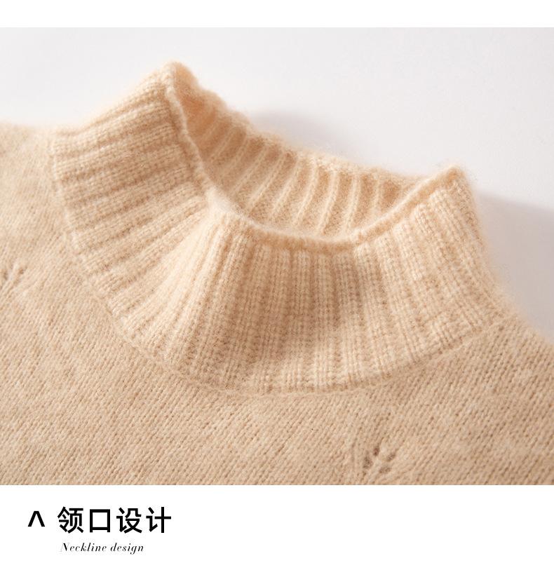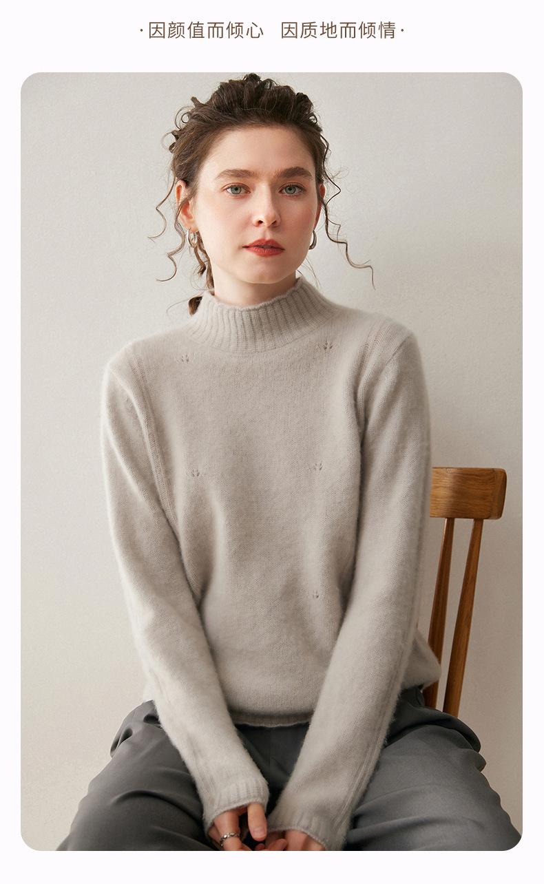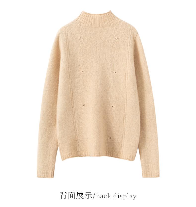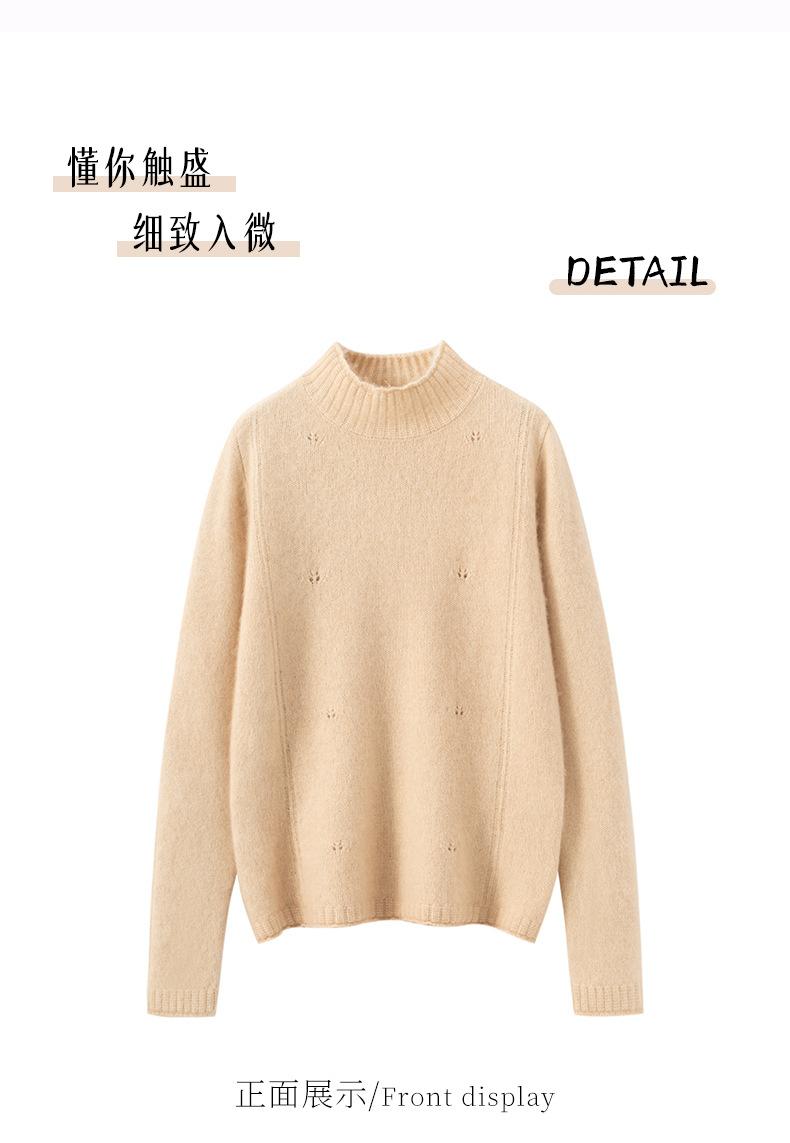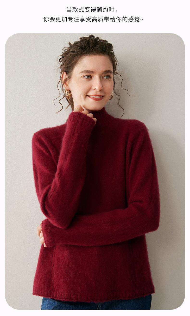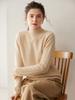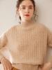 Suéter básico minimalista de cachemira de color sólido con cuello semi alto, holgado, adelgazante, para otoño e invierno, para mujer, tejido de manga larga con hombro recto engrosado.