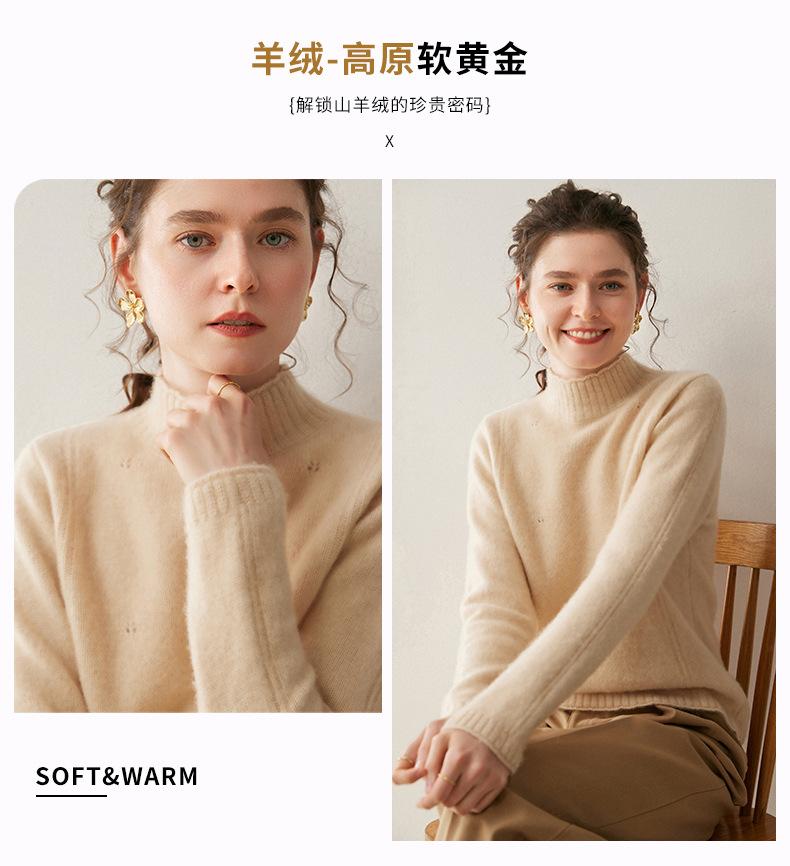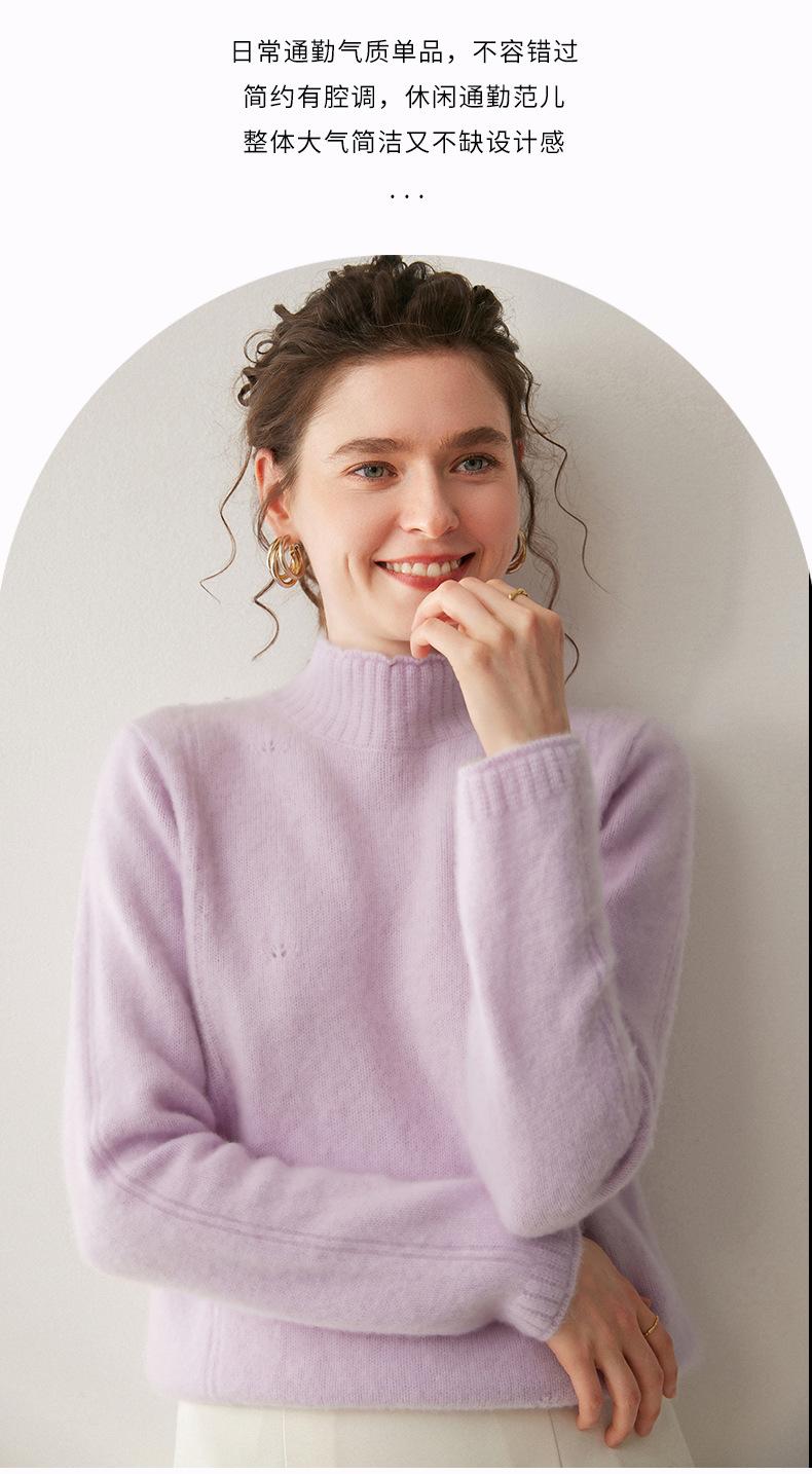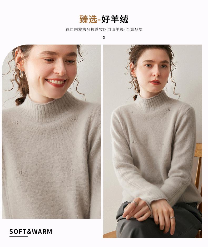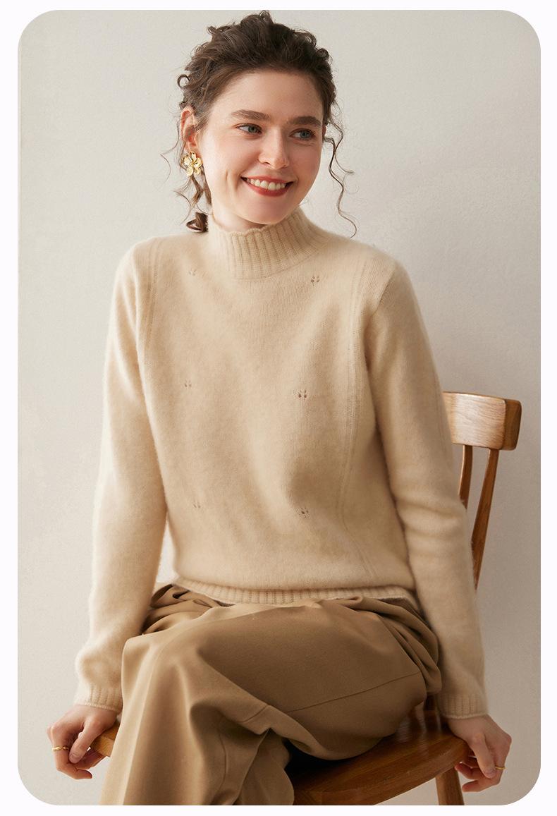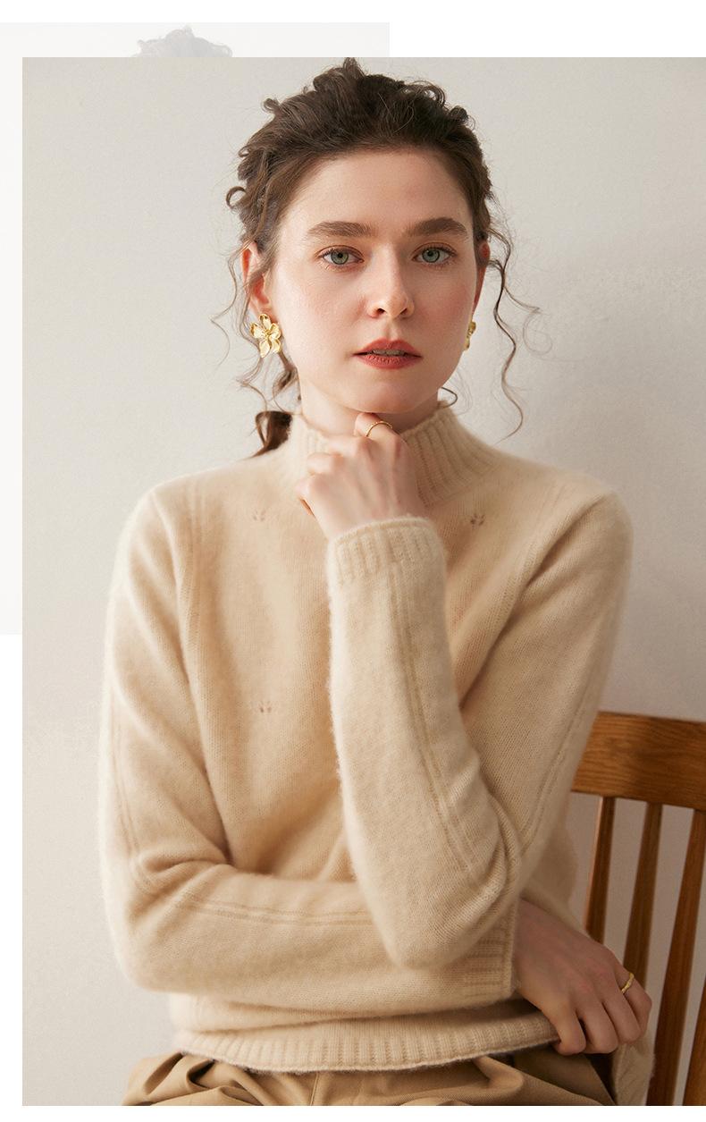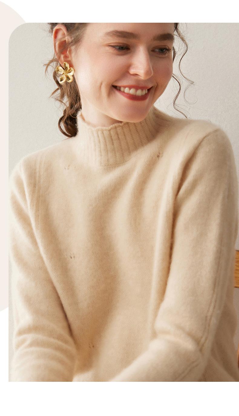Suéter básico minimalista de cachemira de color sólido con cuello semi alto, holgado, adelgazante, para otoño e invierno, para mujer, tejido de manga larga con hombro recto engrosado.