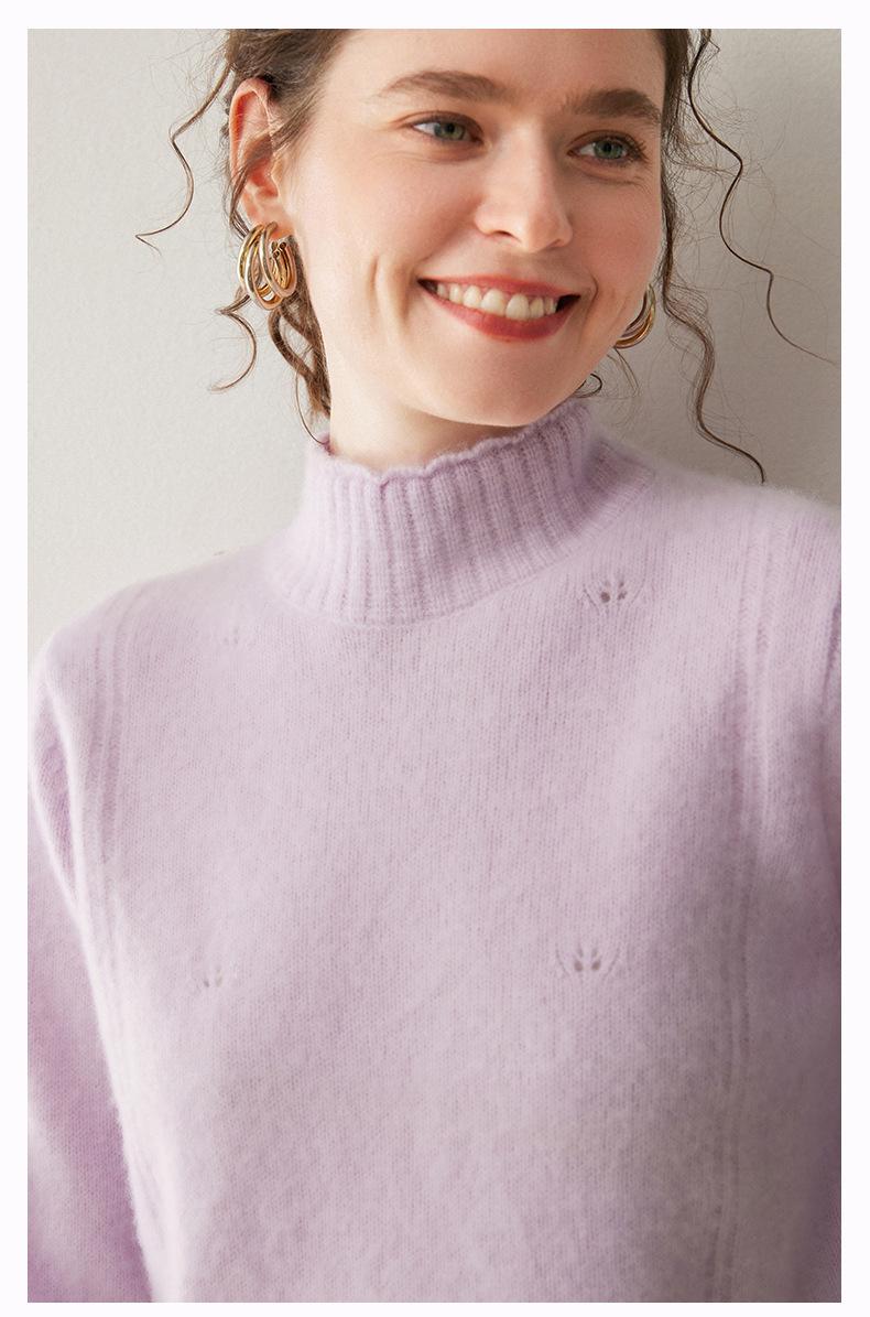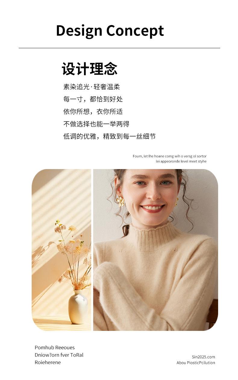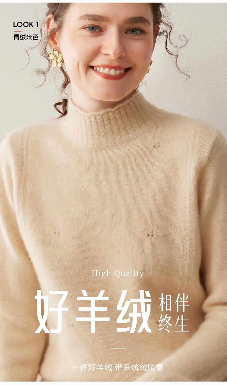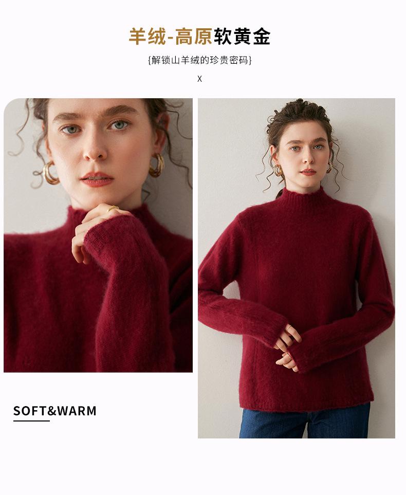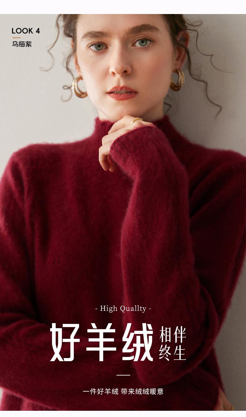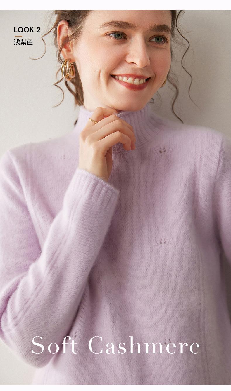 Suéter básico minimalista de cachemira de color sólido con cuello semi alto, holgado, adelgazante, para otoño e invierno, para mujer, tejido de manga larga con hombro recto engrosado.