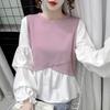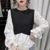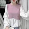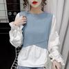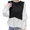 2025 Nuevo Suéter de Punto de Diseño Holgado para Mujer Moda Nicho Falso de Dos Piezas Otoño Chic Top Versátil