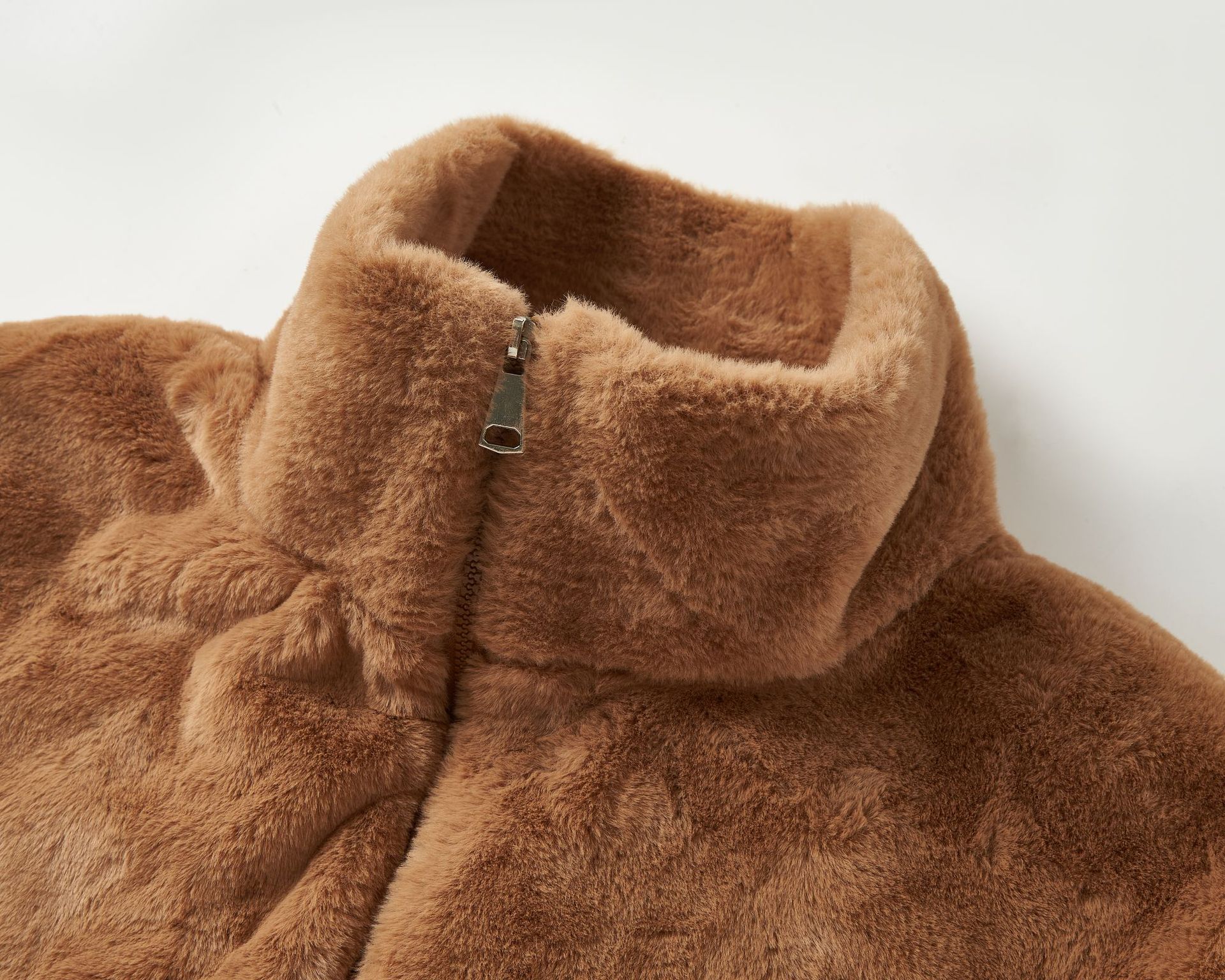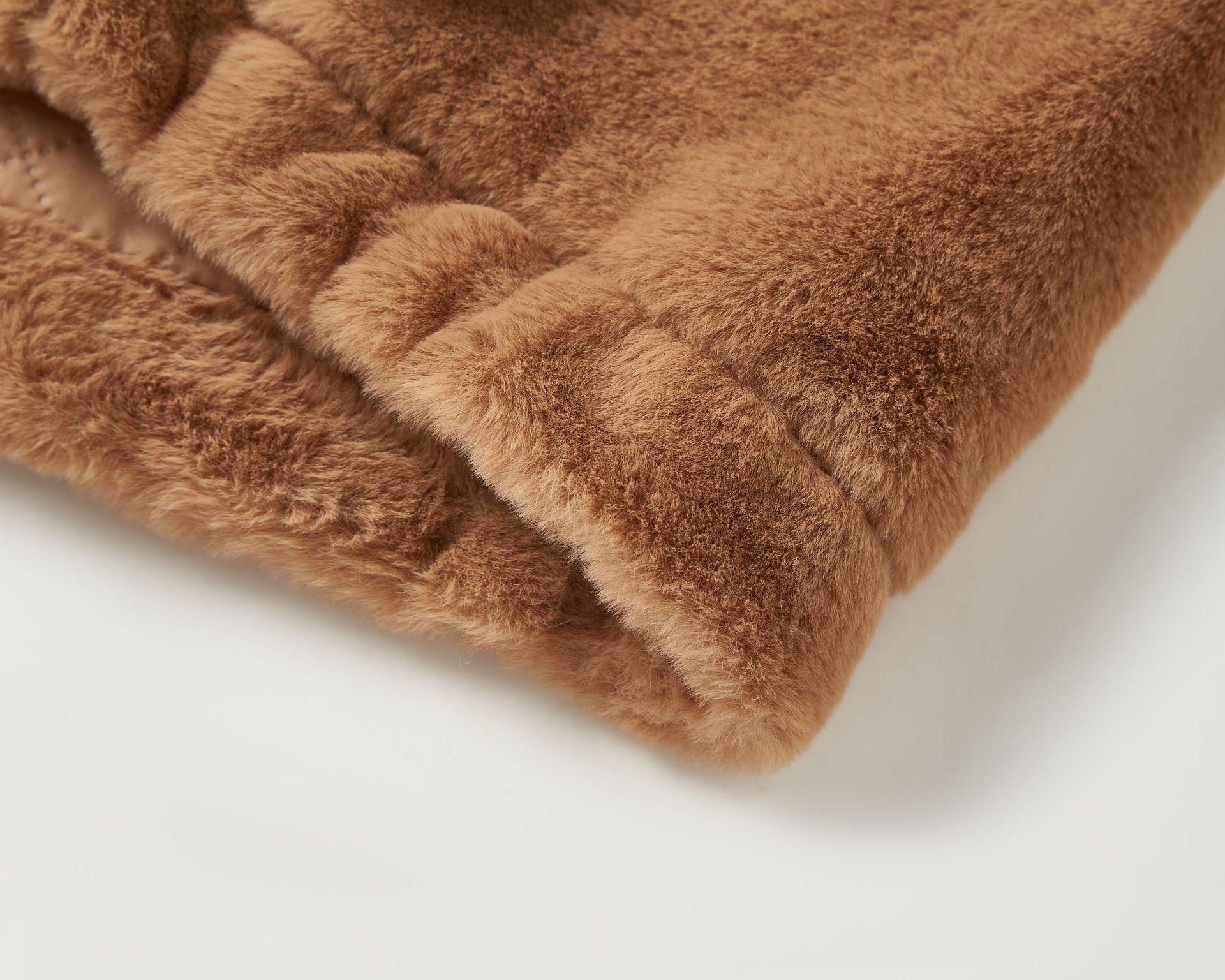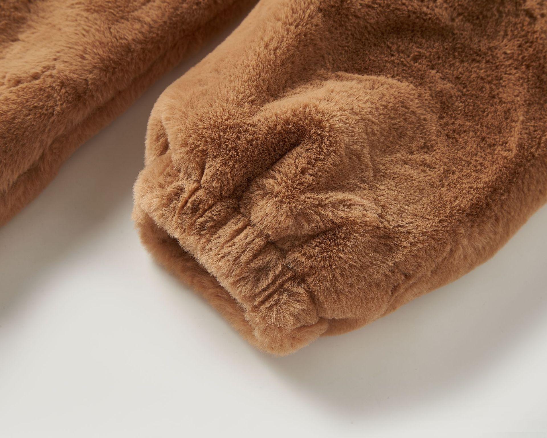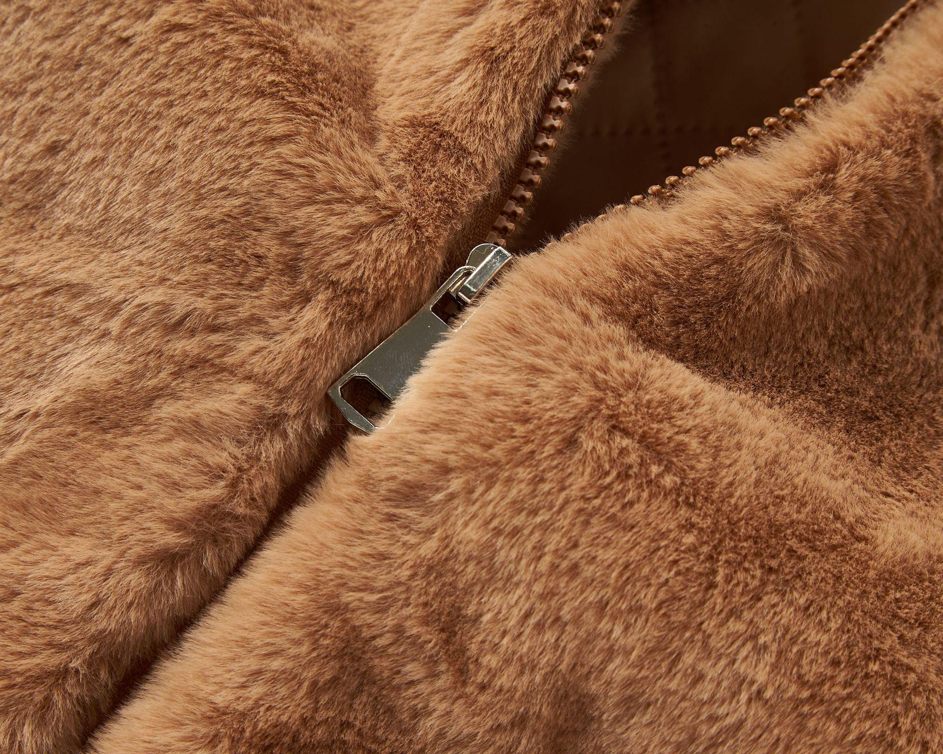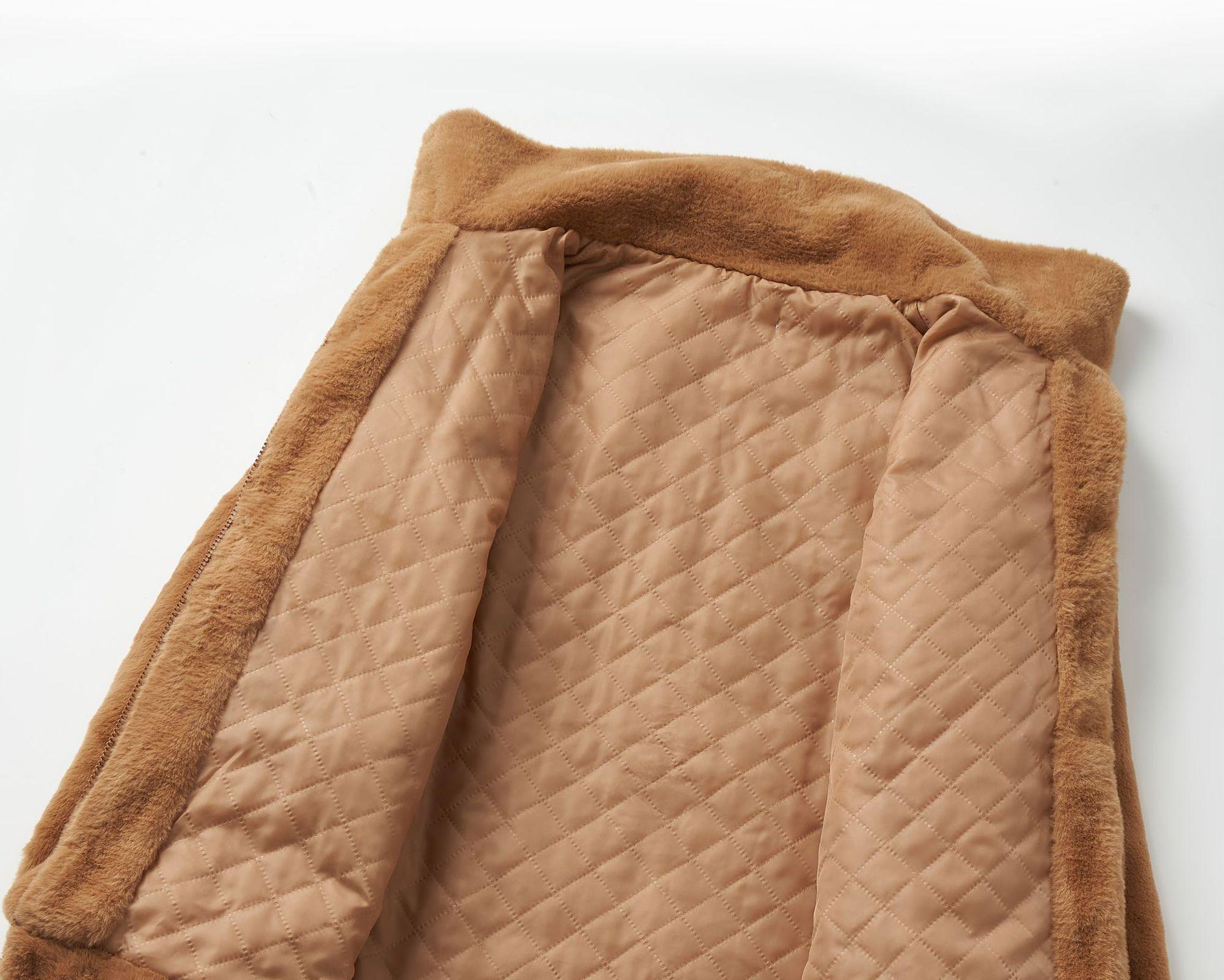 Chaqueta de Plumas de Imitación de Piel de Conejo para Mujer Otoño e Invierno Rayas Transfronteriza Nueva Dobladillo Cuello Redondo Moderna Cálida Personalización