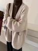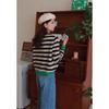 Nuevo Cárdigan de Lana a Rayas de Diseño Nicho Otoño/Invierno para Mujer Suéter Tejido Color Block Holgado Abrigo de Punto Top