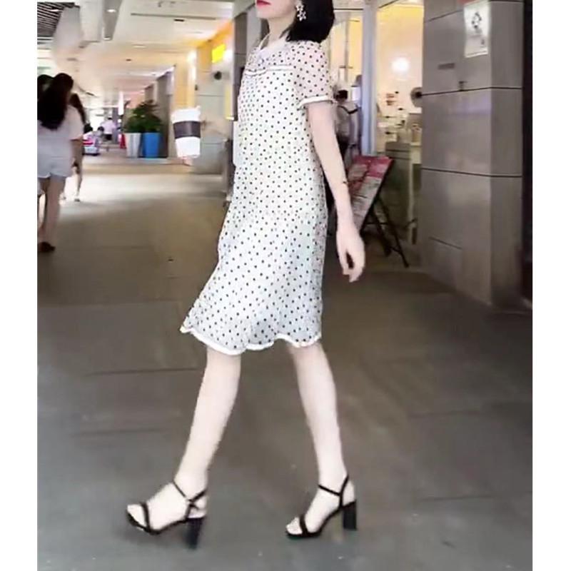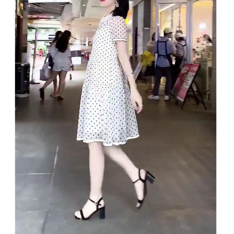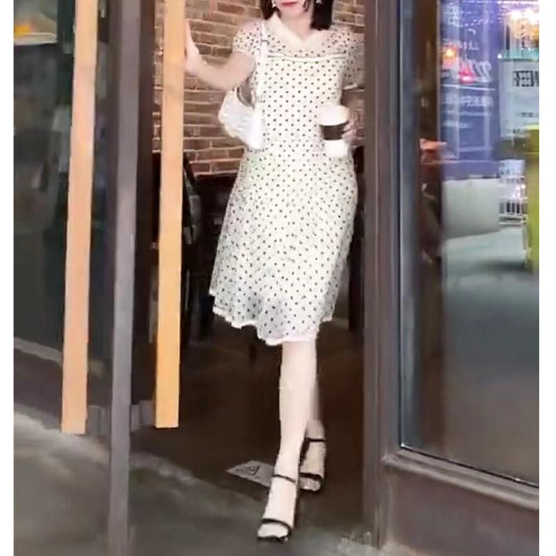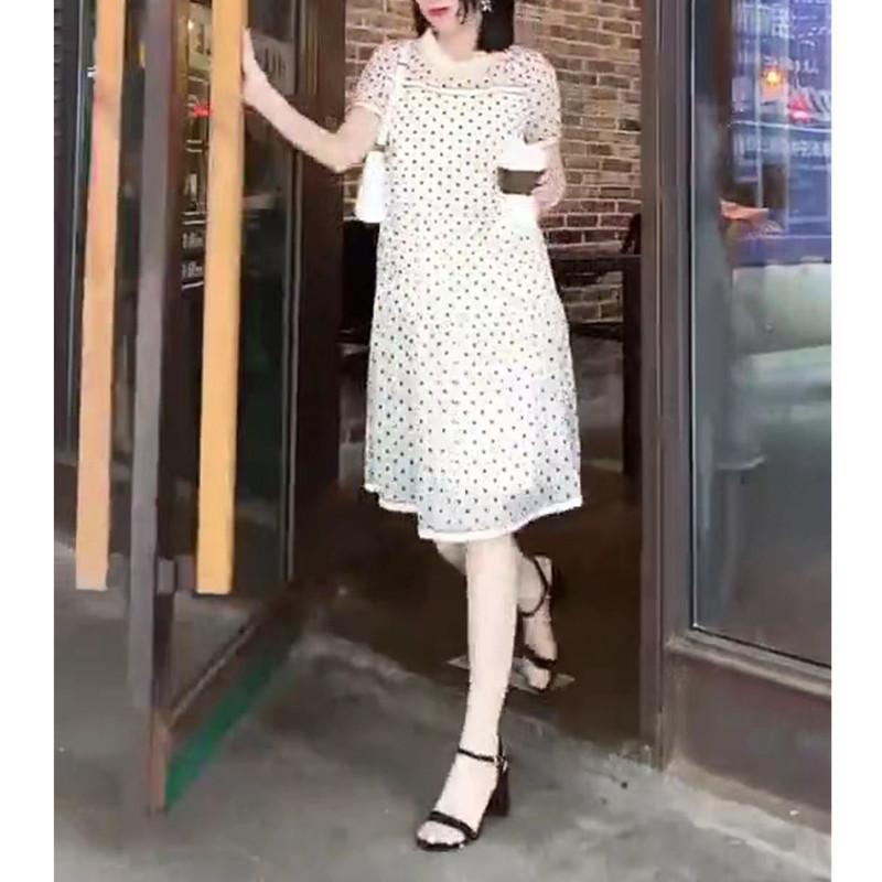 9708 gran amor belleza Yiyuan 2023 Verano nuevo vestido blanco de lunares largo medio adelgazante vestido de mujer moda moda
