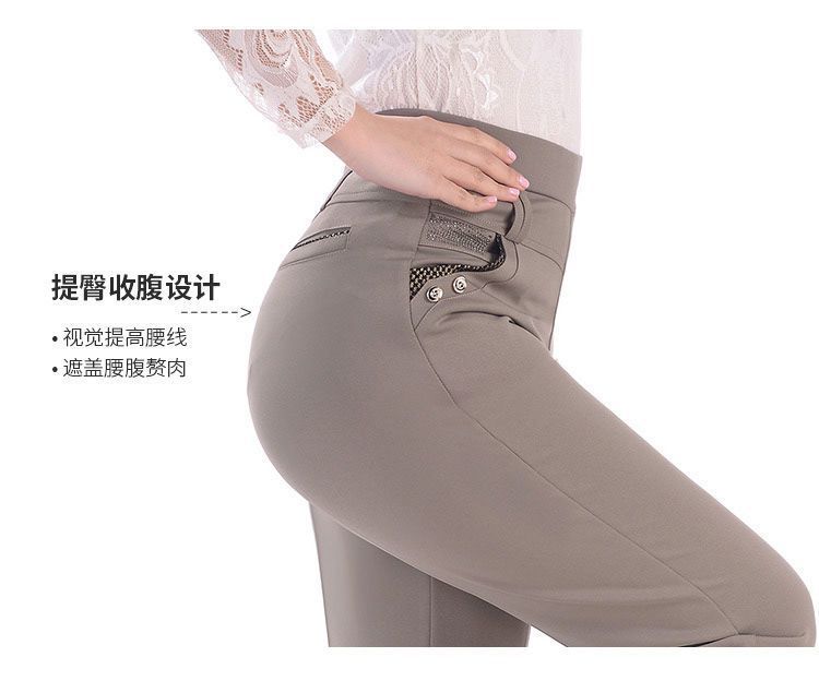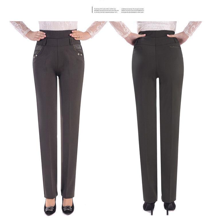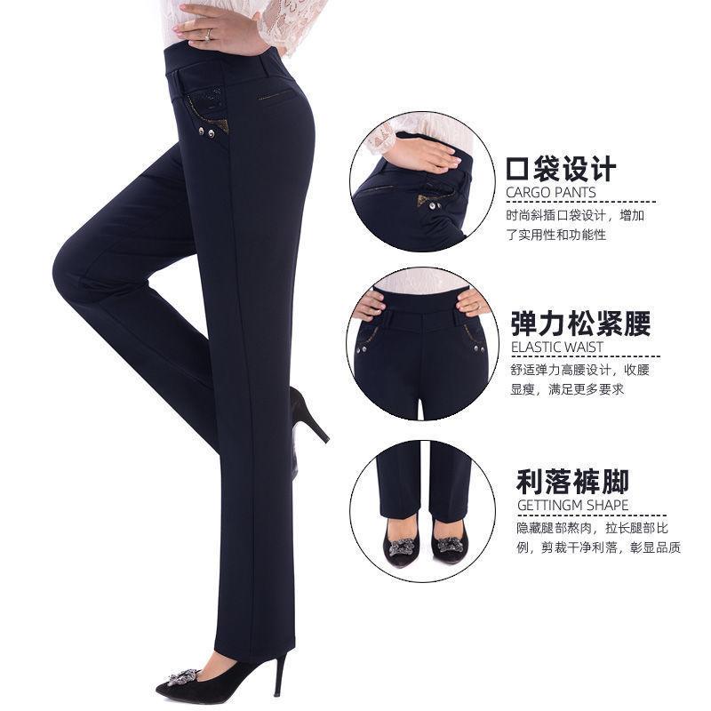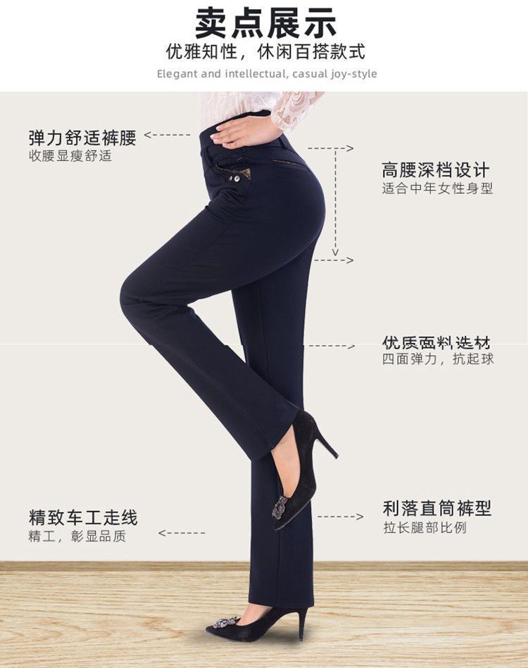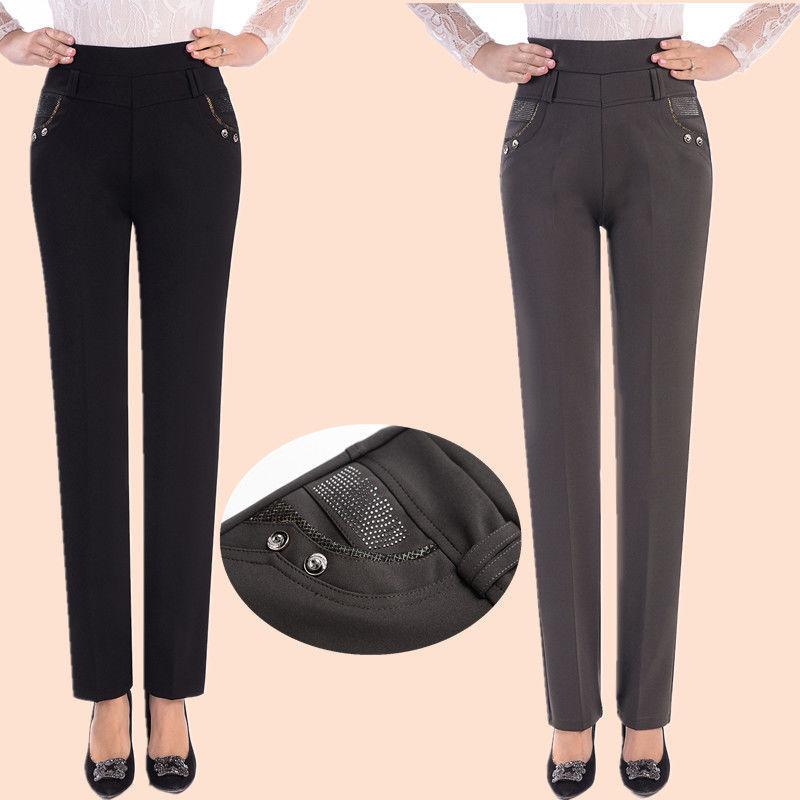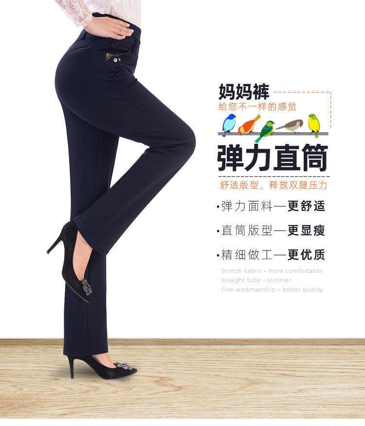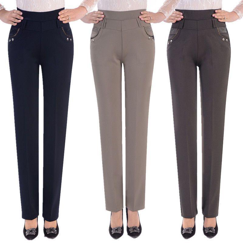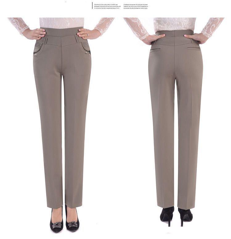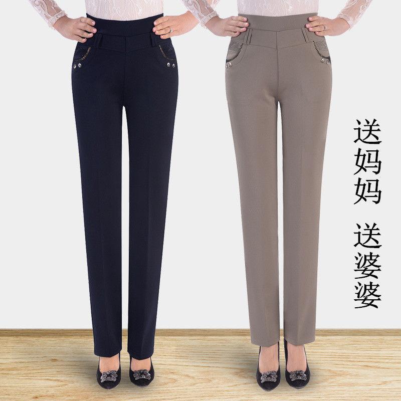 Pantalones elásticos de cintura alta Shandali Di para personas de mediana edad y mayores, pantalones largos casuales, estilo delgado de verano, para usar en primavera y otoño, pantalones anchos de mamá