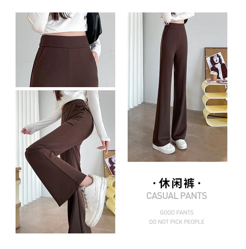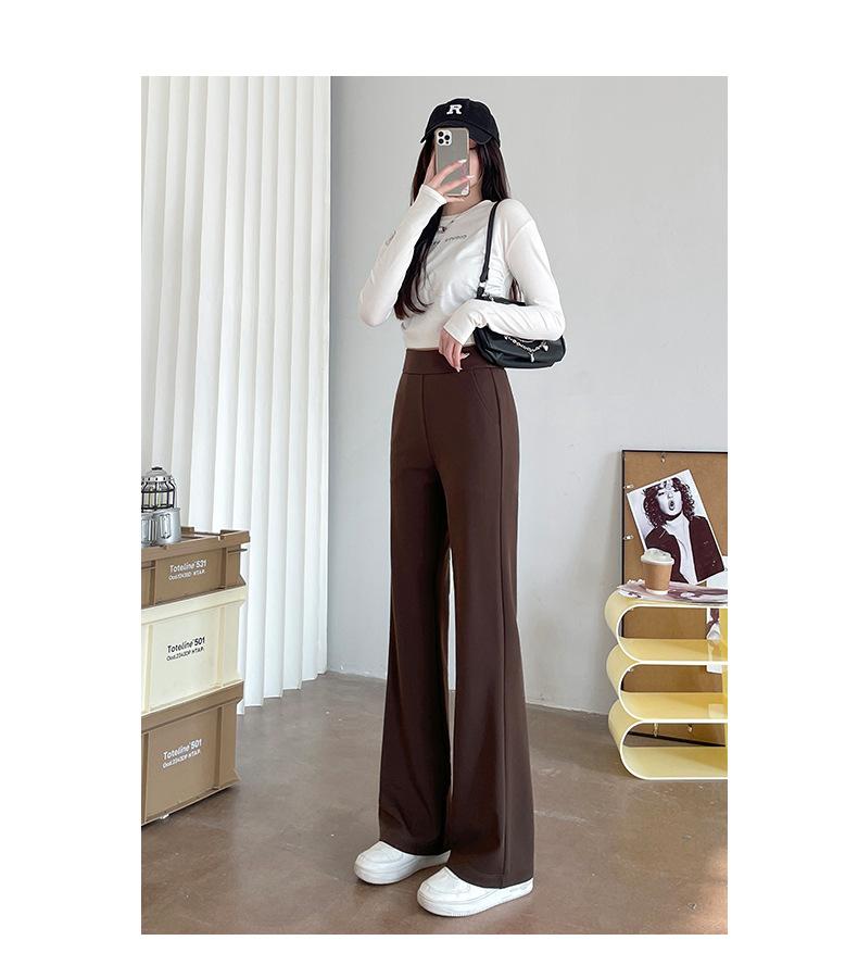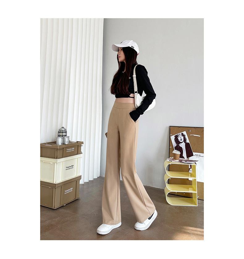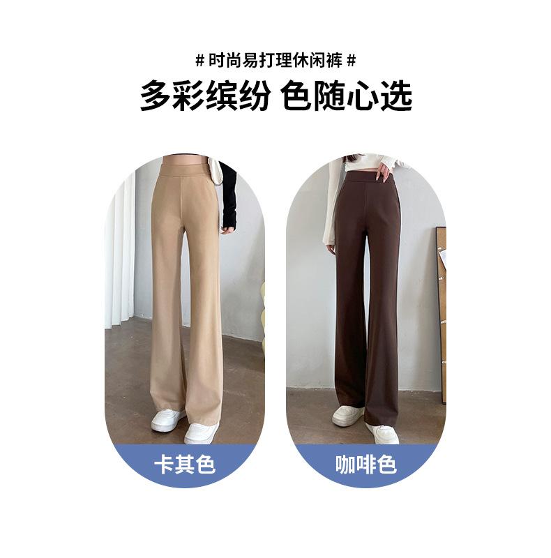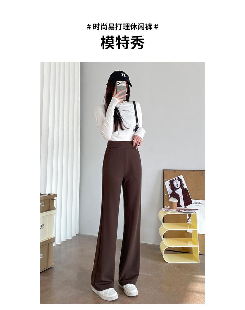 Qianbaijia Primavera/Verano Pantalones Largos de Cintura Alta para Mujer Pantalones Casuales Drapeados Pantalones Holgados Adelgazantes de Pierna Recta Ropa Exterior Pantalones Delgados de Pierna Ancha