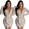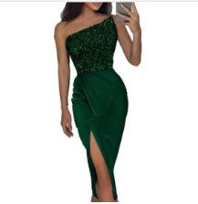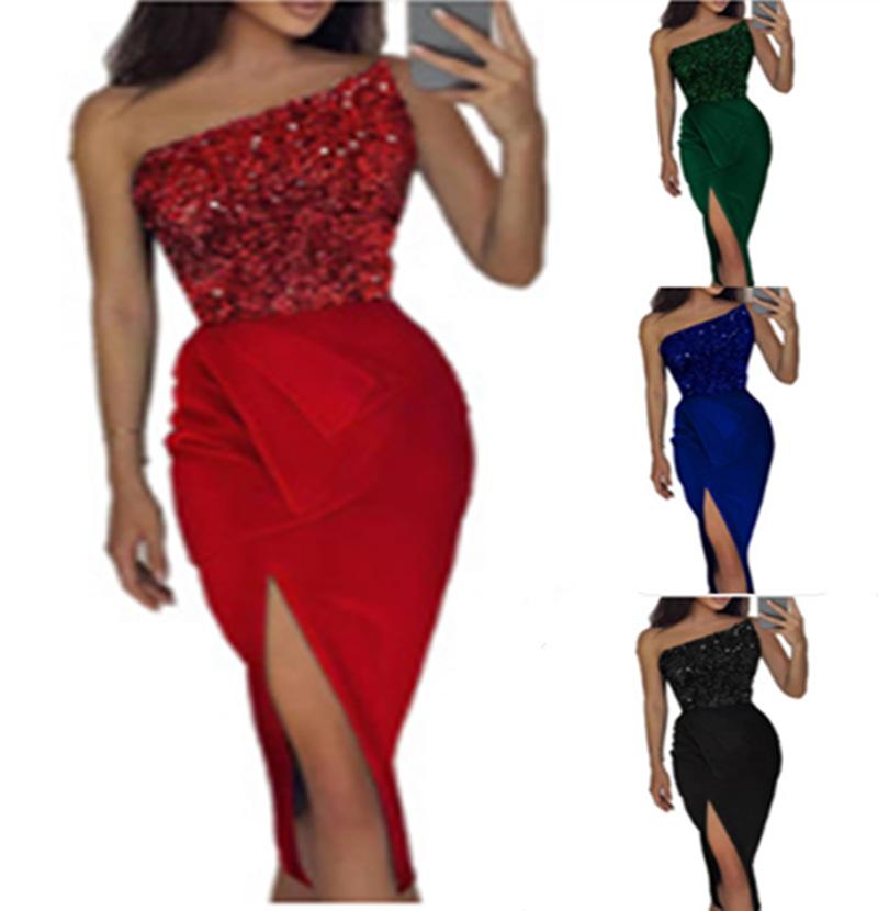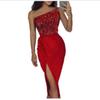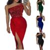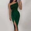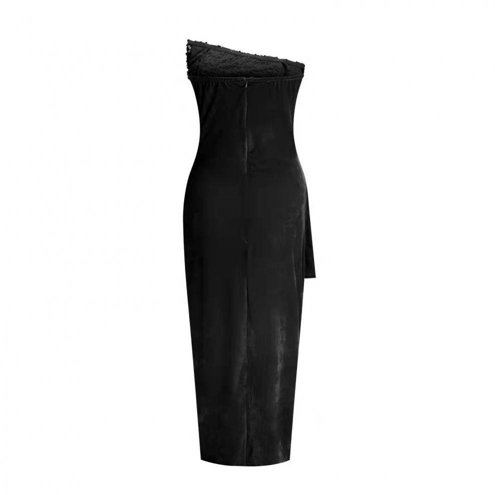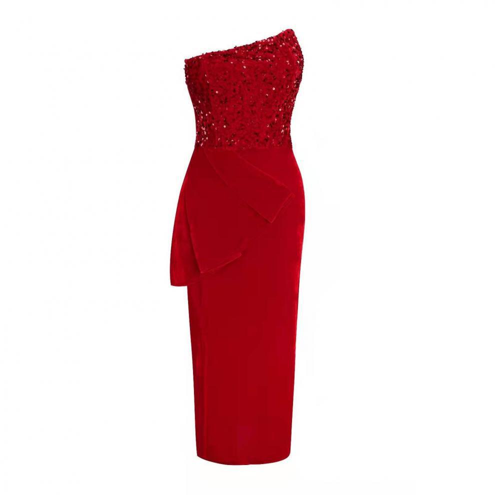Vestido de Noche Estilo Europeo y Americano de Amazon Color Puro Moderno Sexy Elegante Sin Mangas Lentejuelas Tubo Superior Vestido Ajustado a la Cadera