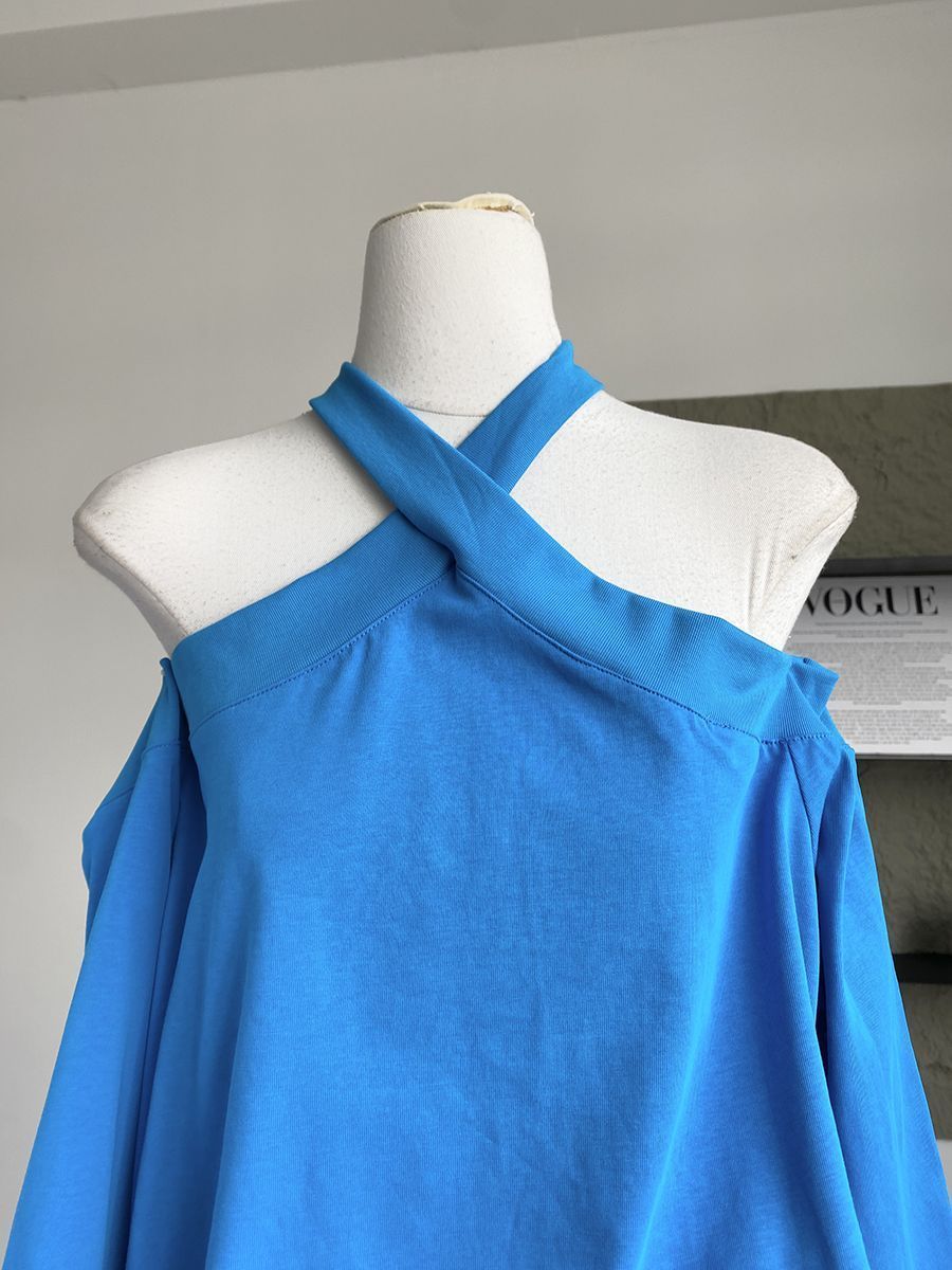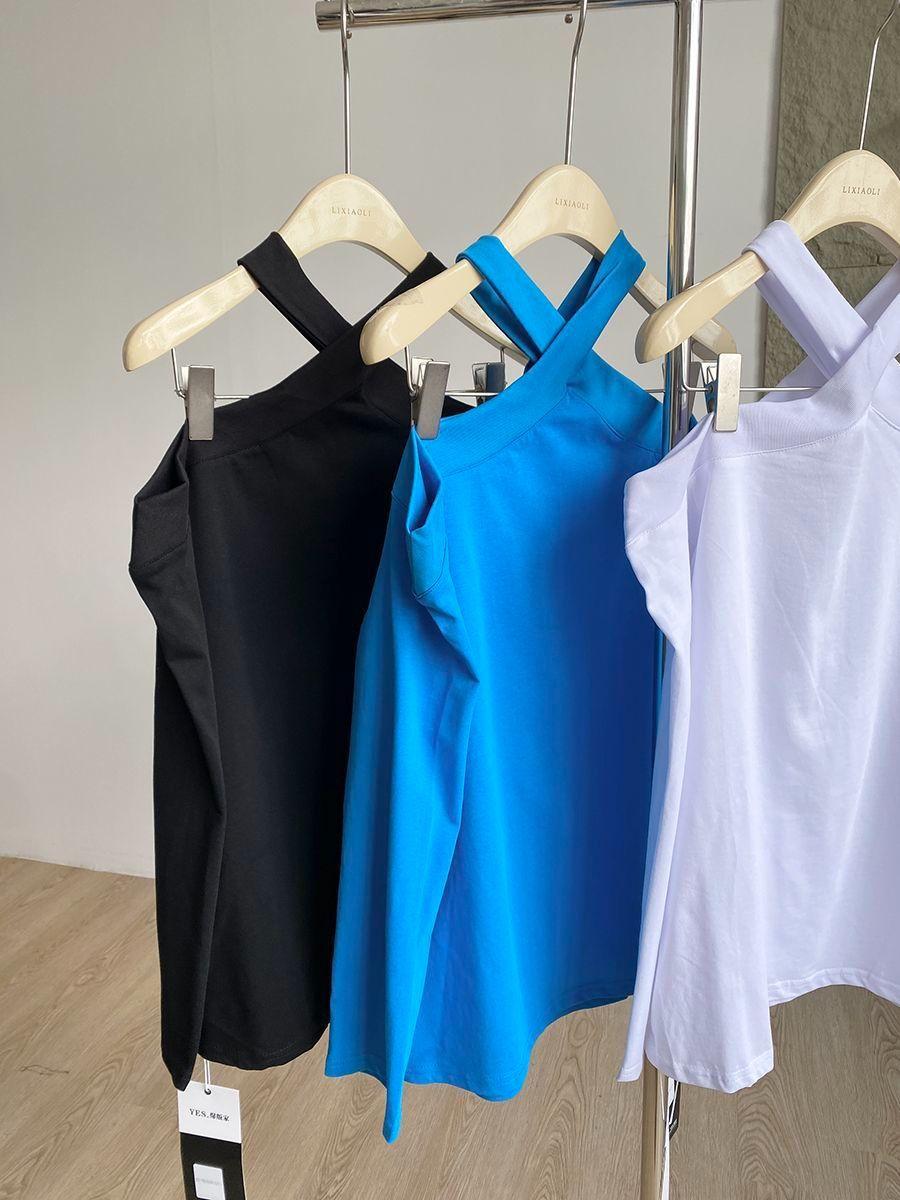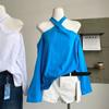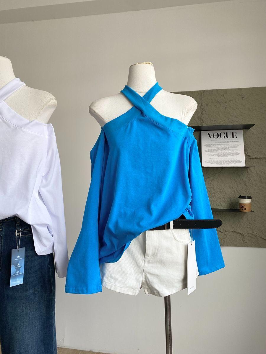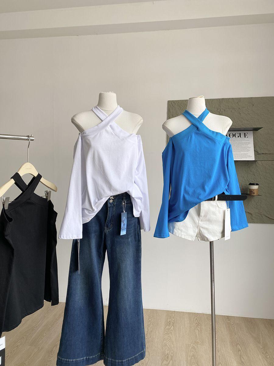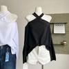 Otoño 2025 Nuevo Diseño de Moda Coreana Halter Hombro Descubierto Manga Larga Camiseta para Mujer Nicho Holgada Casual Top Tendencia