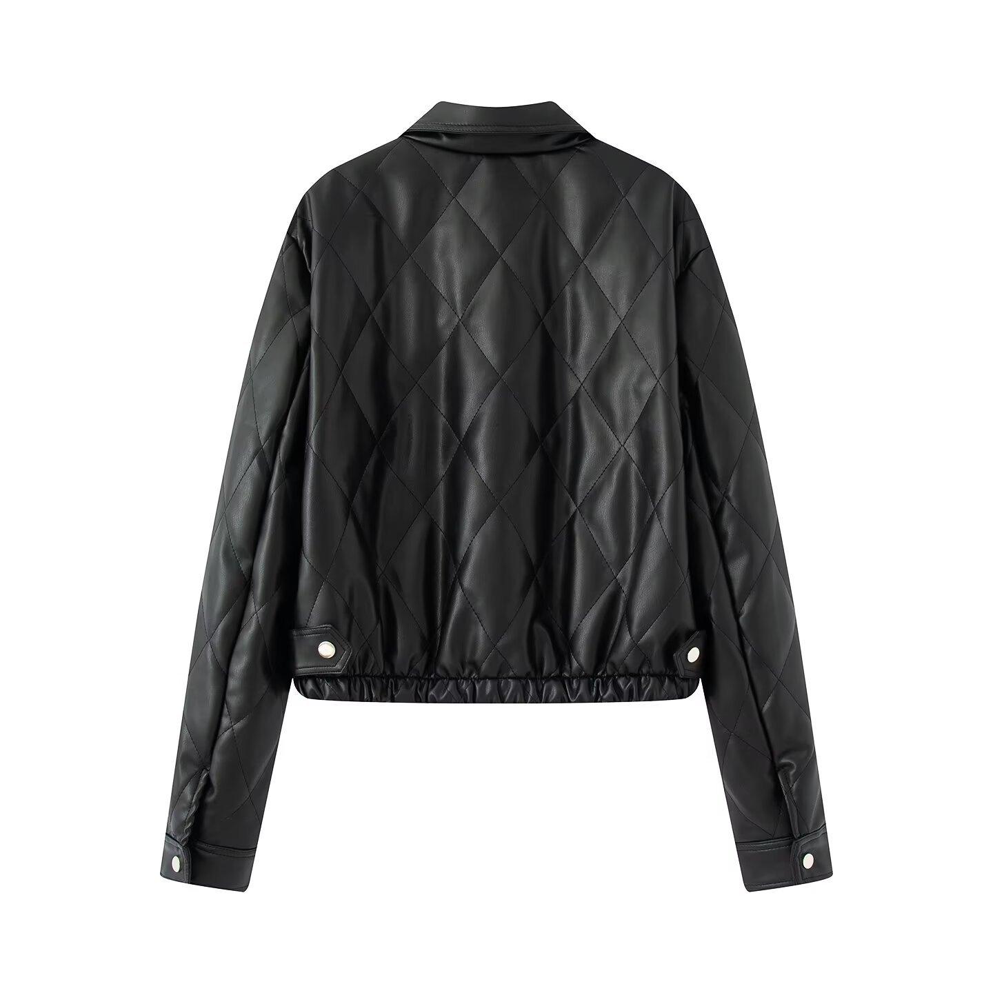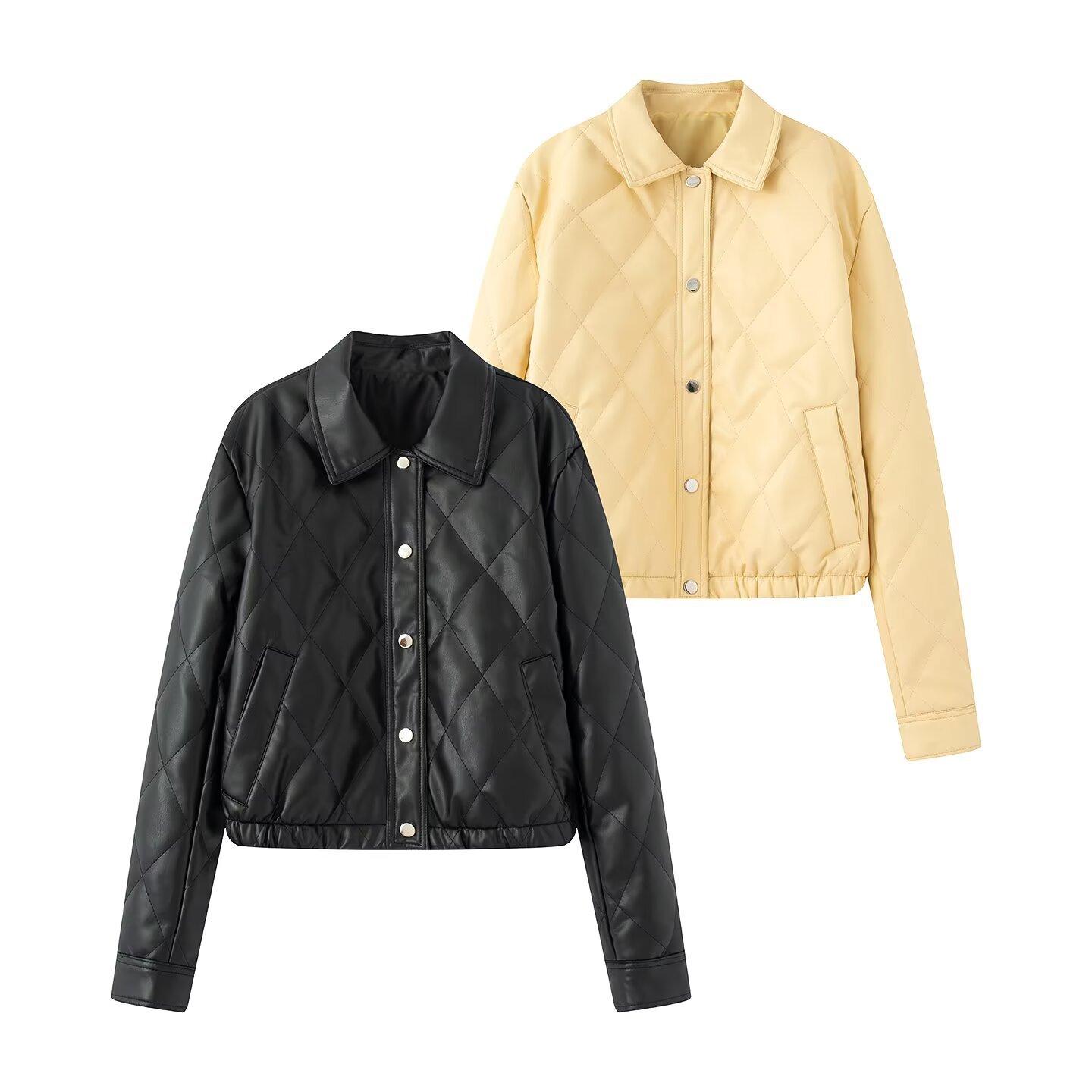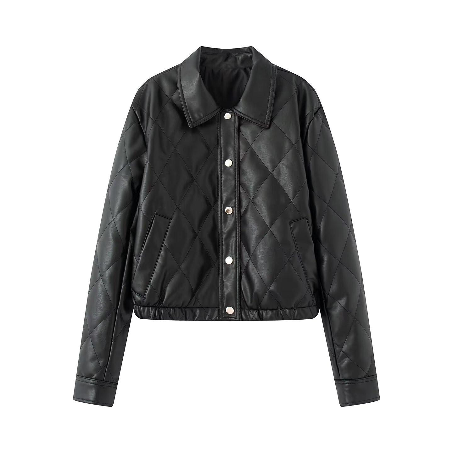 Abrigo exterior transfronterizo para mujer 2025 otoño nuevo temperamento estilo commuter acolchado patrón diamante corto chaqueta abrigo de cuero sintético para mujer