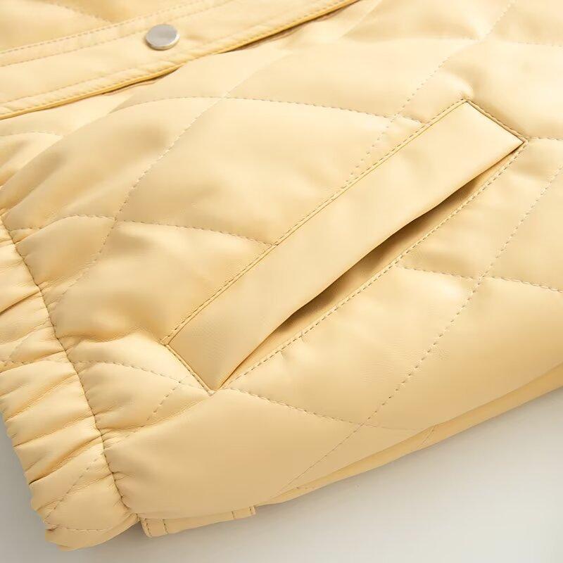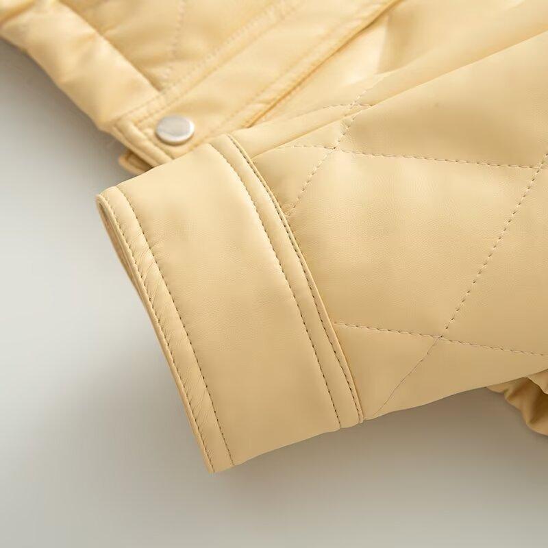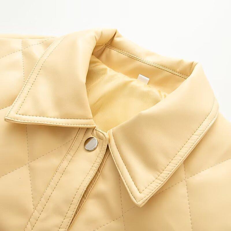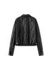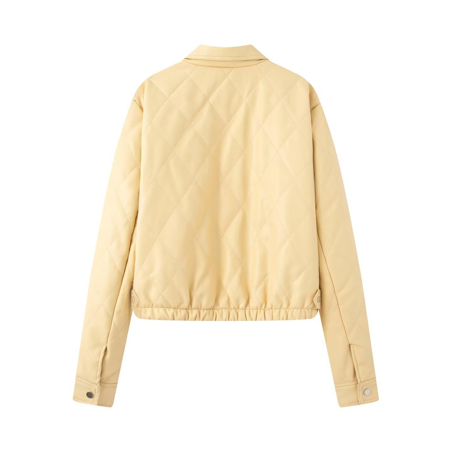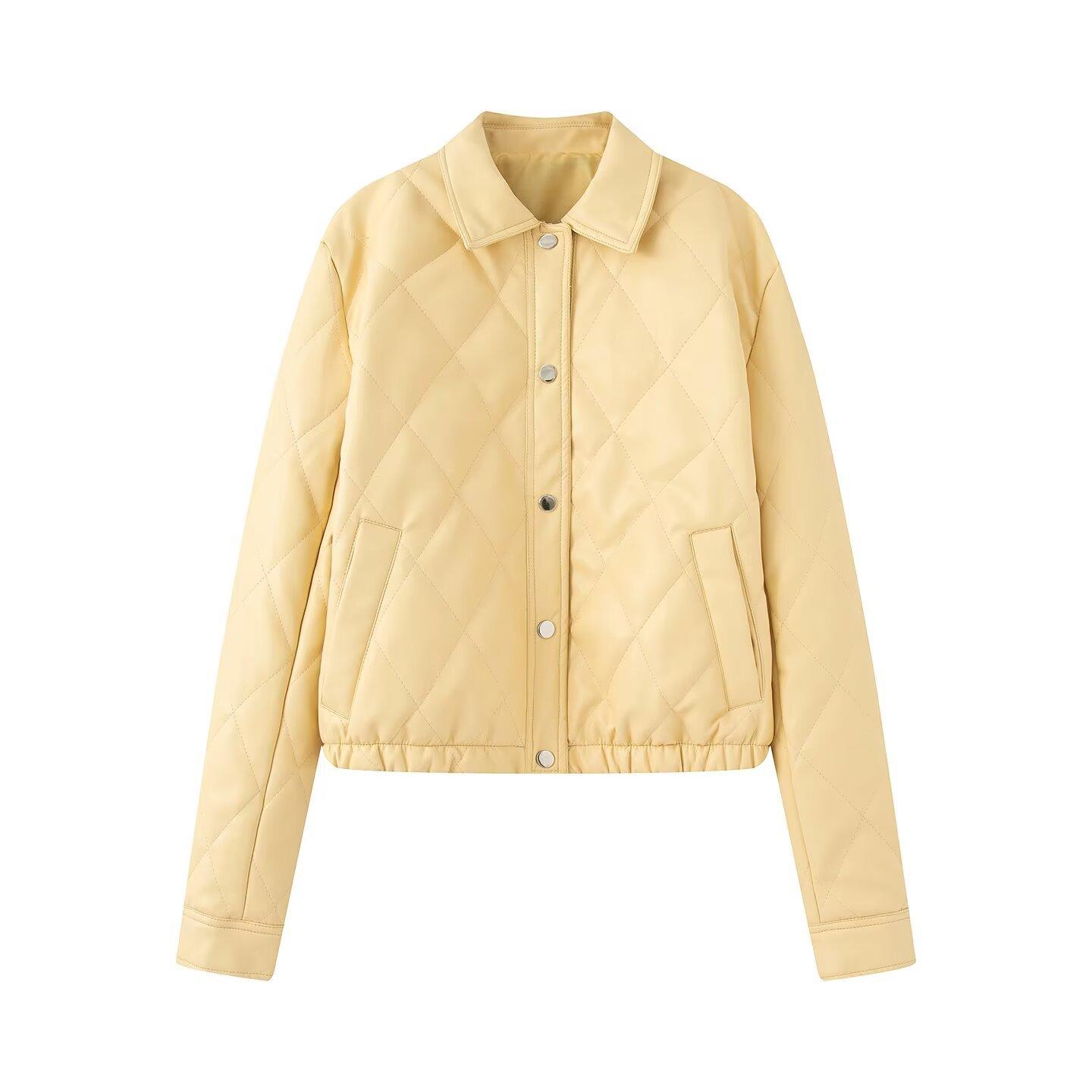 Abrigo exterior transfronterizo para mujer 2025 otoño nuevo temperamento estilo commuter acolchado patrón diamante corto chaqueta abrigo de cuero sintético para mujer