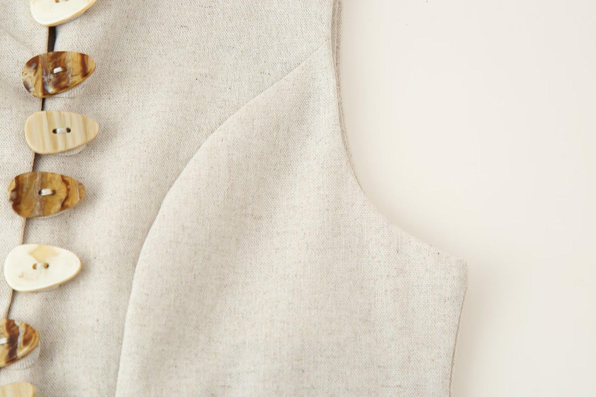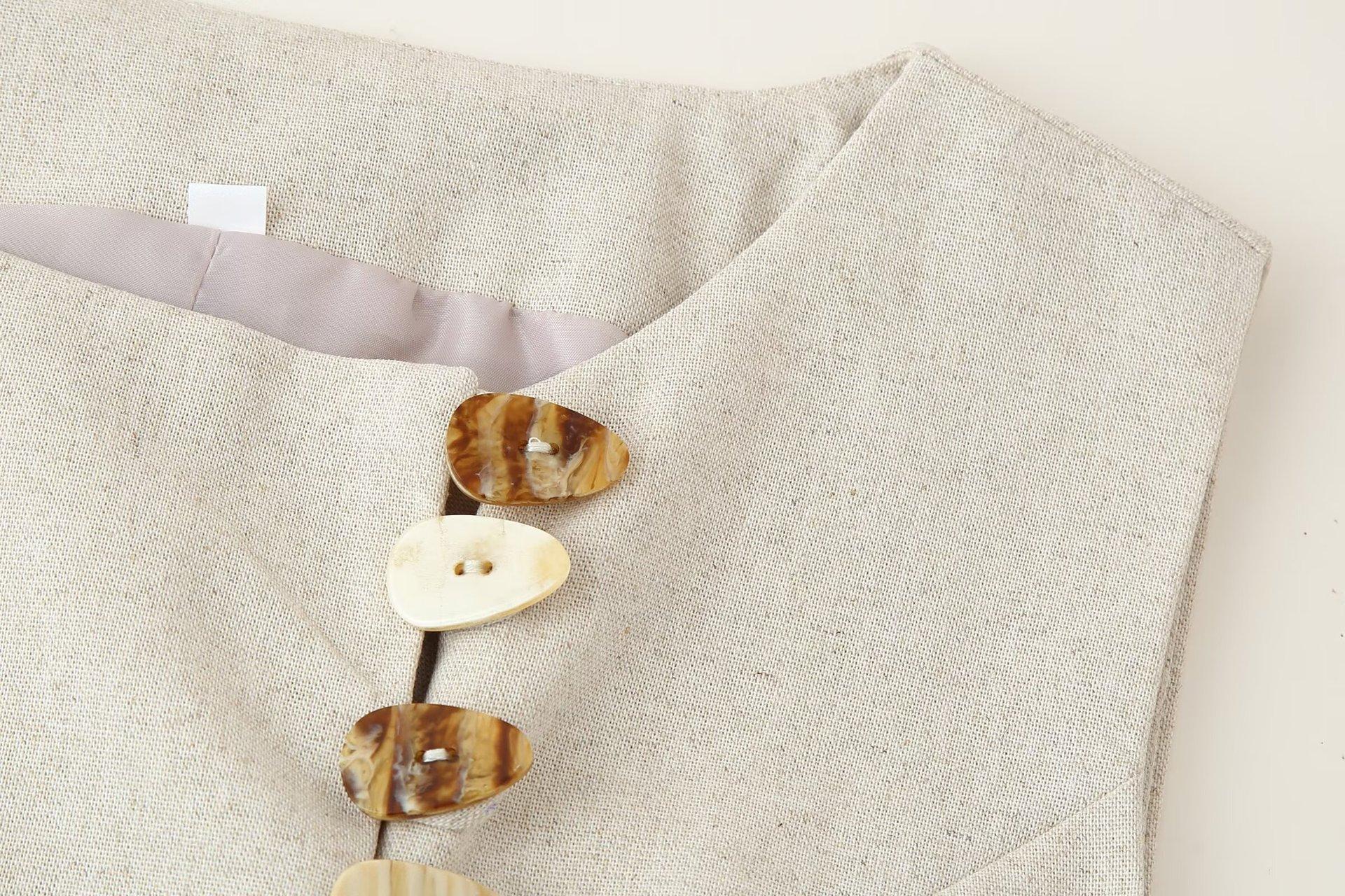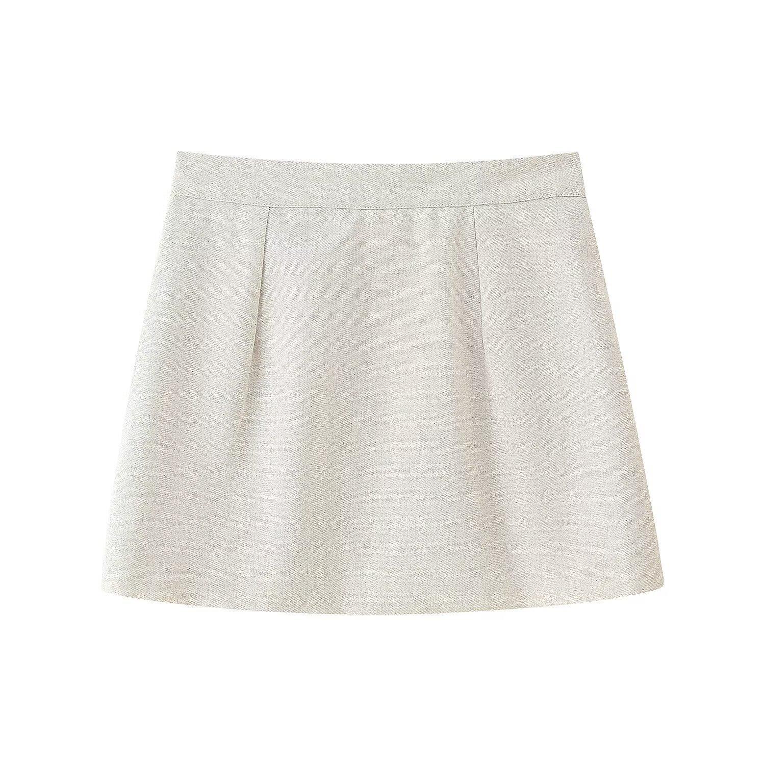 Conjunto de Top Chaleco de Cuello Redondo con Doble Botonadura Estilo Europeo y Americano Transfronterizo para Comercio Exterior al Mayoreo + Falda de Cintura Alta Decorada con Bolsillos