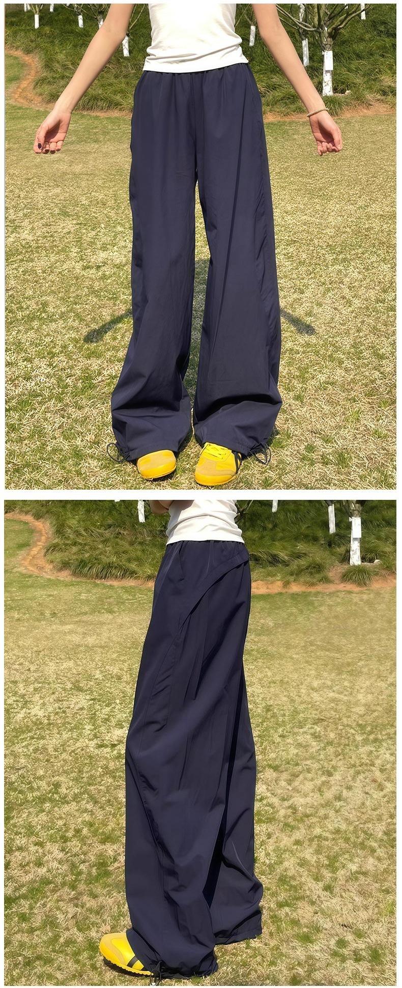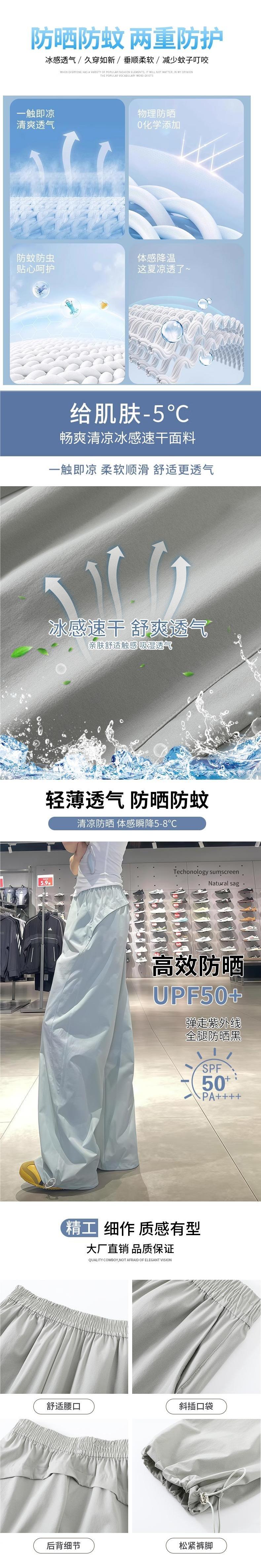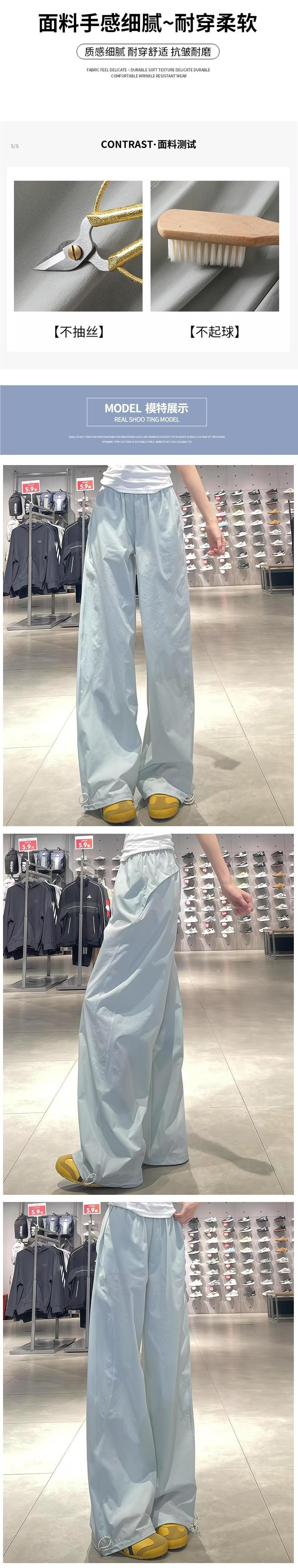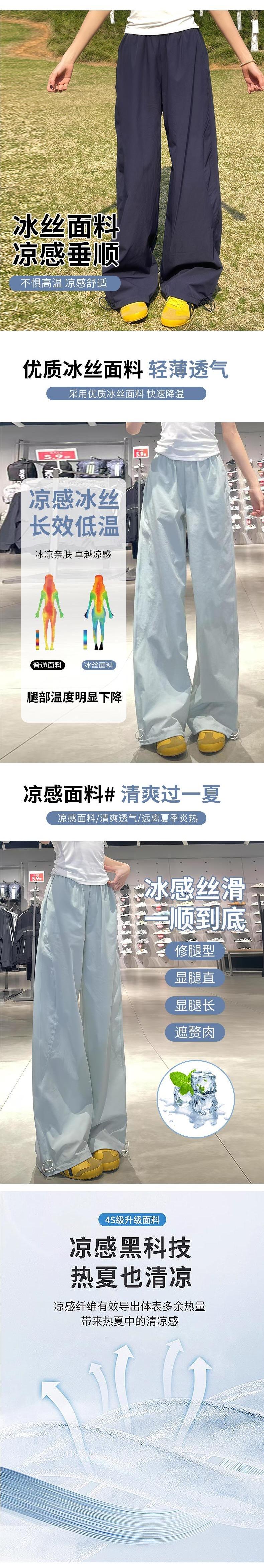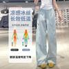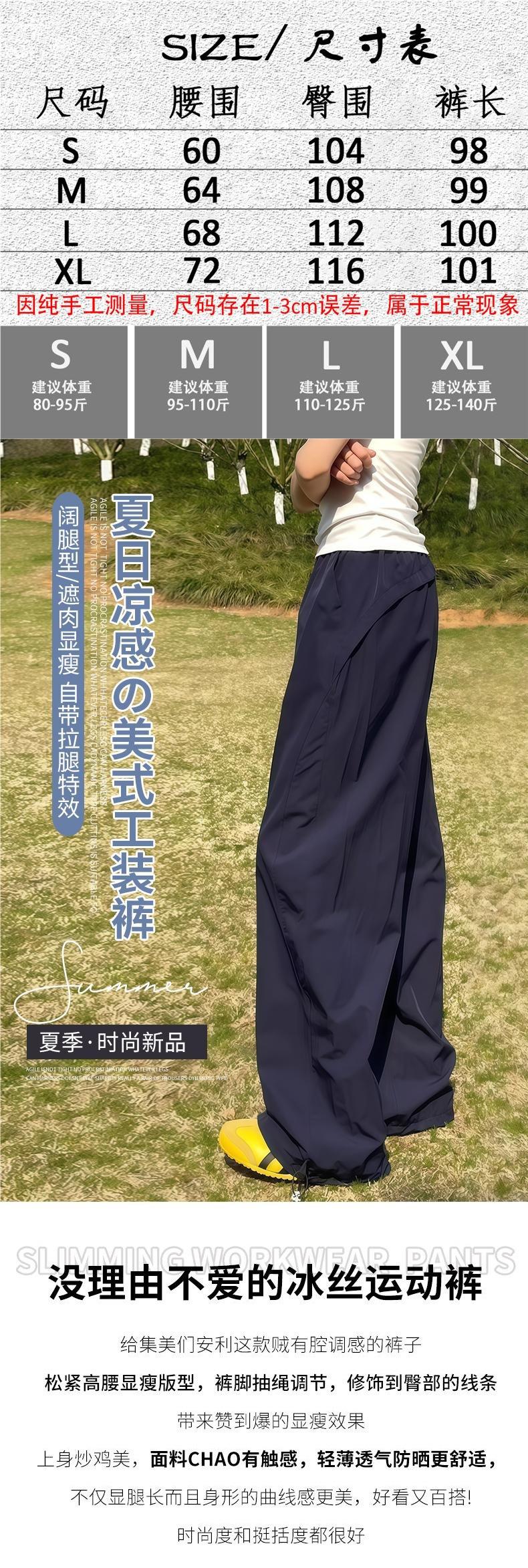 Pantalones de trabajo retro americanos de secado rápido para mujer, verano delgado 2025 nuevos de talle alto holgados con caída casuales de pierna ancha