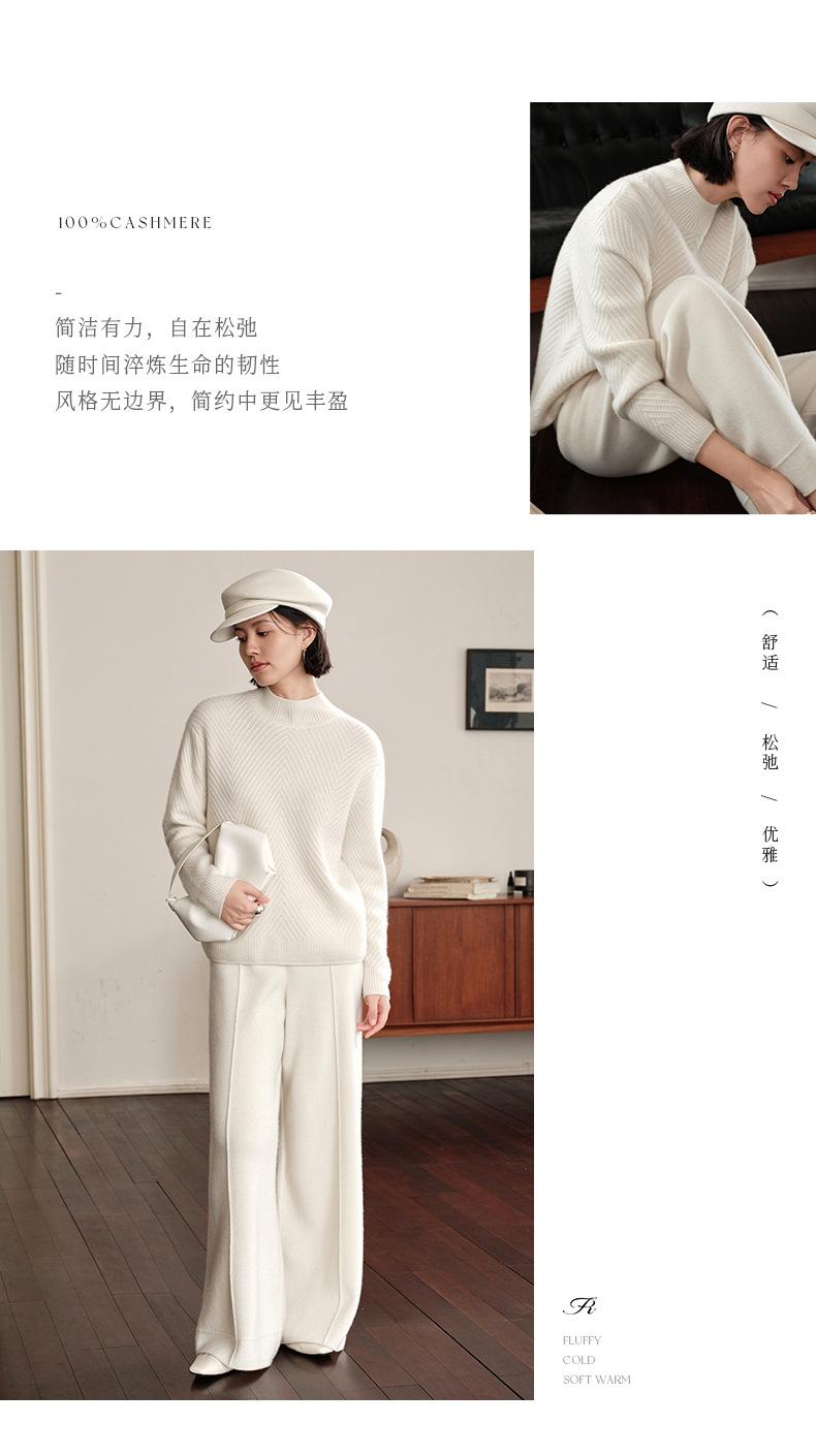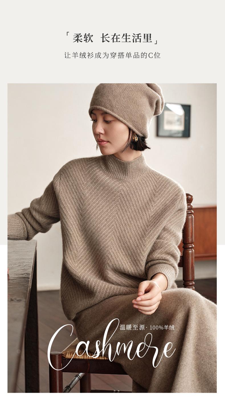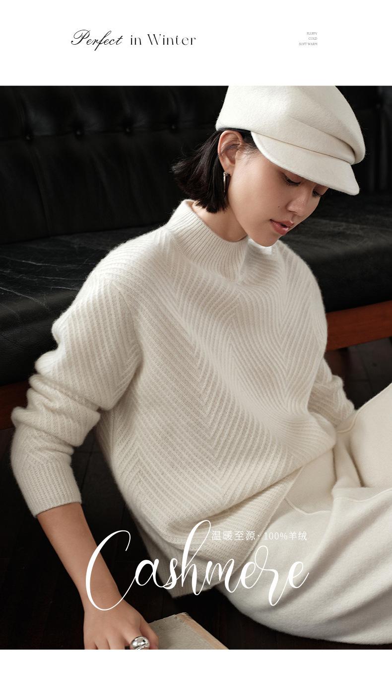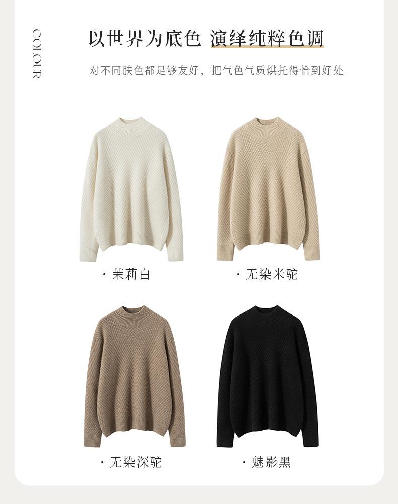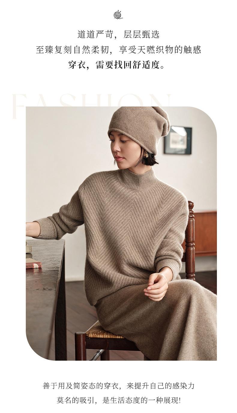 Suéter de Cachemira 100% Pura para Mujer de Cuello Medio Alto Holgado Casual Sencillo Versátil Otoño e Invierno Nuevo Estilo Ropa Interior Base