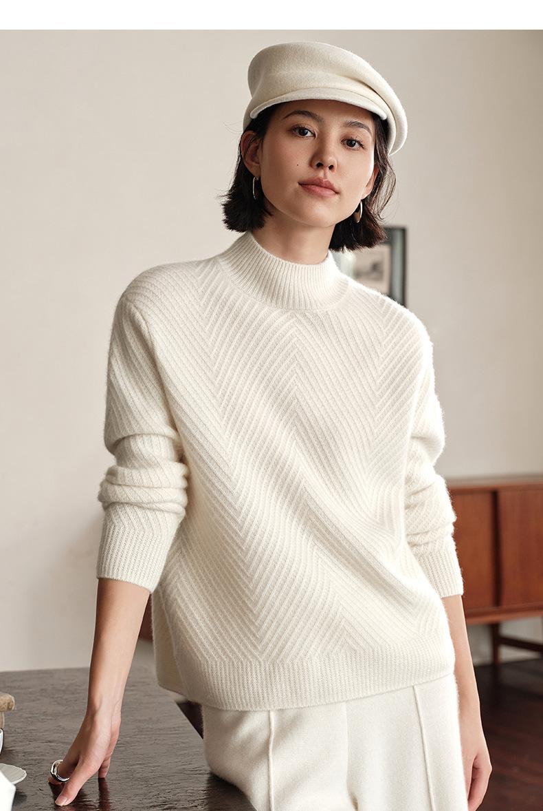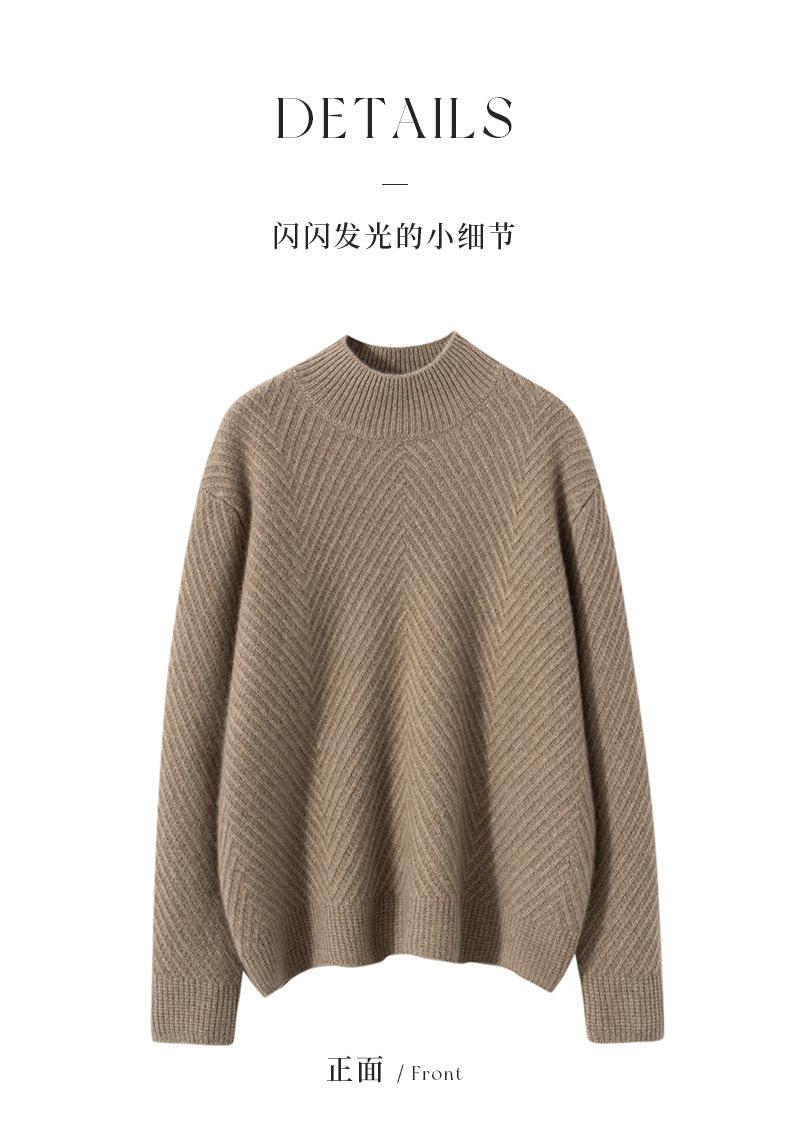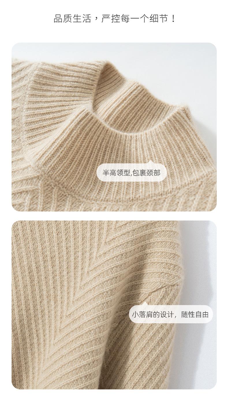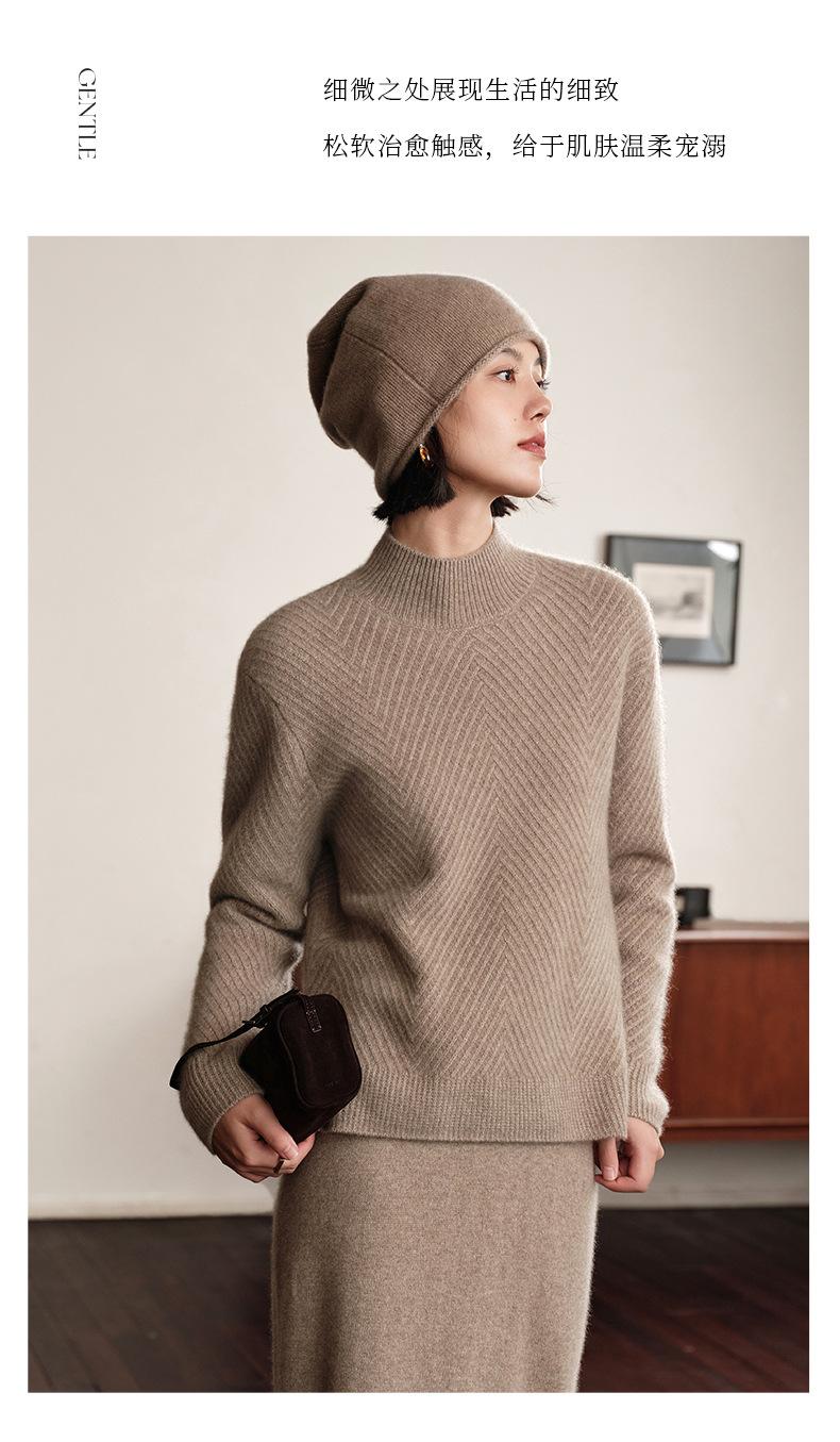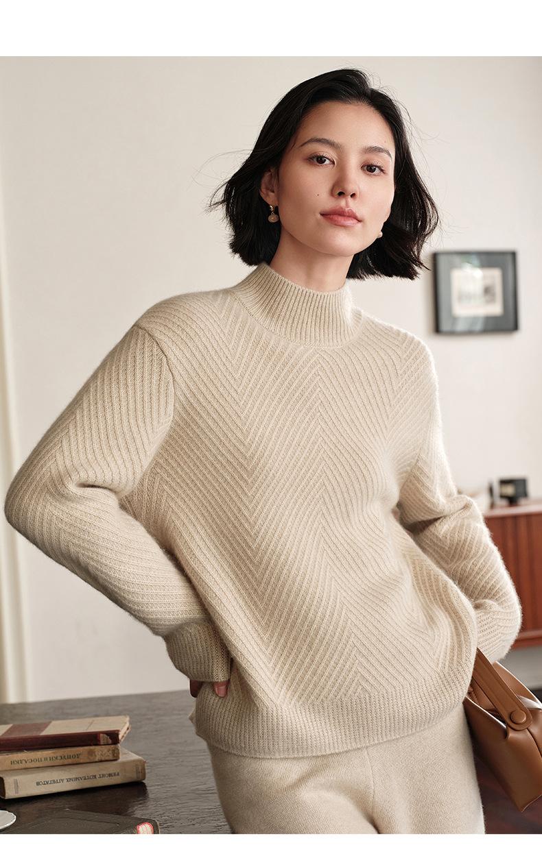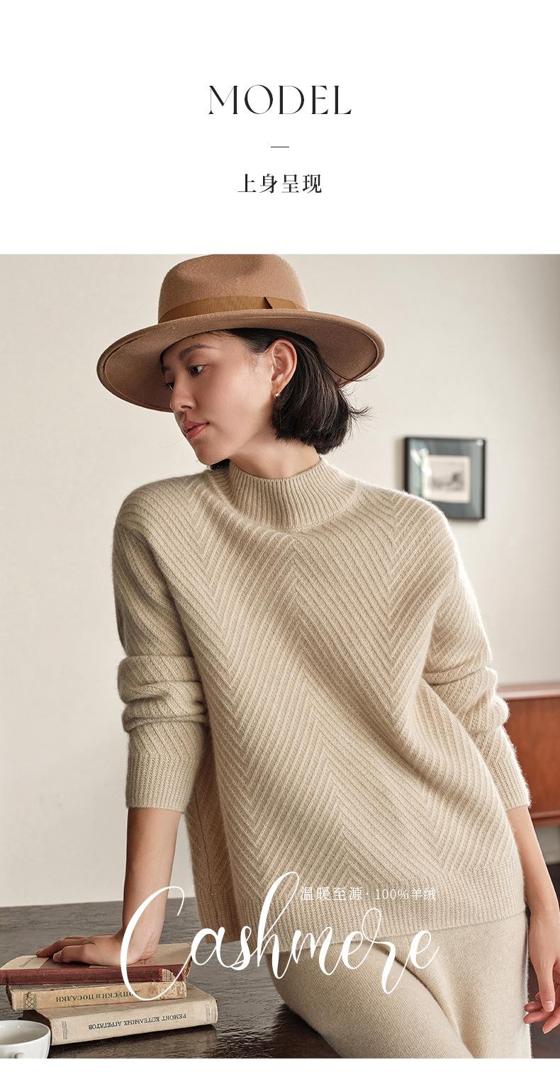 Suéter de Cachemira 100% Pura para Mujer de Cuello Medio Alto Holgado Casual Sencillo Versátil Otoño e Invierno Nuevo Estilo Ropa Interior Base