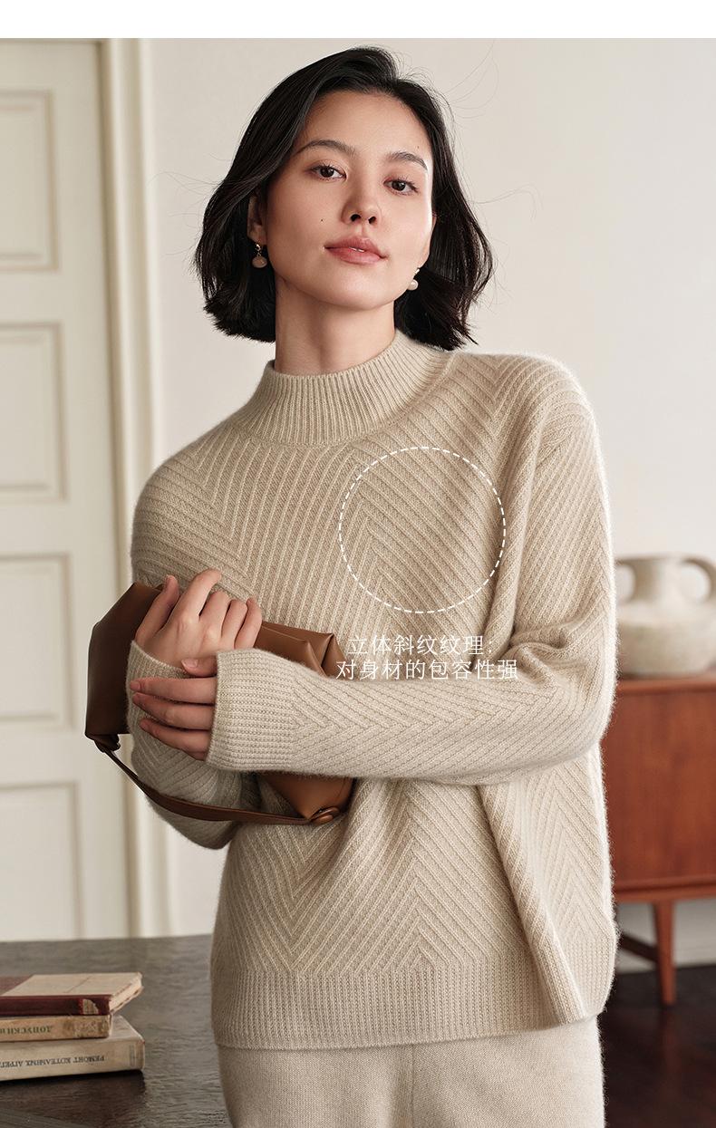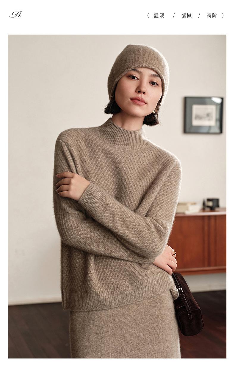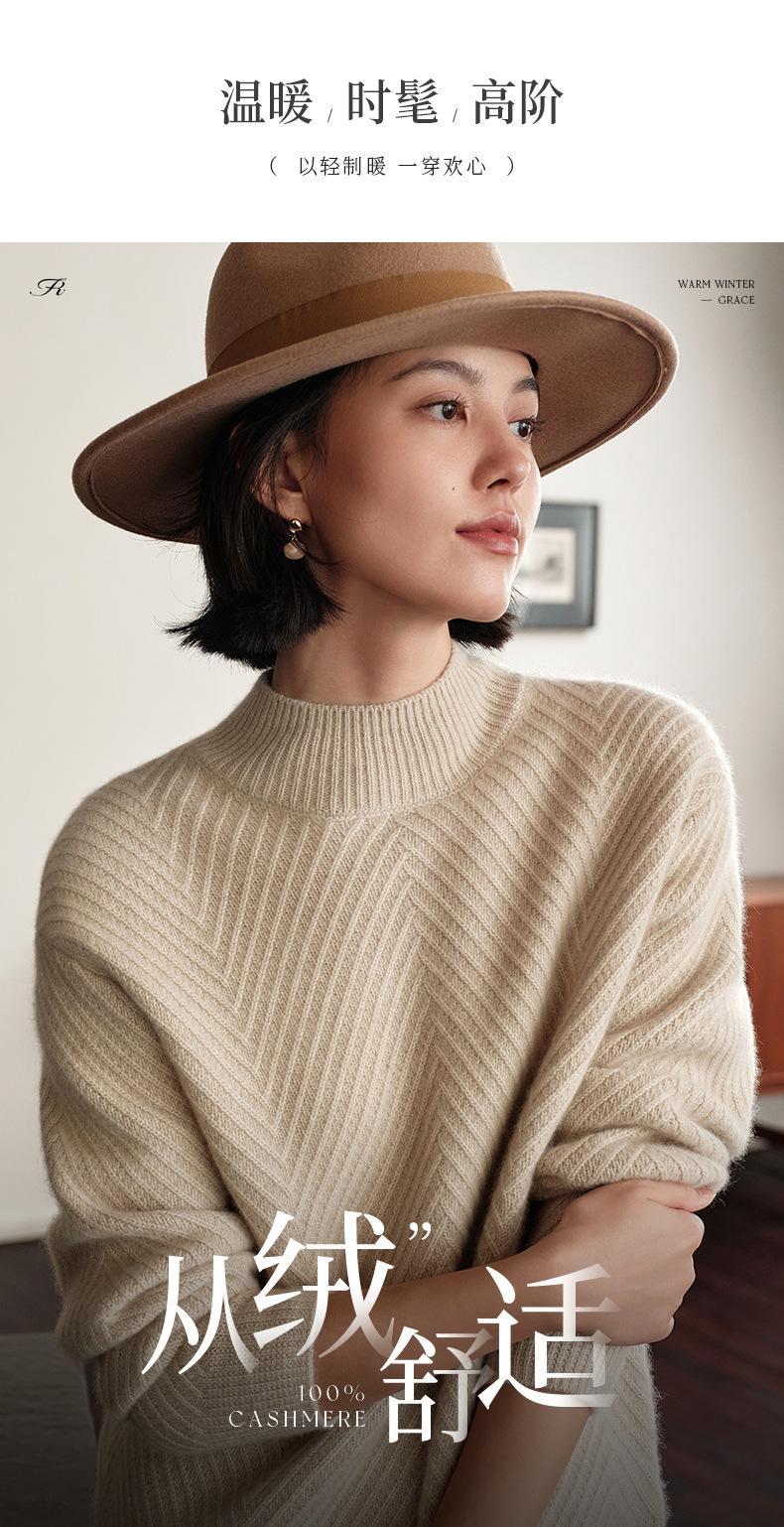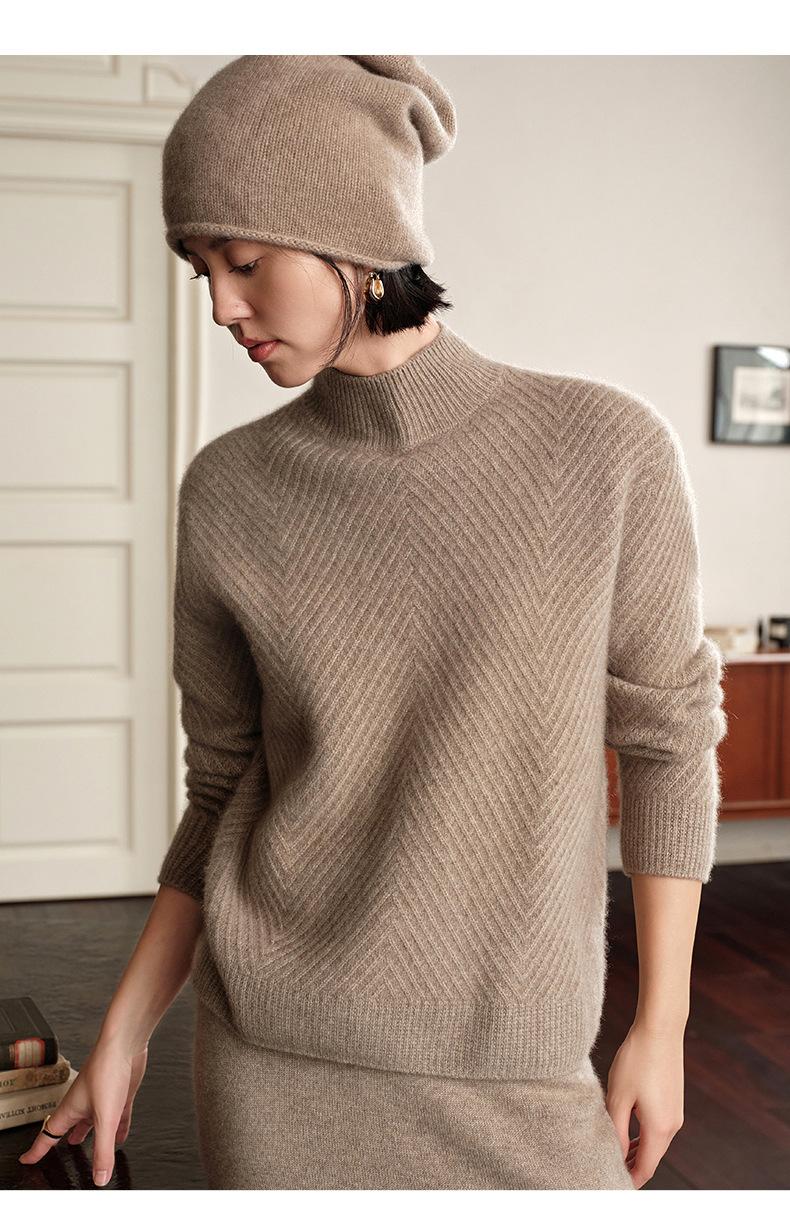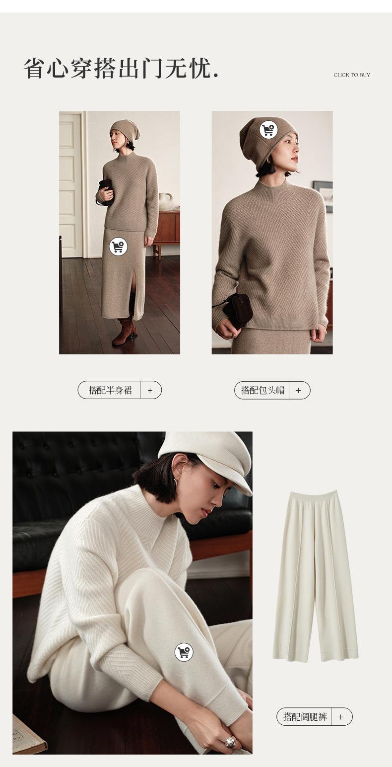 Suéter de Cachemira 100% Pura para Mujer de Cuello Medio Alto Holgado Casual Sencillo Versátil Otoño e Invierno Nuevo Estilo Ropa Interior Base