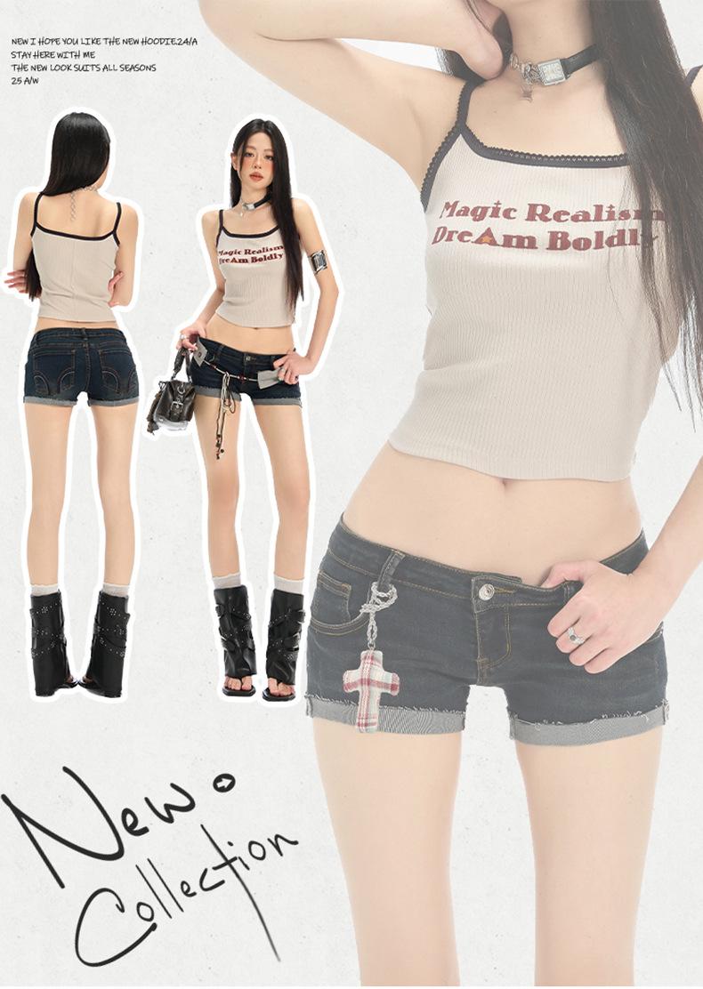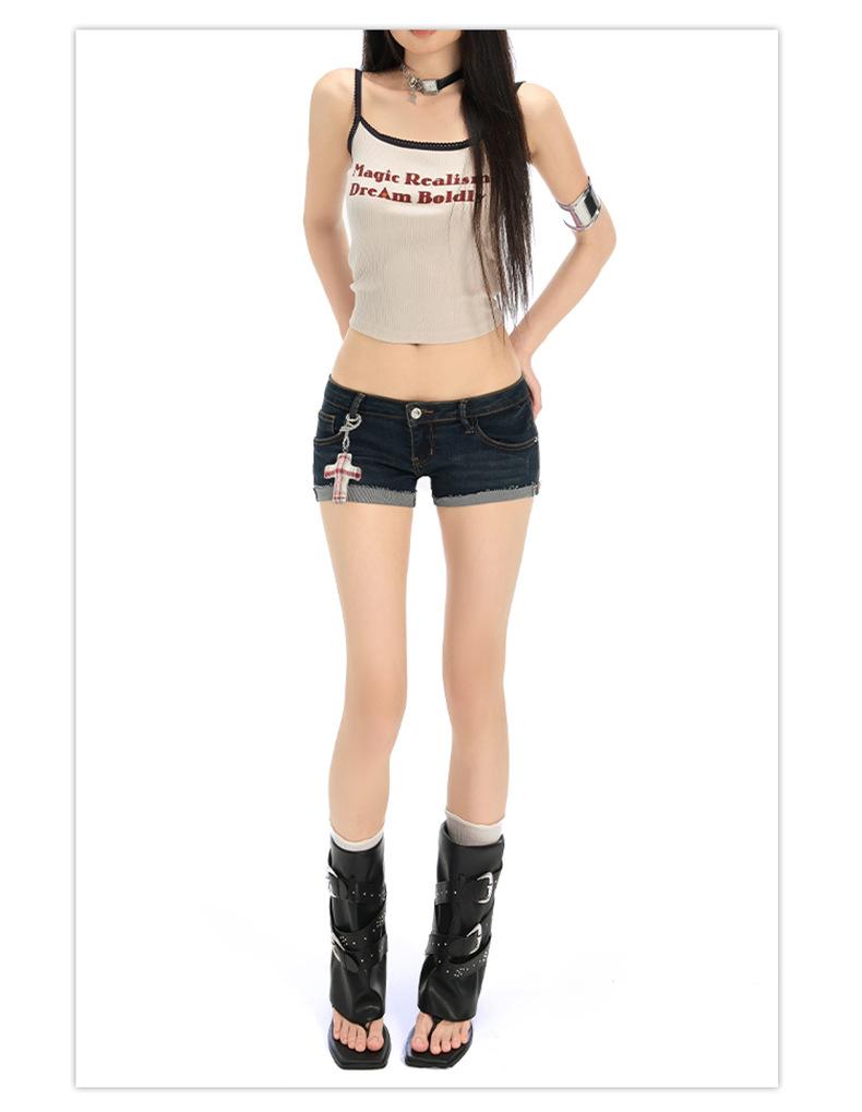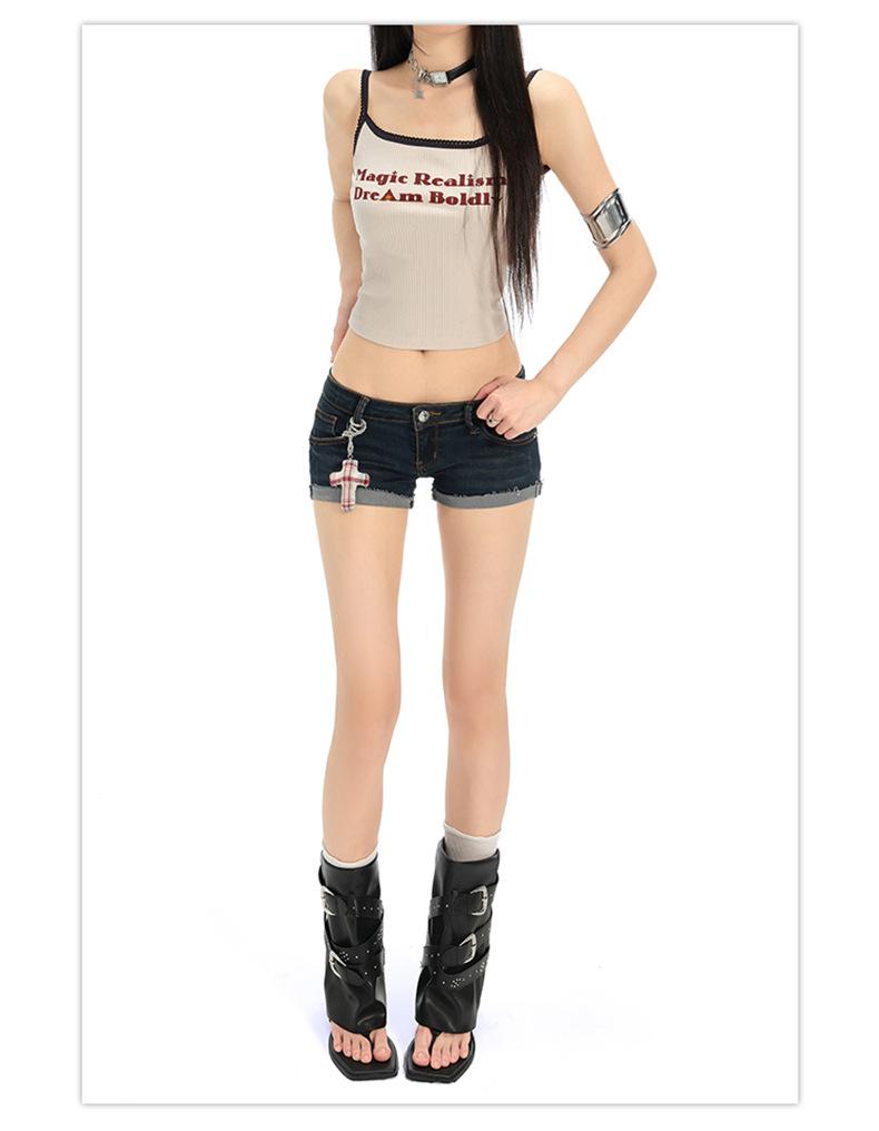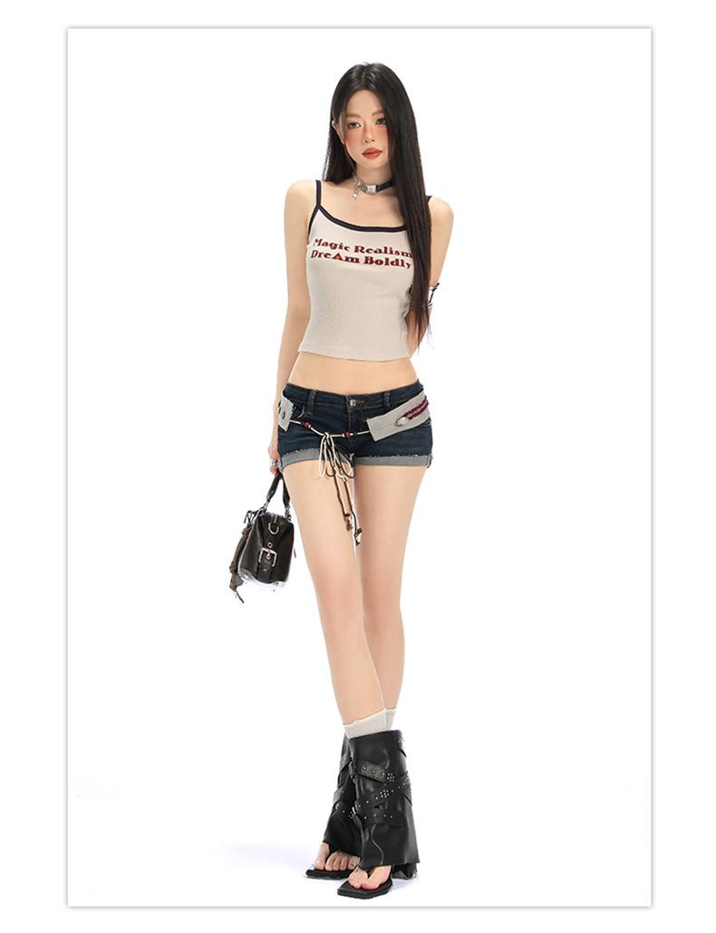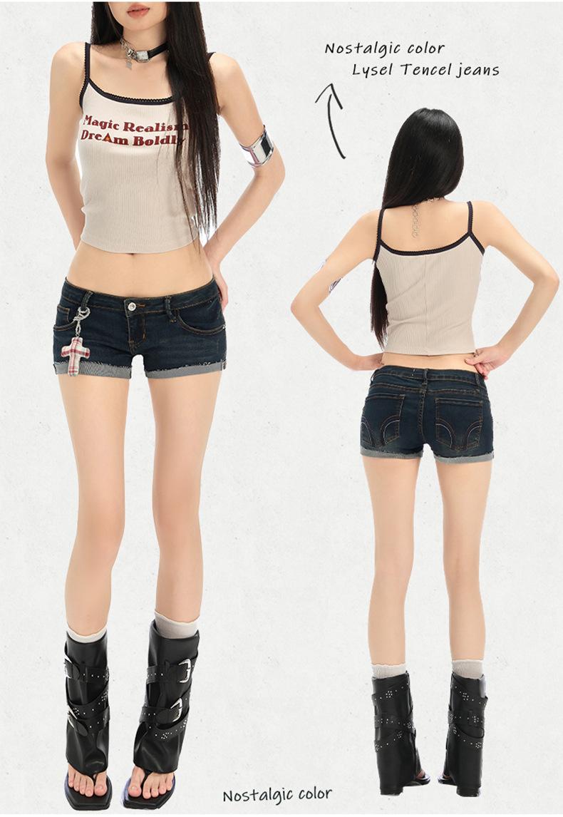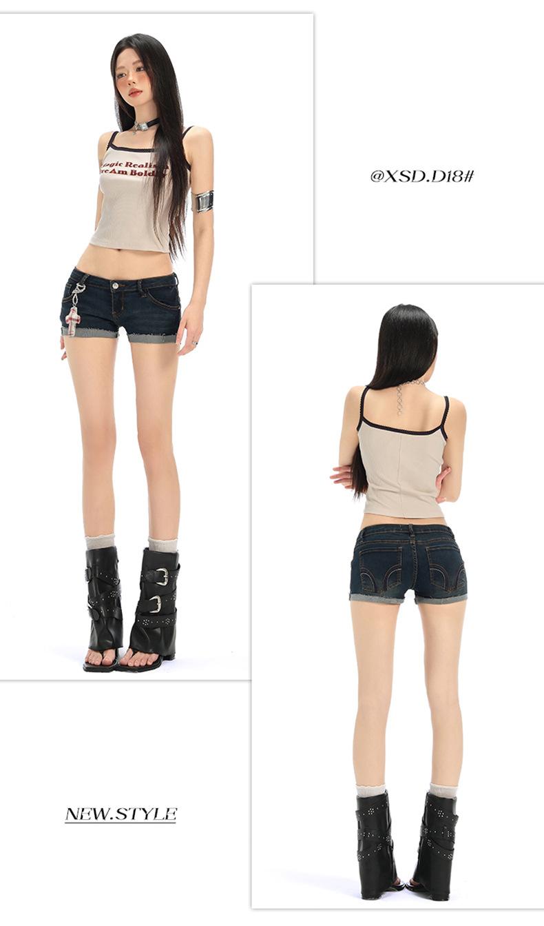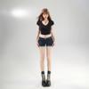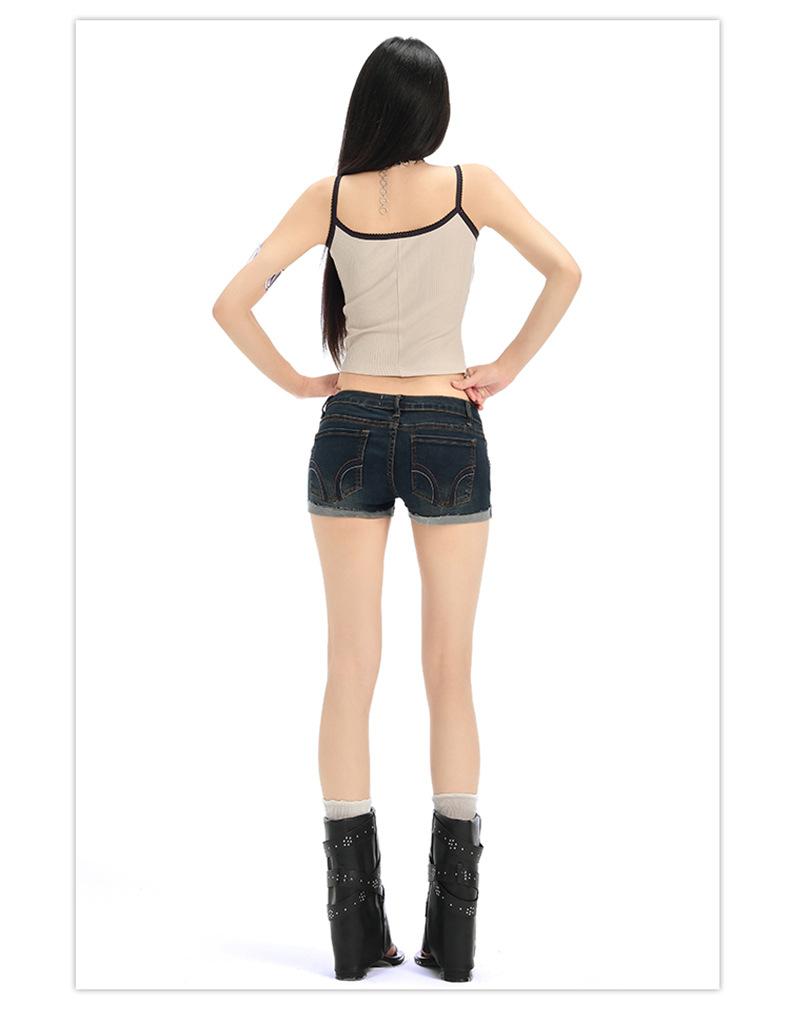 Ropa de Mujer de Seda Naranja # Chica Caliente Shorts de Mezclilla Rizados de Cintura Baja para Mujer Verano Nuevo Sexy Americano Ajustado Levanta Glúteos Pantalones Cortos Hot