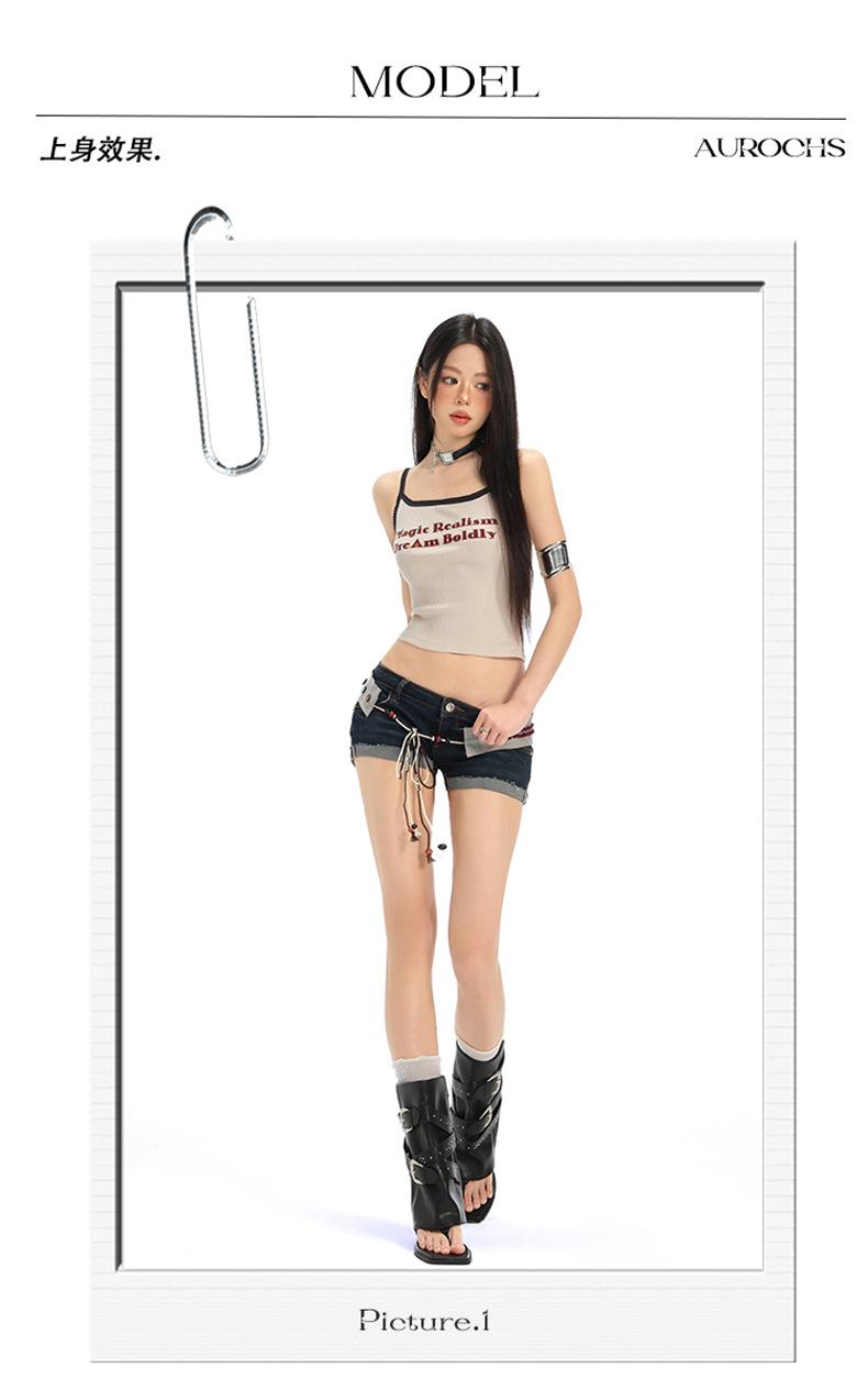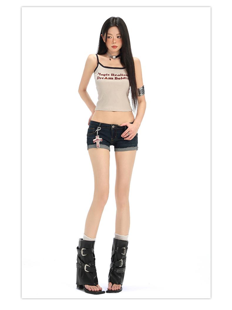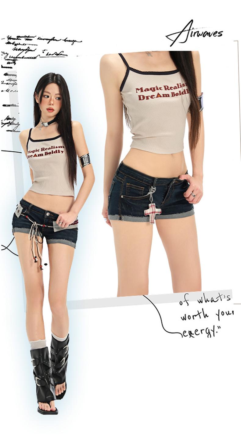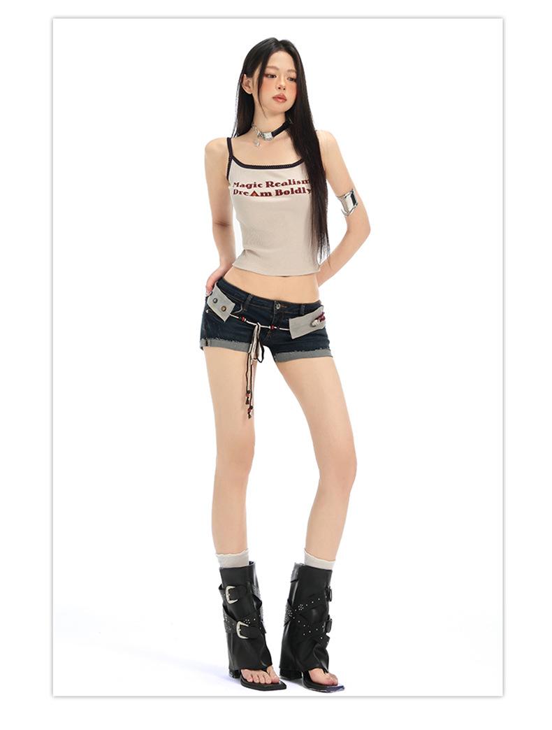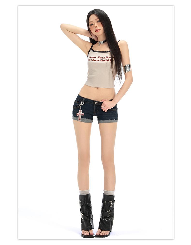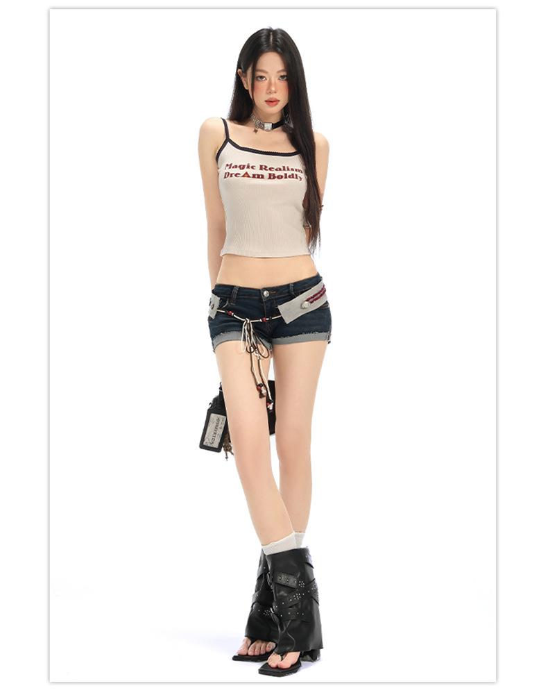 Ropa de Mujer de Seda Naranja # Chica Caliente Shorts de Mezclilla Rizados de Cintura Baja para Mujer Verano Nuevo Sexy Americano Ajustado Levanta Glúteos Pantalones Cortos Hot