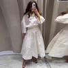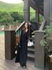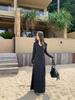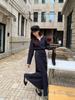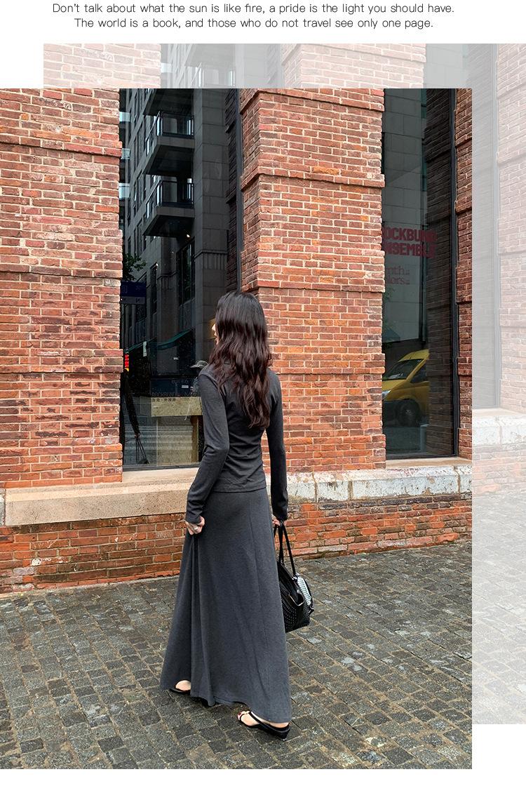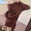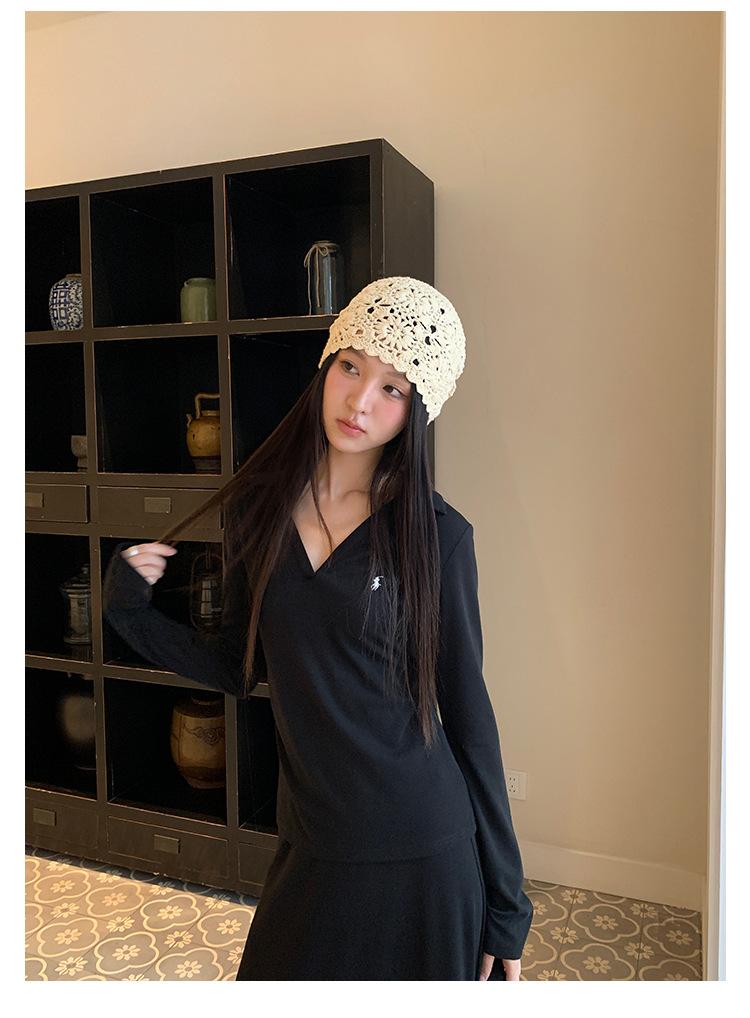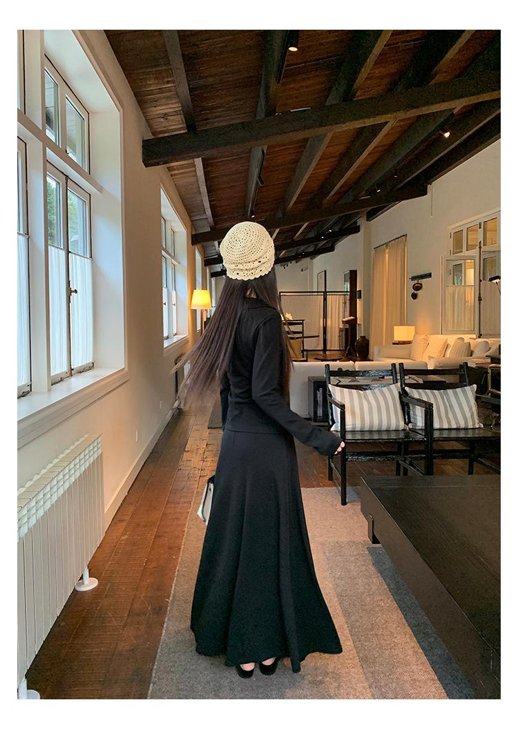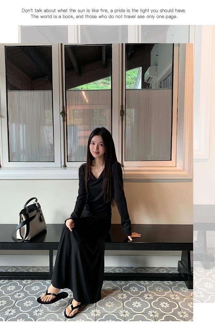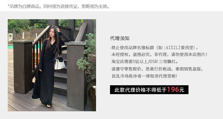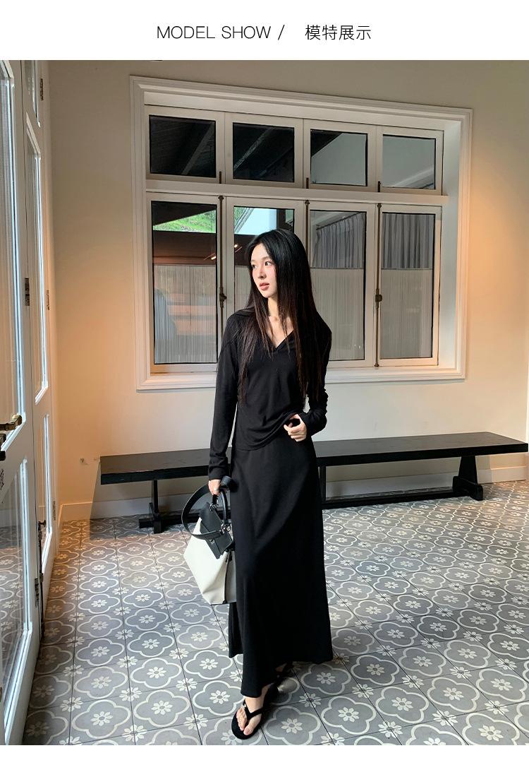 Venta de Liquidación Trece Filas Sin Devoluciones ni Cambios Top de Punto de Cuello en V con Logo Pequeño Bordado en Solapa + Set de Falda Larga Fluida Adelgazante 15269