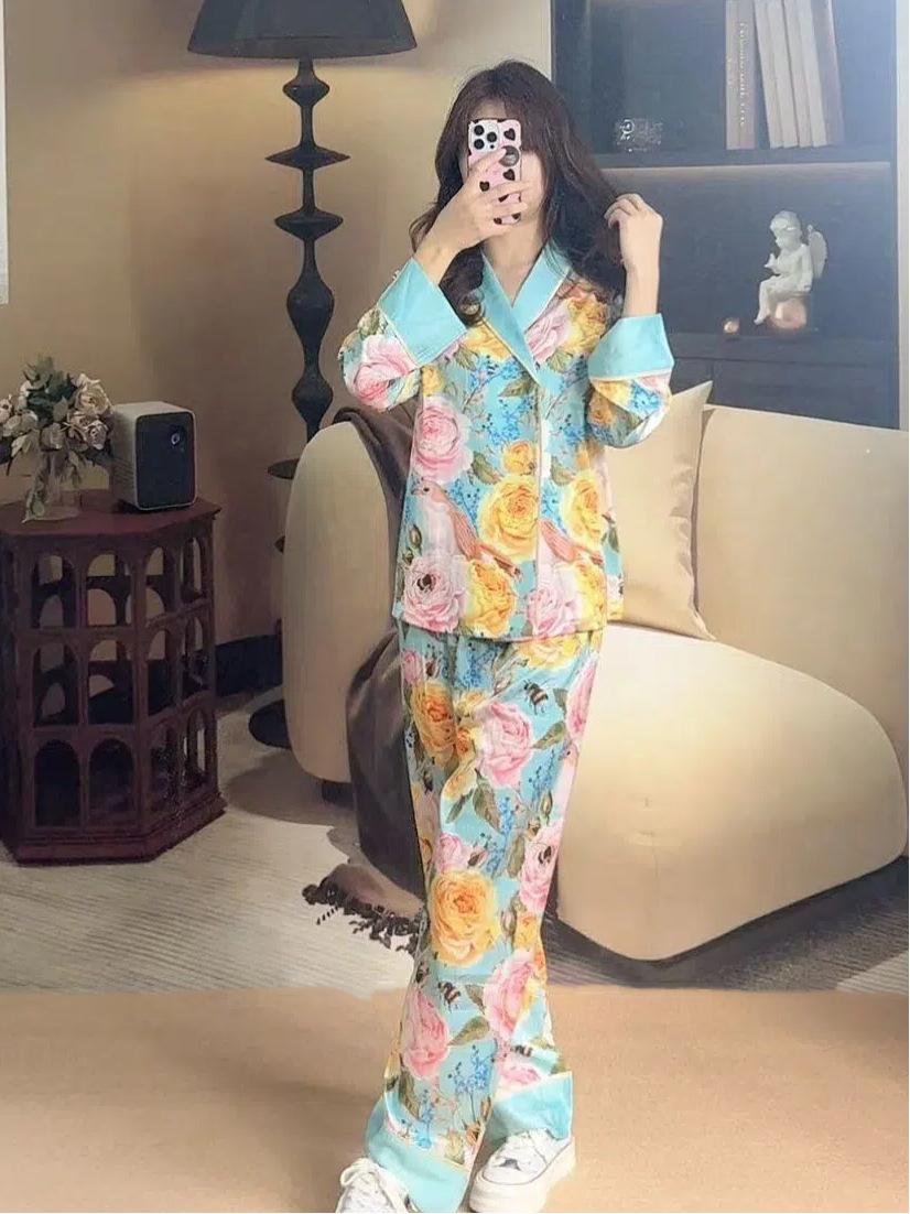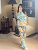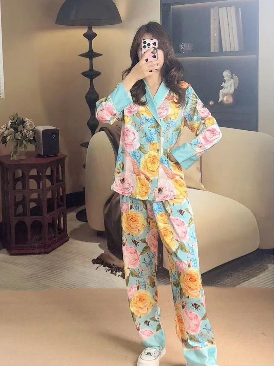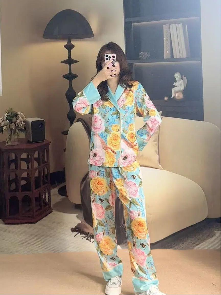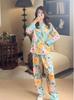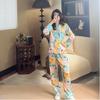 Primavera/Verano Pintura al óleo Flores frescas Casual Hogar Pijama Fresco Set Cuello en V Ropa de Mujer Cómodo Moderno Estilo Extranjero Set de Dos Piezas Ropa de Mujer