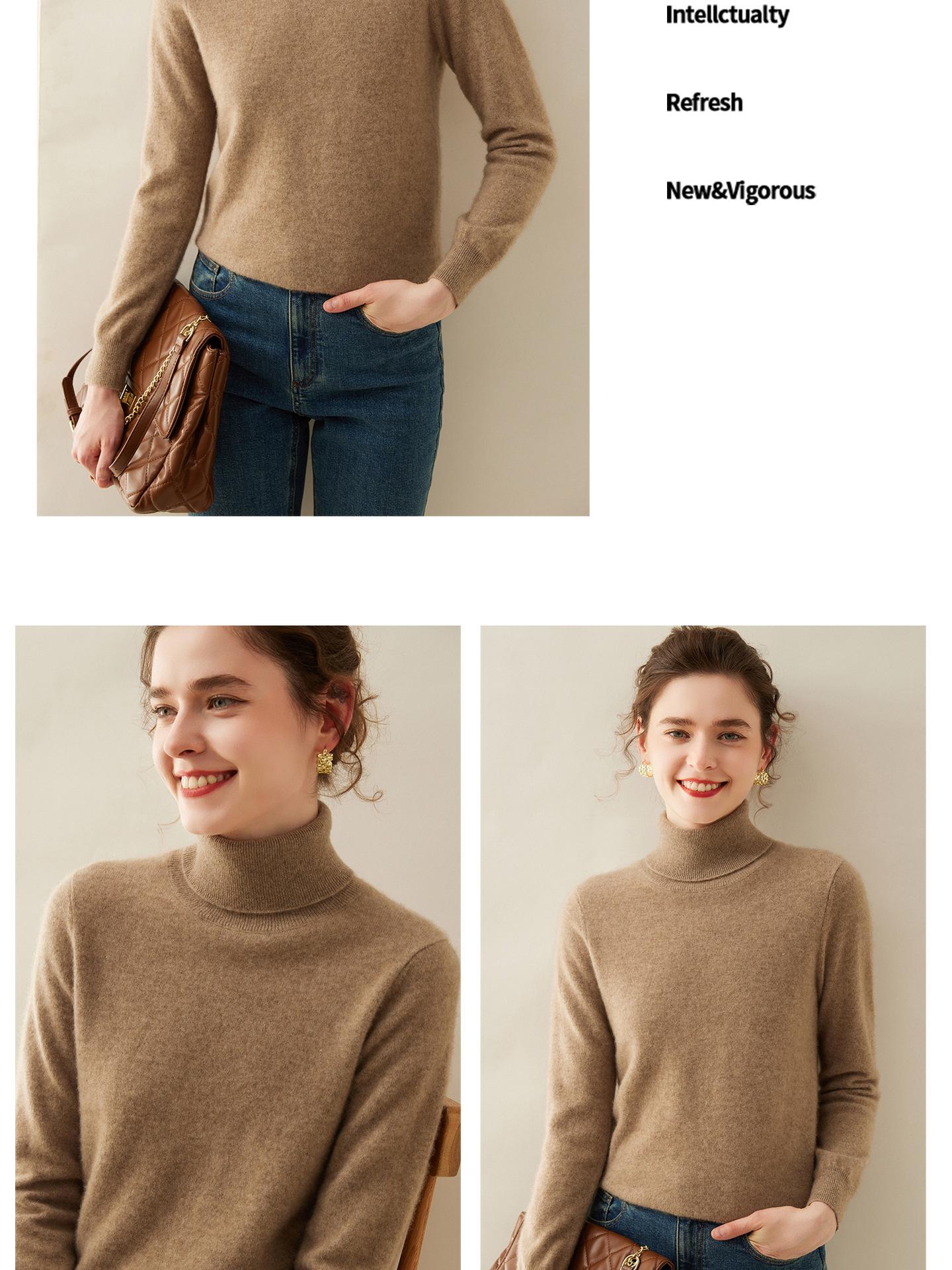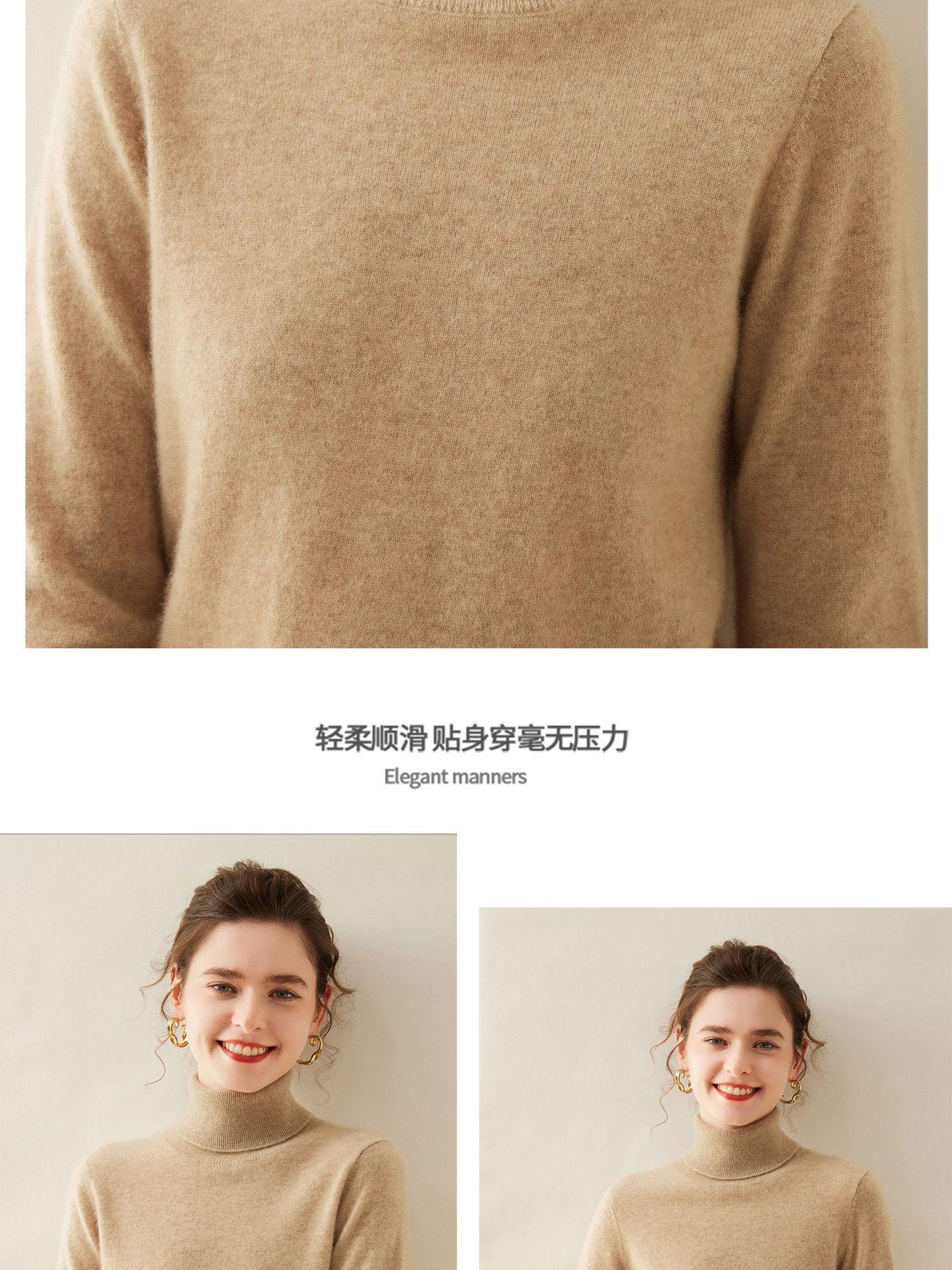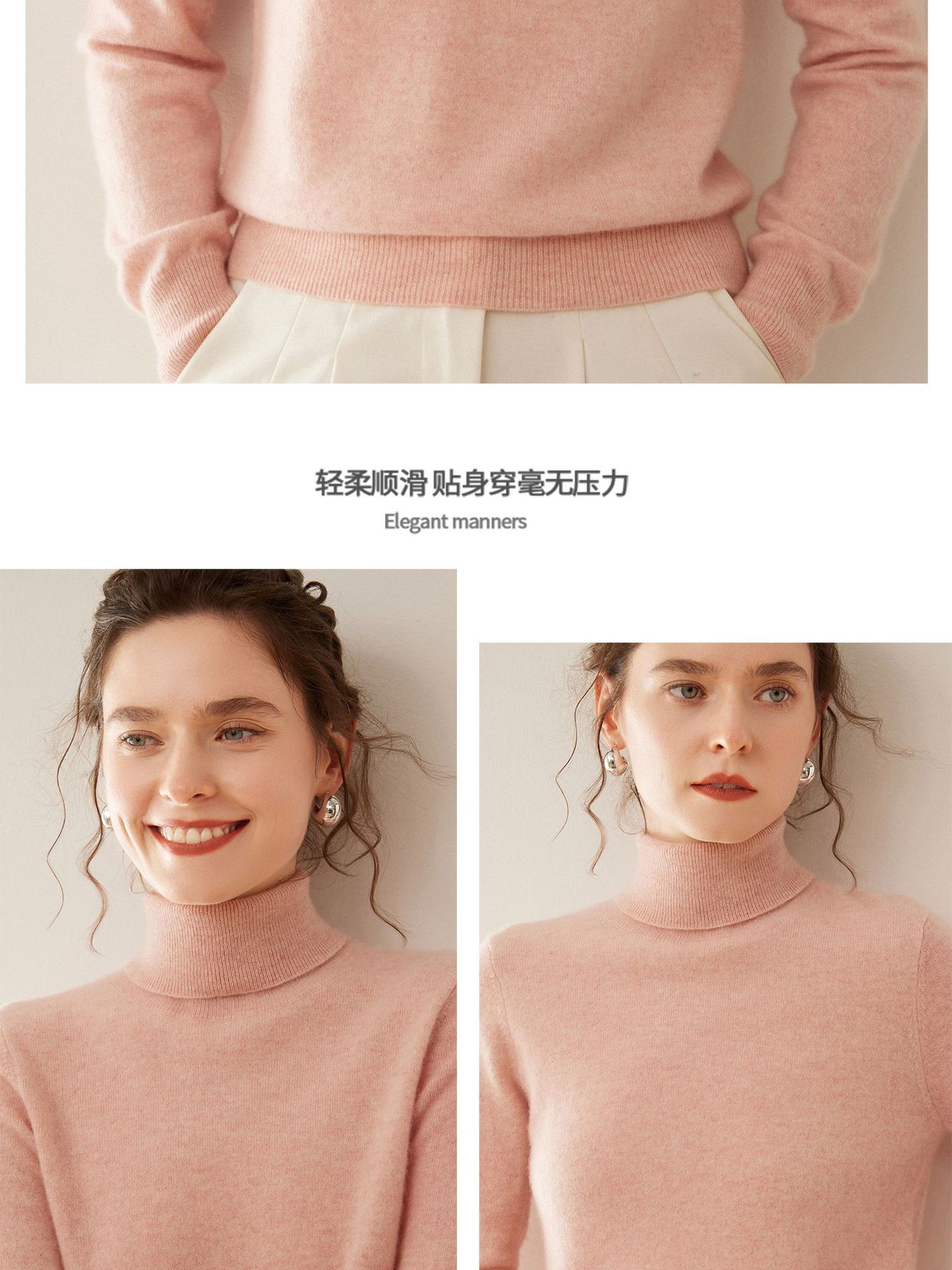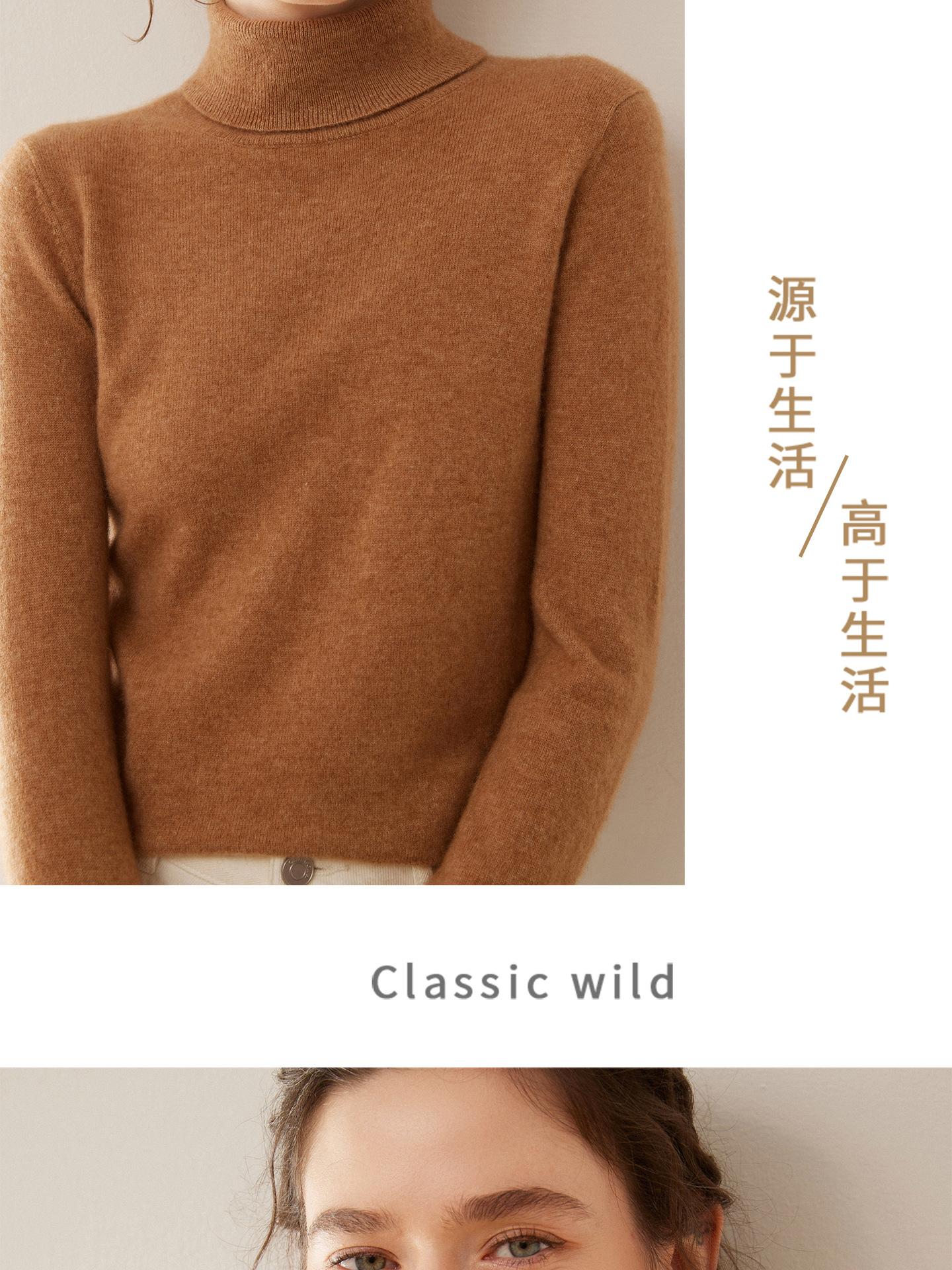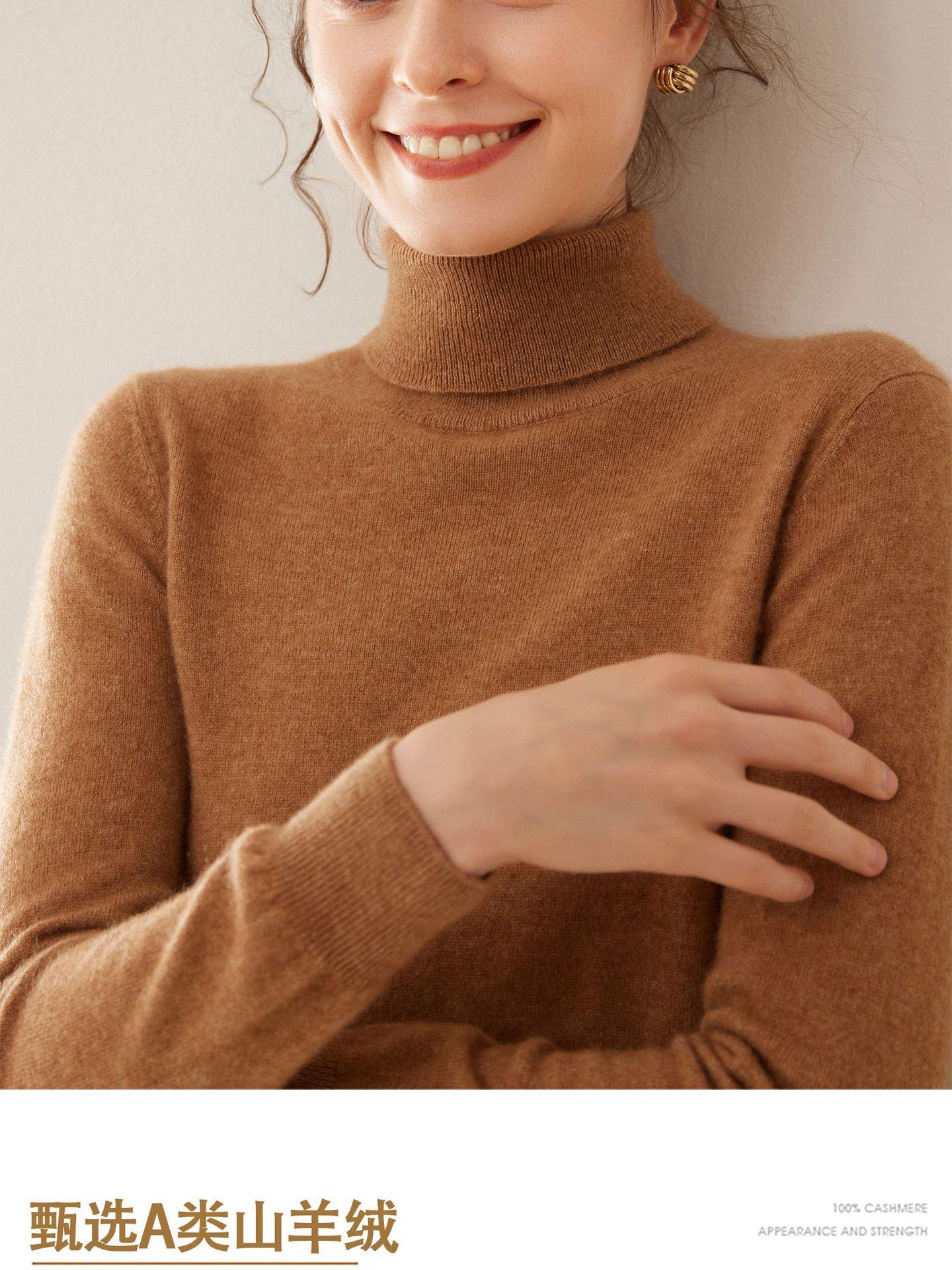 Nueva Camiseta Básica de Punto de Cachemira para Otoño e Invierno, Color Sólido, Suave y Cómoda, Cuello Alto, Holgada, Adelgazante, Moda para Damas