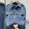 Jeans de jogging otoño 2024 1889159 moda callejera transfronteriza manga larga solapa camisa de mezclilla 1889160