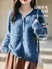 Nuevo cárdigan de punto grueso y suave de lana con cuello redondo para otoño e invierno para mujer, abrigo suéter de hilo floral de cachemira cepillada holgado
