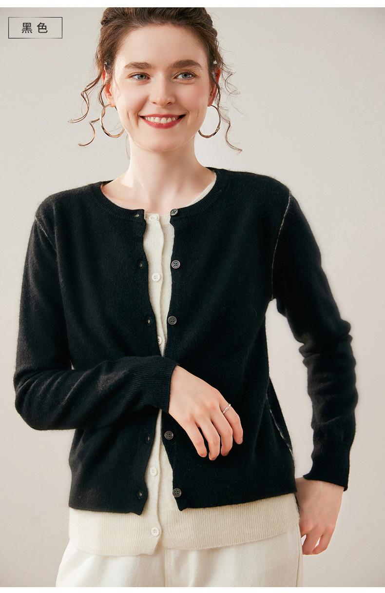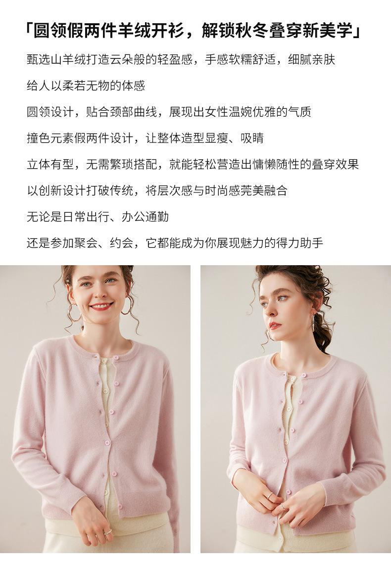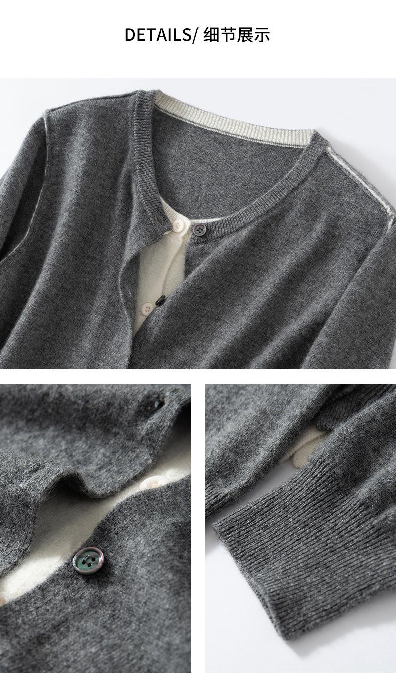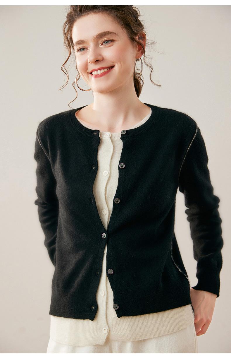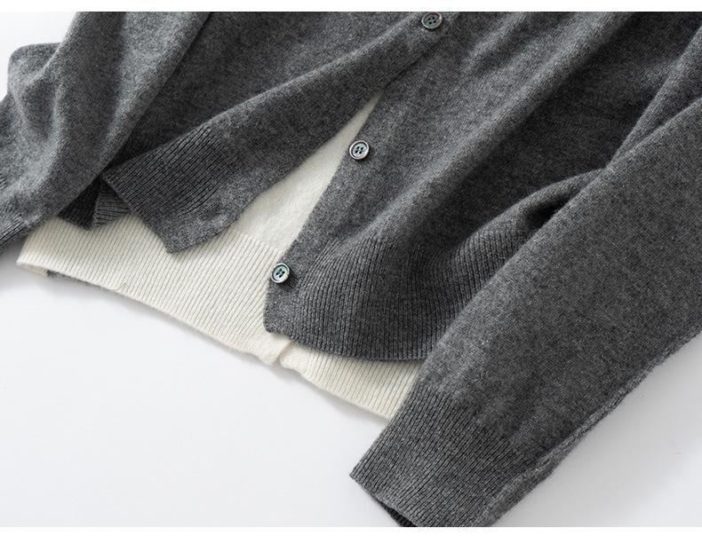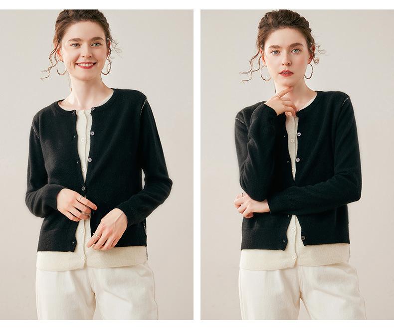 Cárdigan de Cachemira de Punto para Mujer Otoño/Invierno 2025 Nuevo Cuello Redondo Abotonado Moda Bloque de Color Falso Dos Piezas Suéter Exterior