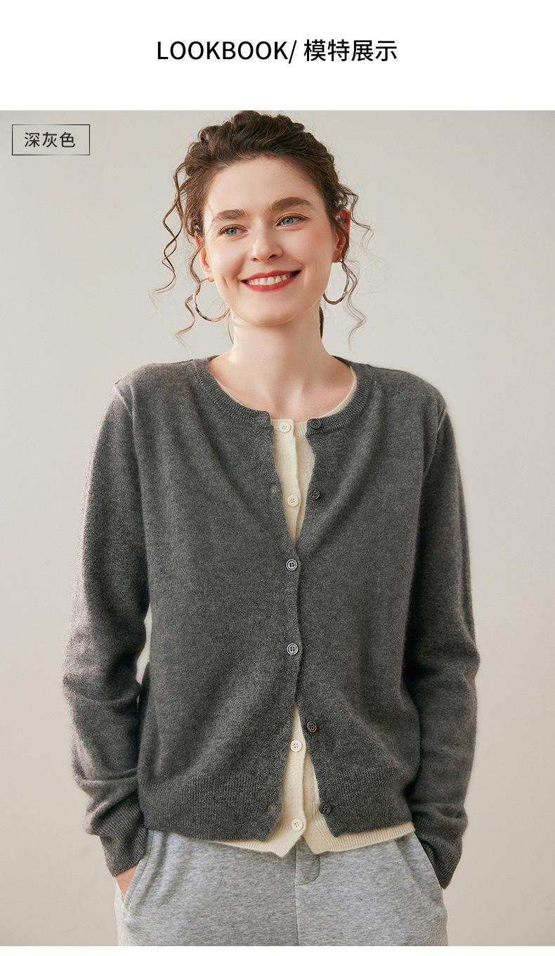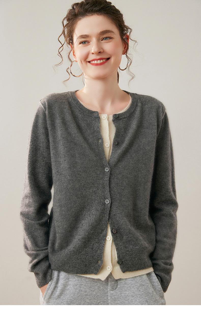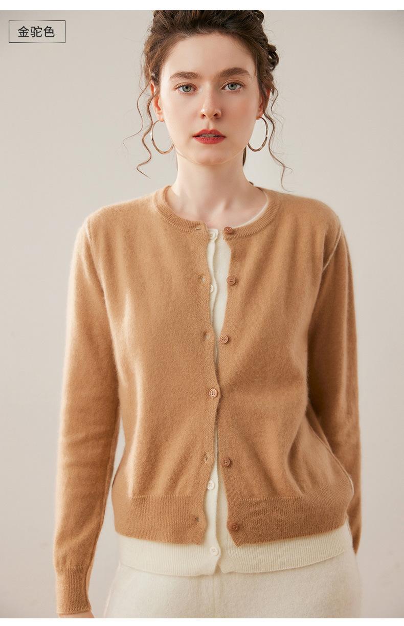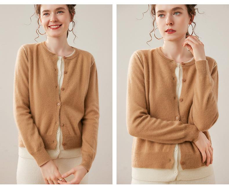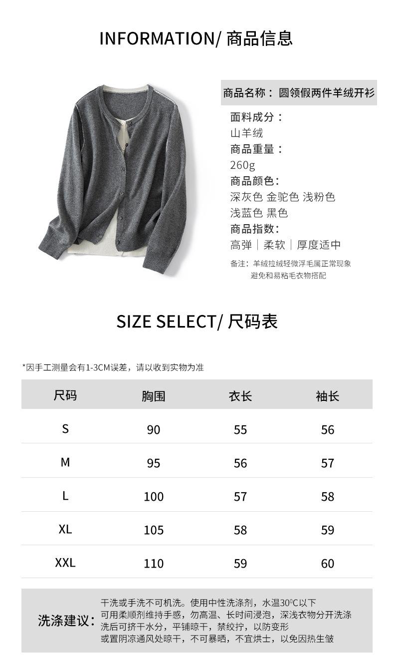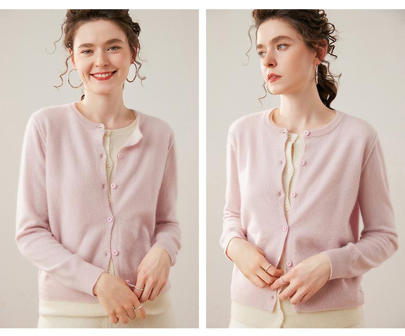 Cárdigan de Cachemira de Punto para Mujer Otoño/Invierno 2025 Nuevo Cuello Redondo Abotonado Moda Bloque de Color Falso Dos Piezas Suéter Exterior