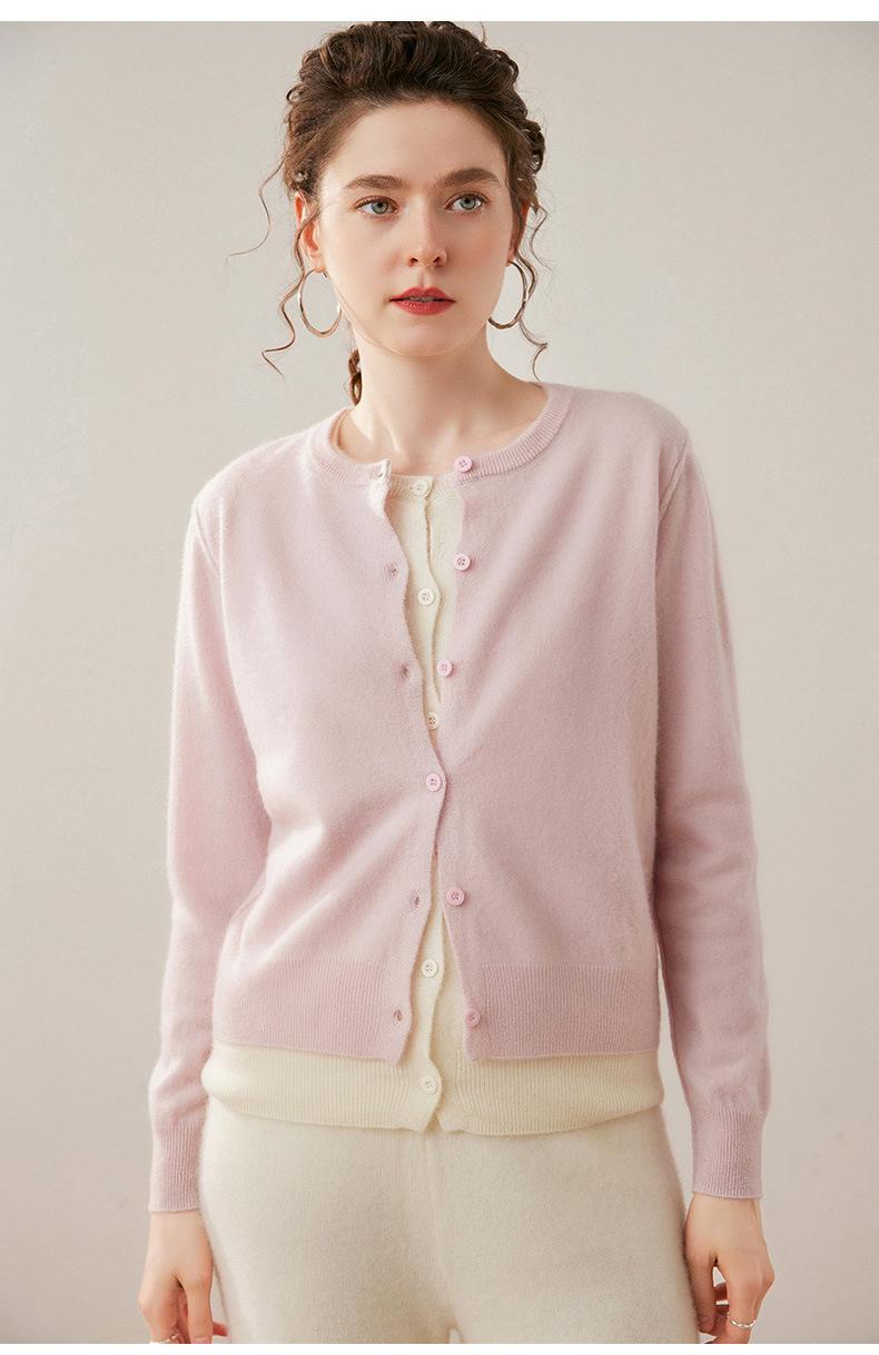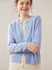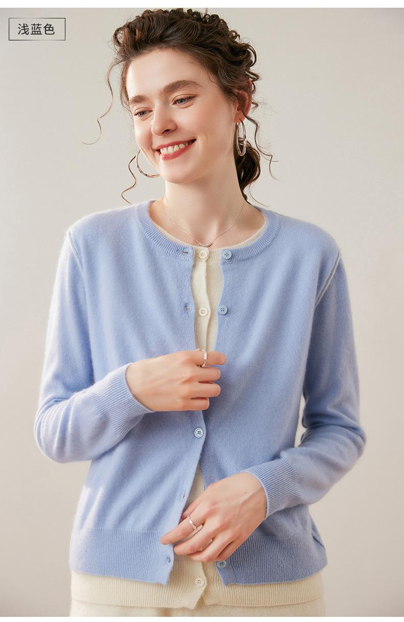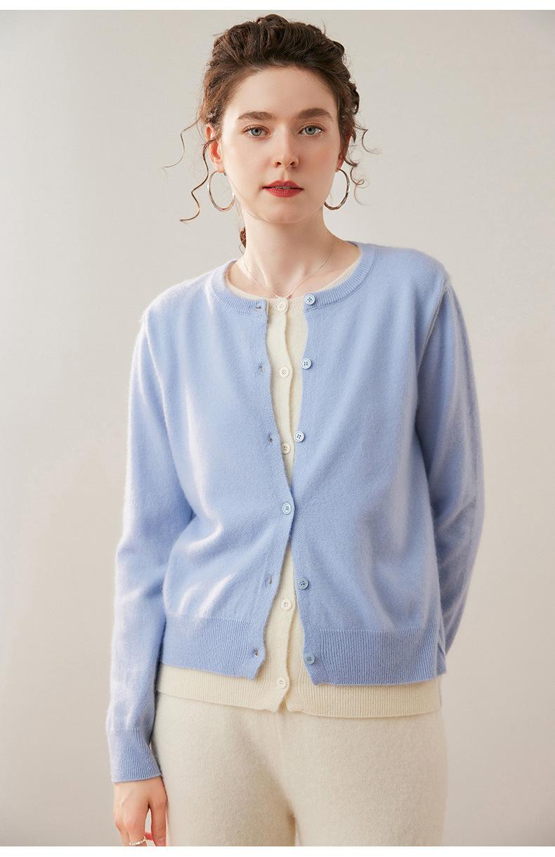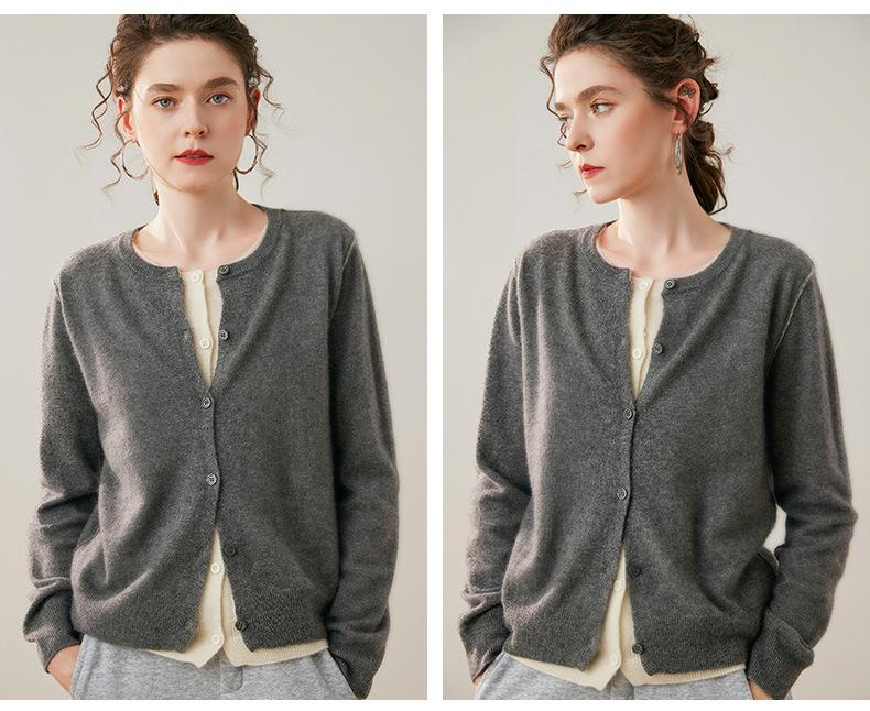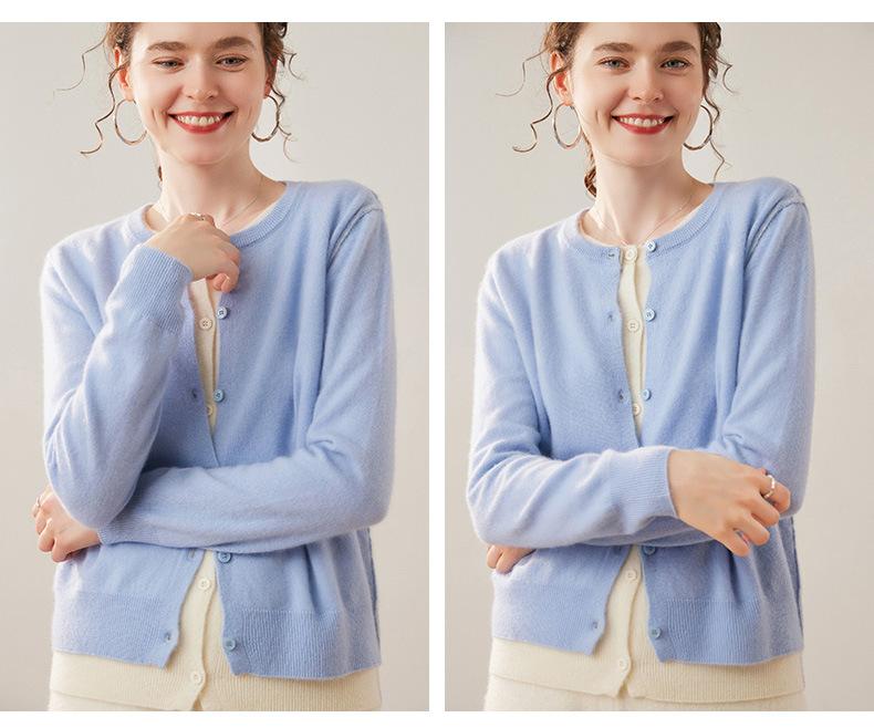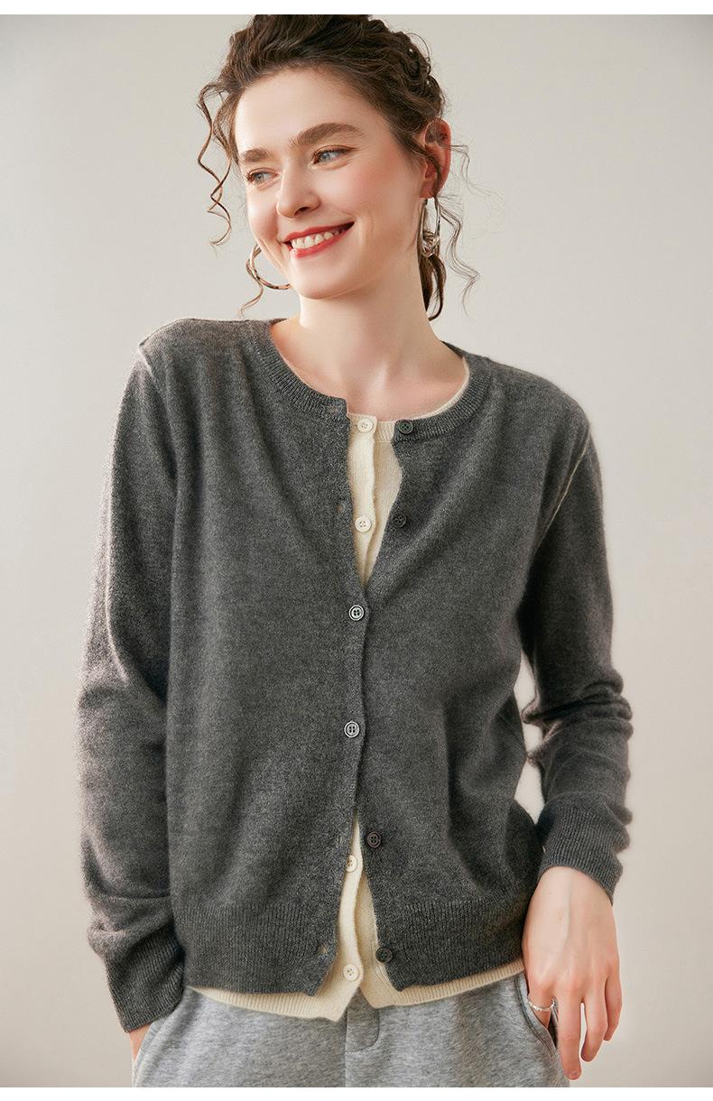 Cárdigan de Cachemira de Punto para Mujer Otoño/Invierno 2025 Nuevo Cuello Redondo Abotonado Moda Bloque de Color Falso Dos Piezas Suéter Exterior