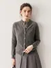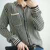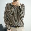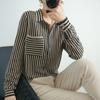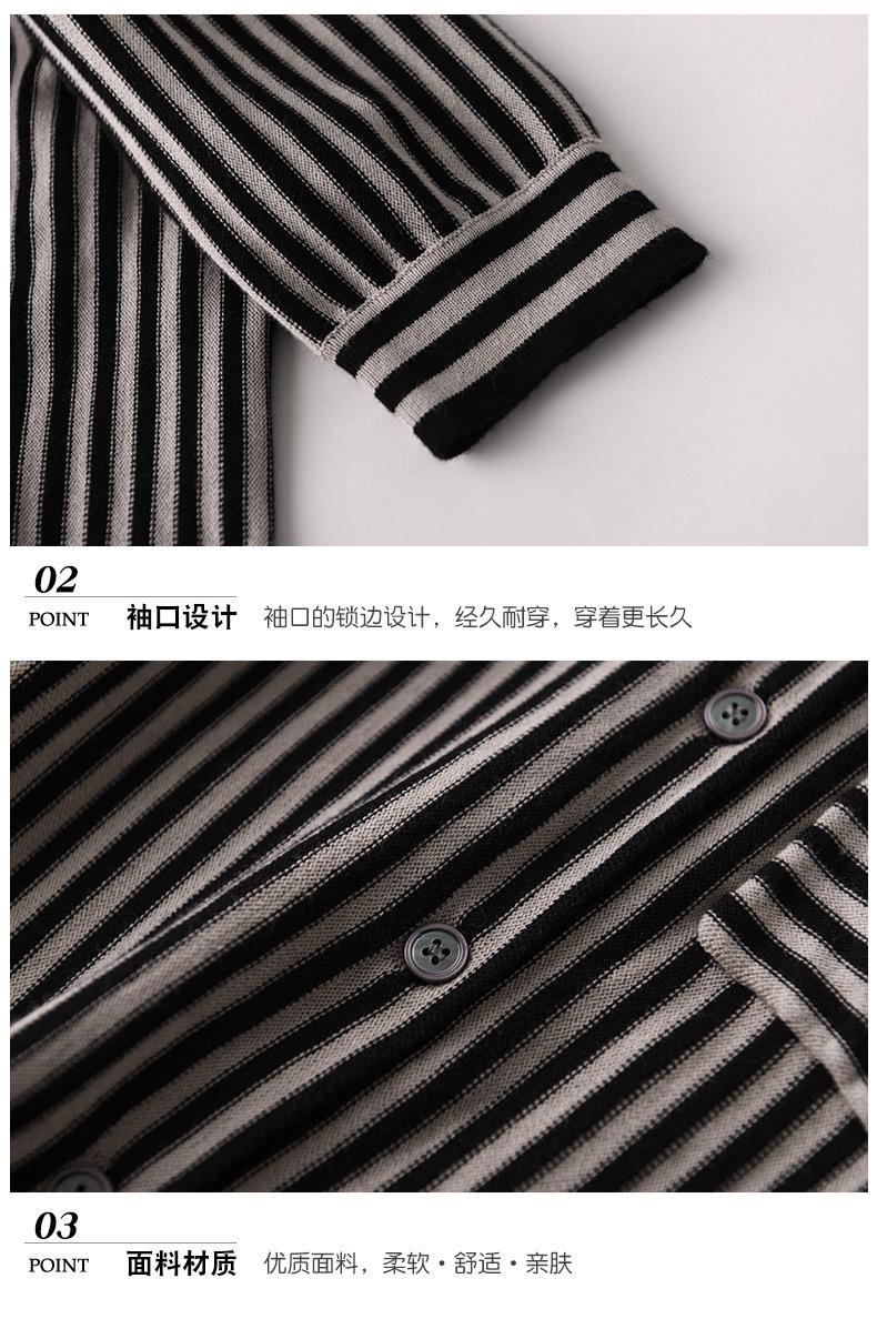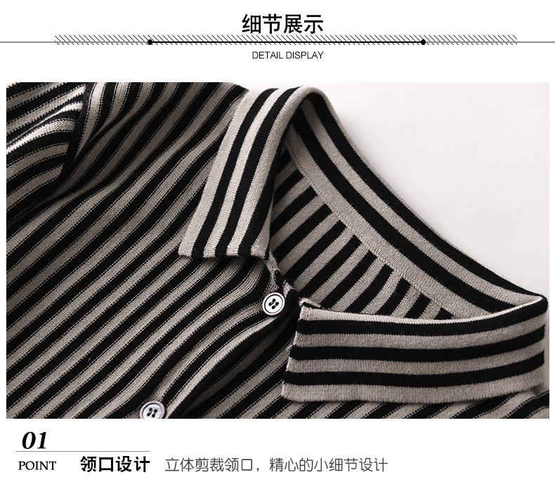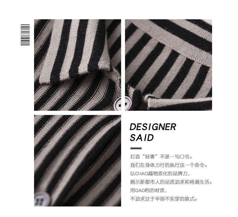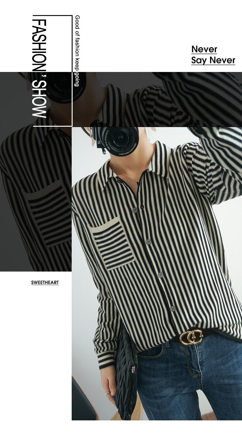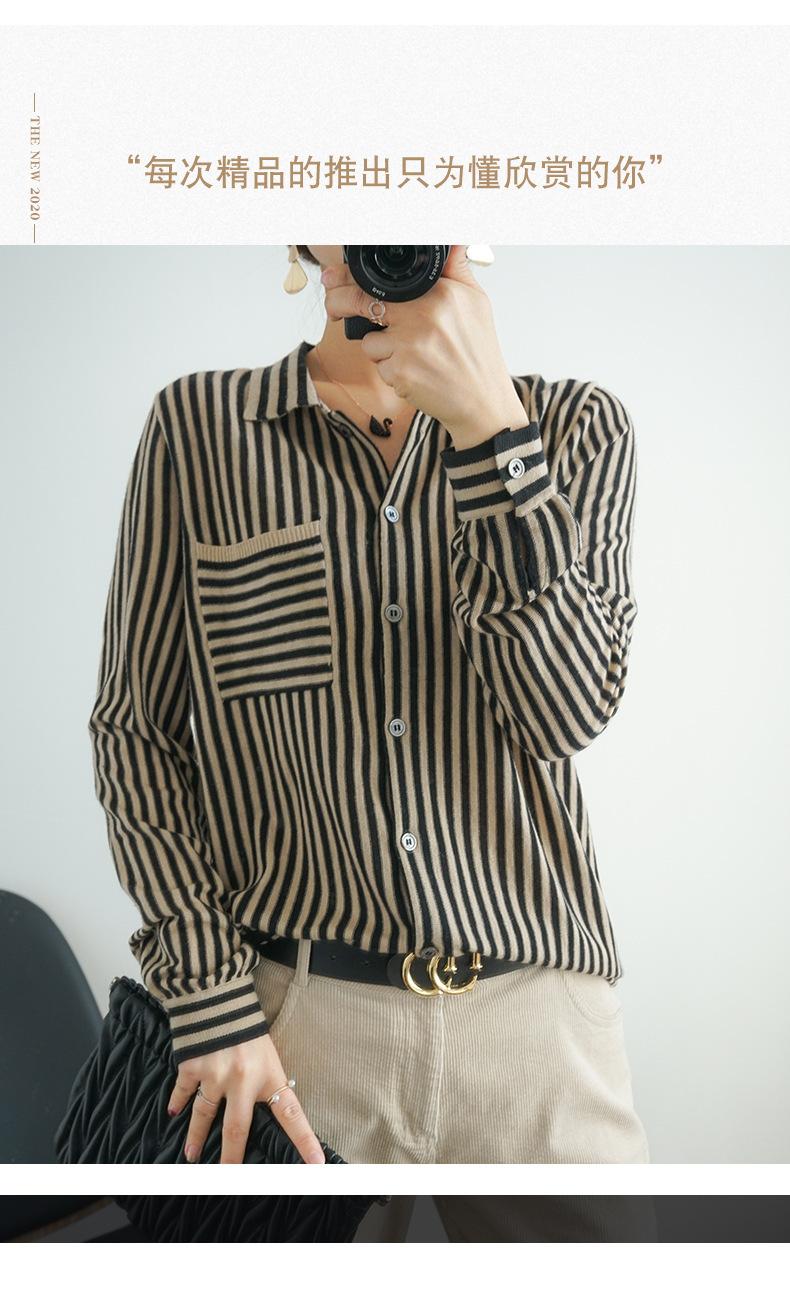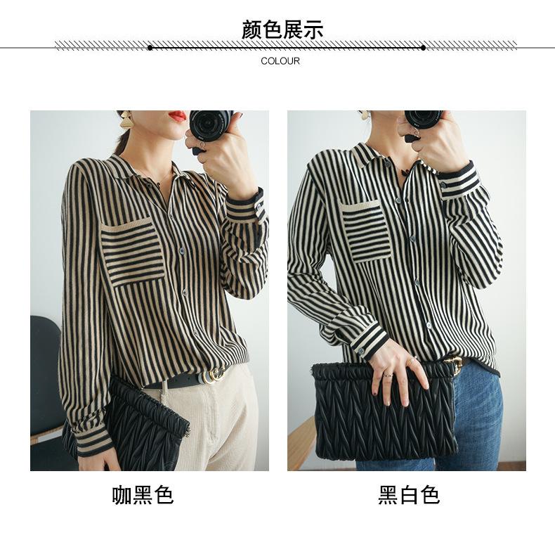 Cárdigan de punto nuevo otoño/invierno 2025 transfronterizo para mujer, camisa de rayas verticales, suéter holgado con cuello polo, solapa, ropa exterior