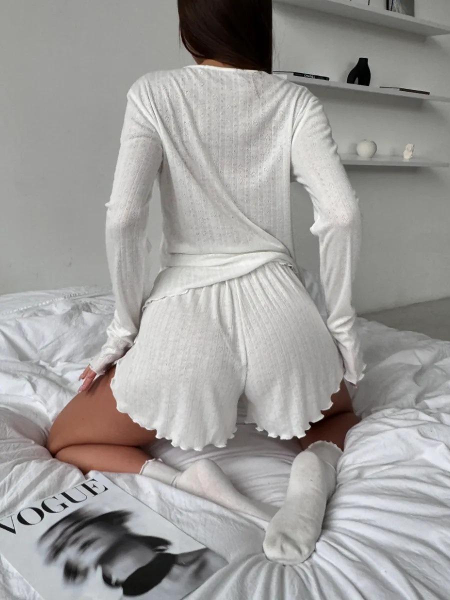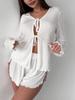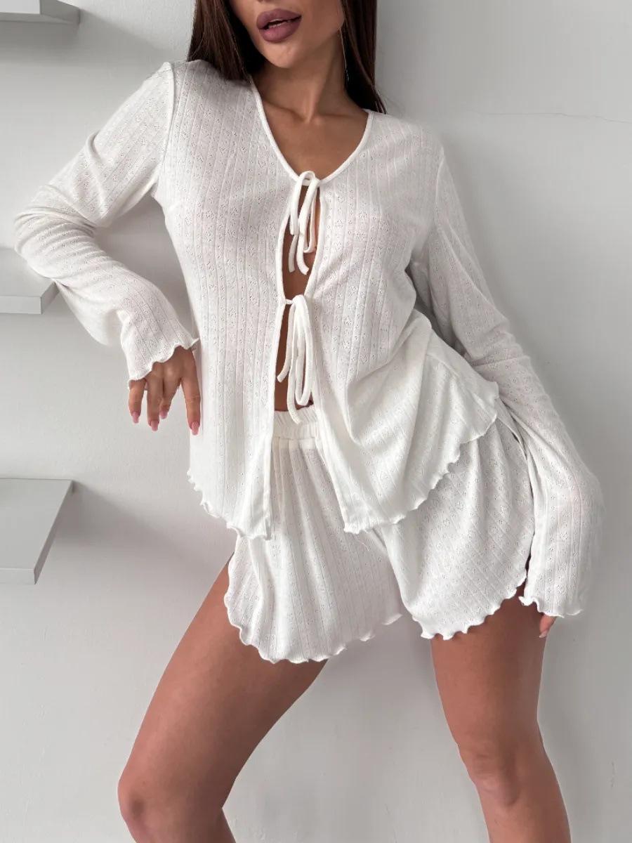 Cardigan europeo y americano transfronterizo primavera 2025 nuevo top de encaje con cordones y volantes conjunto de dos piezas traje casual con temperamento