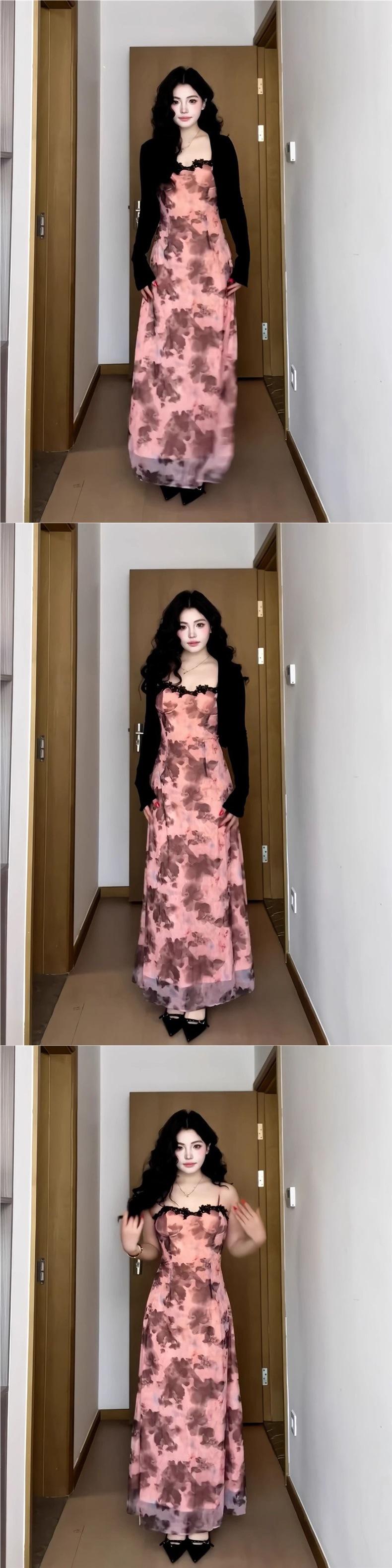 Vestido Coreano Estilo Suave Dulce Floral Tirantes Espagueti Mujer Primavera Verano Nuevo Encaje Recorte Estilo Vacaciones Playa Vestido Largo