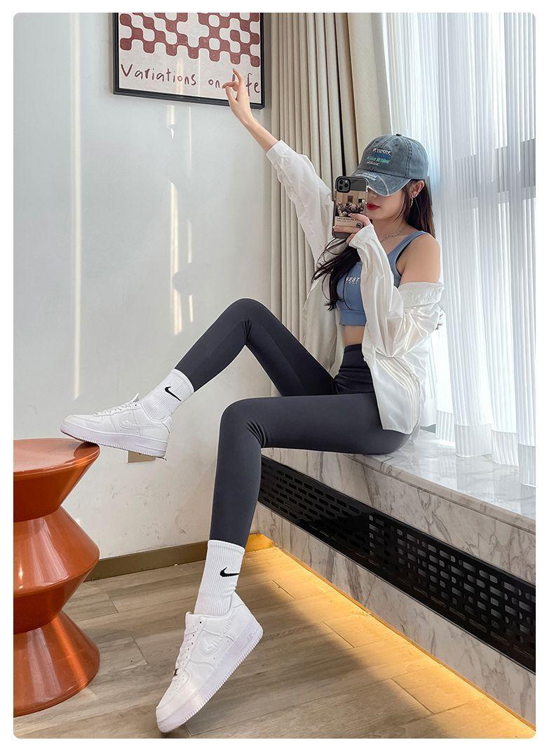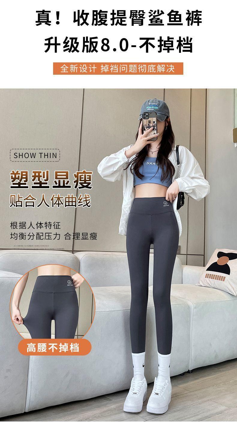 Pantalones de Tiburón As de Espadas para Mujer Primavera y Verano Ropa Exterior Delgada Mate Cintura Alta Control de Abdomen Fondo Yoga Deportes Mallas Barbie