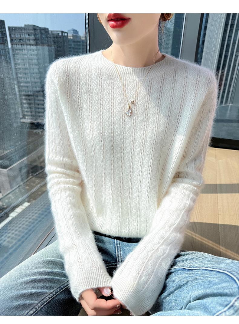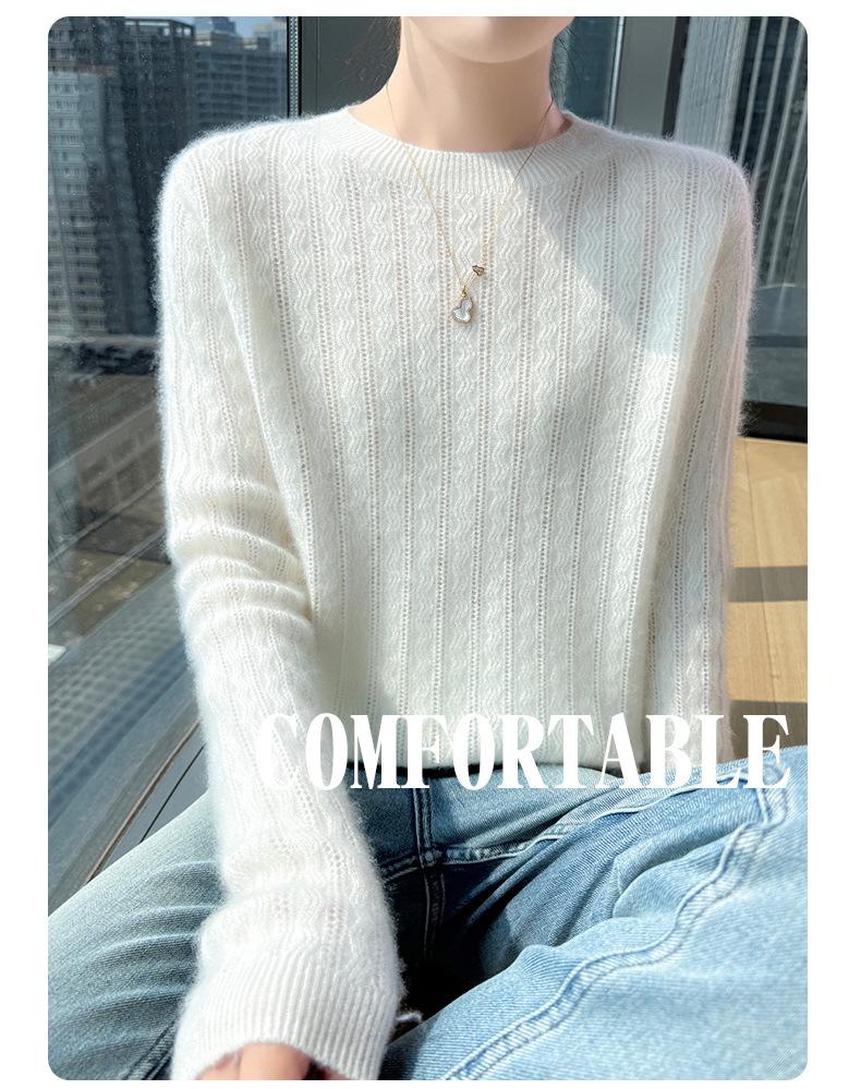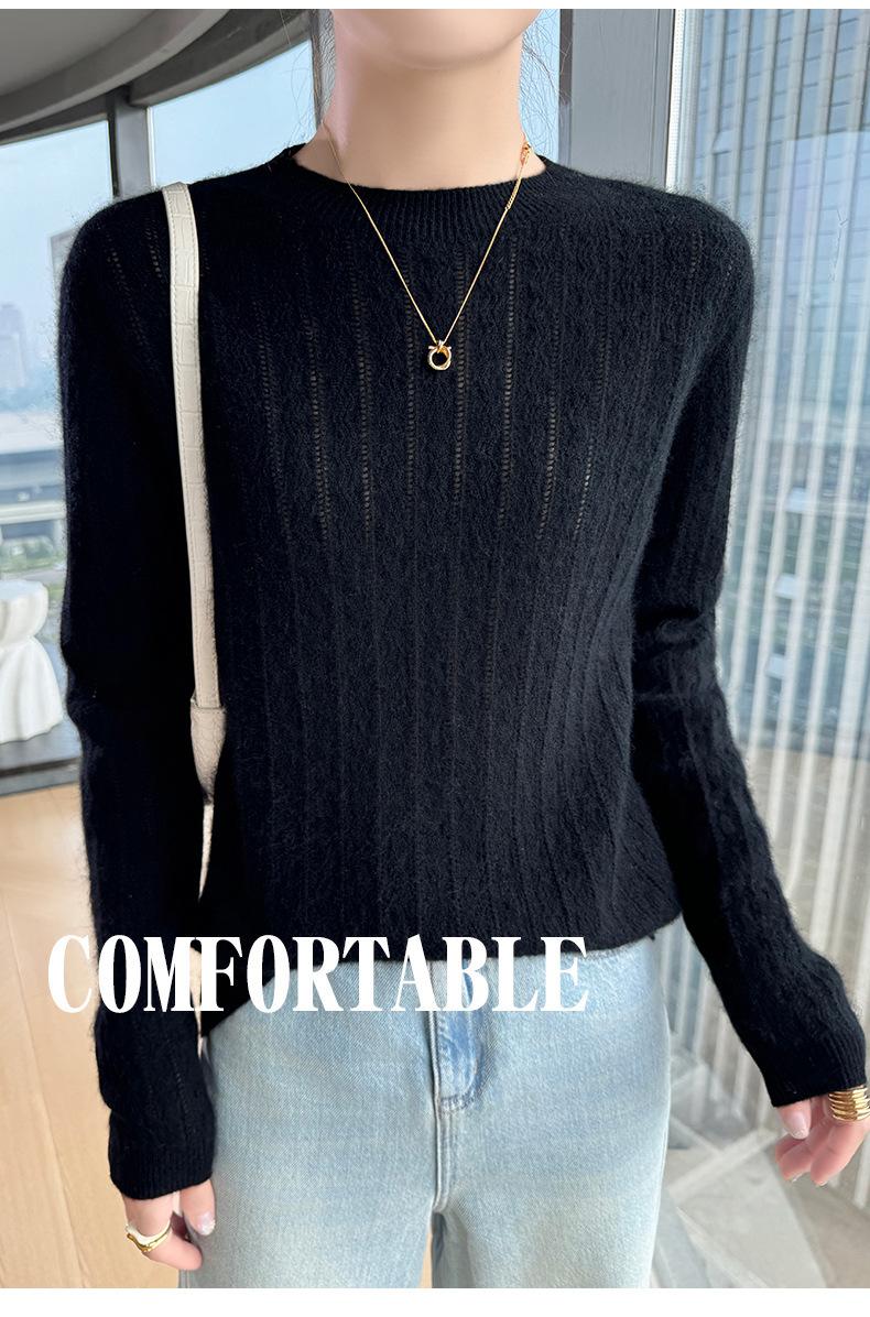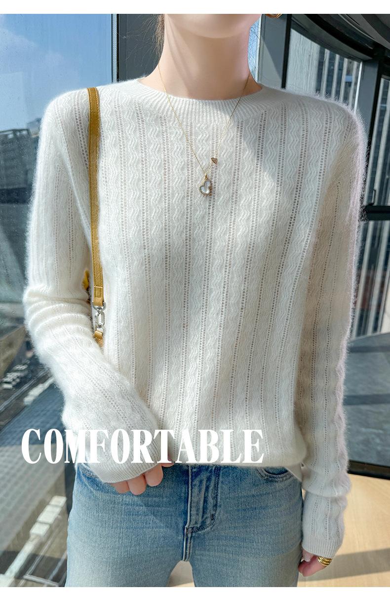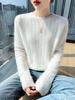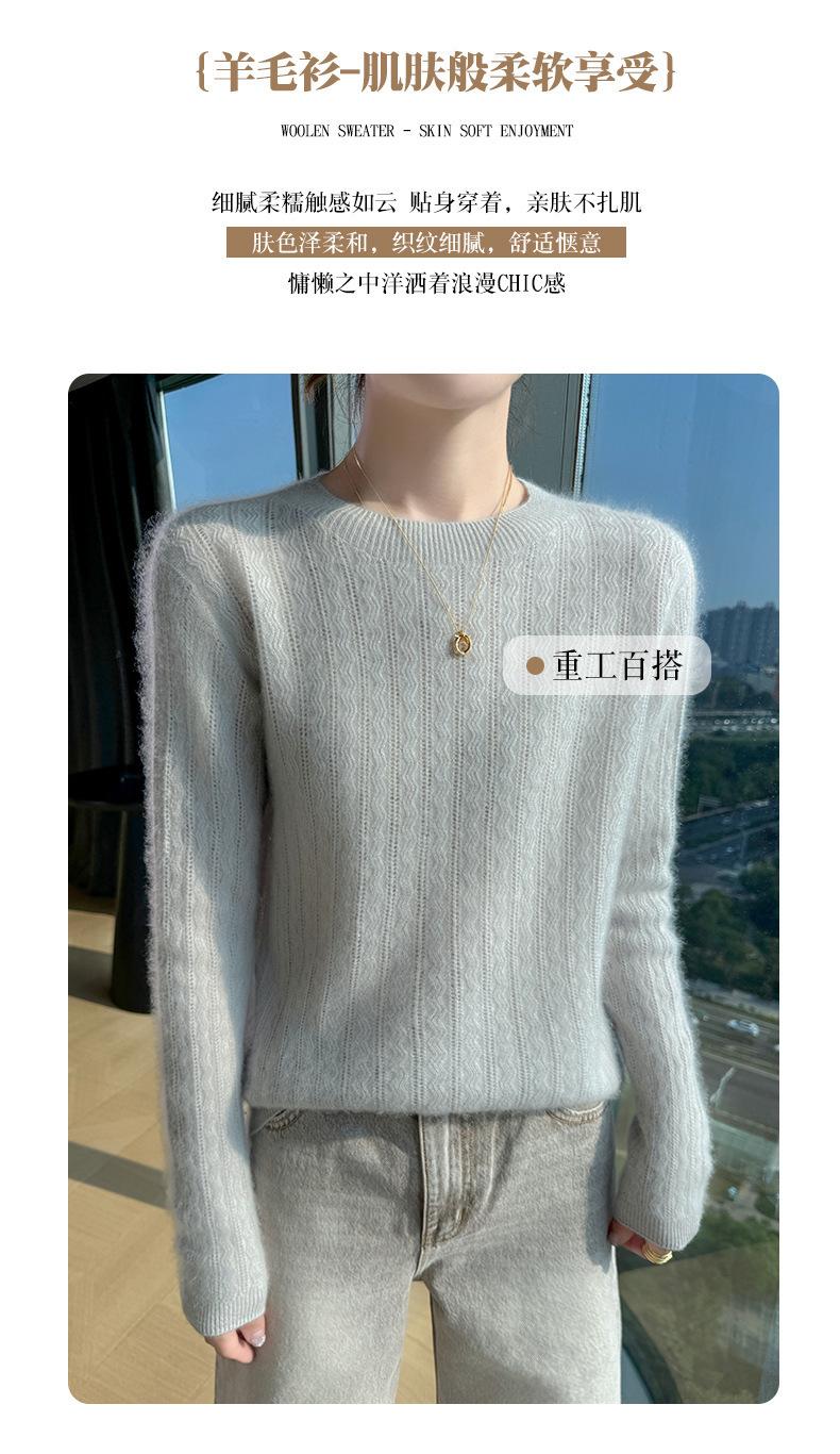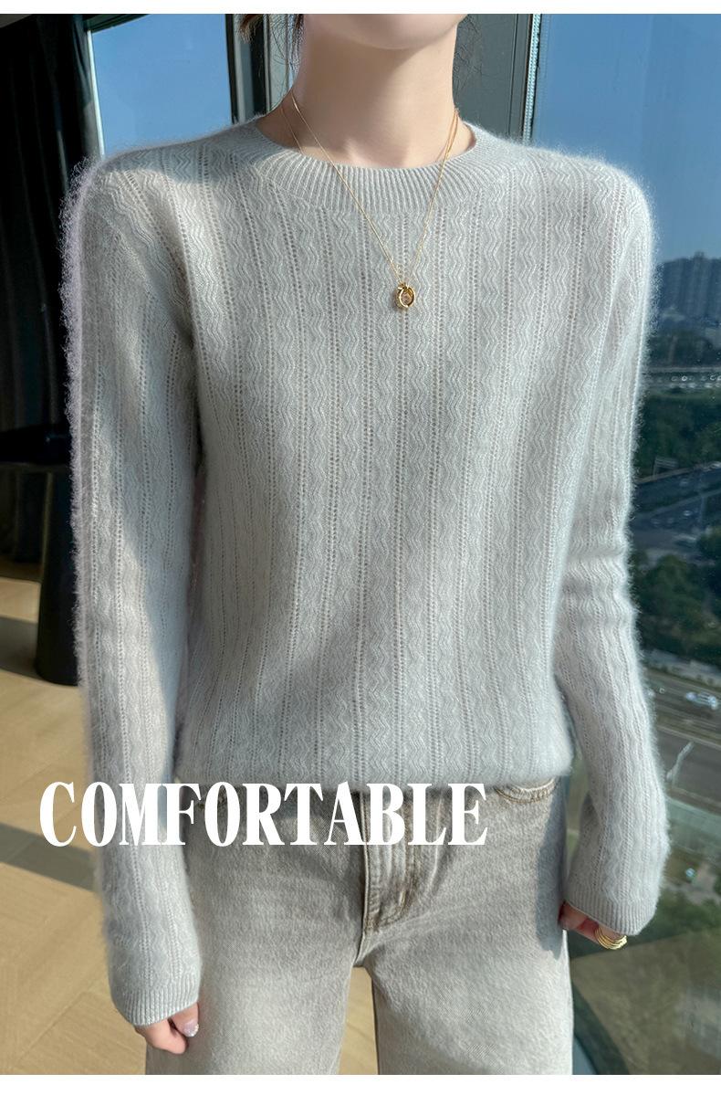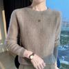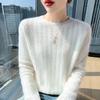 Nuevo Suéter de Cuello Redondo Otoño/Invierno para Mujer Ajustado Jersey 100% Lana Tejido Calado Base Suave Versátil Moda