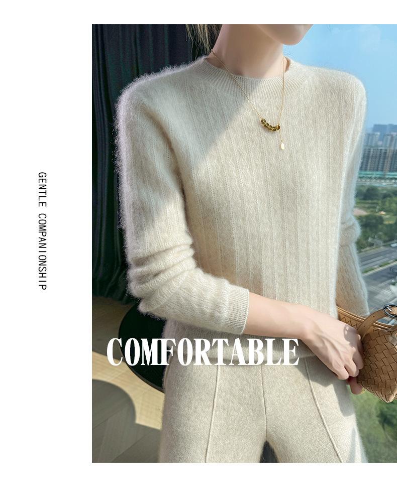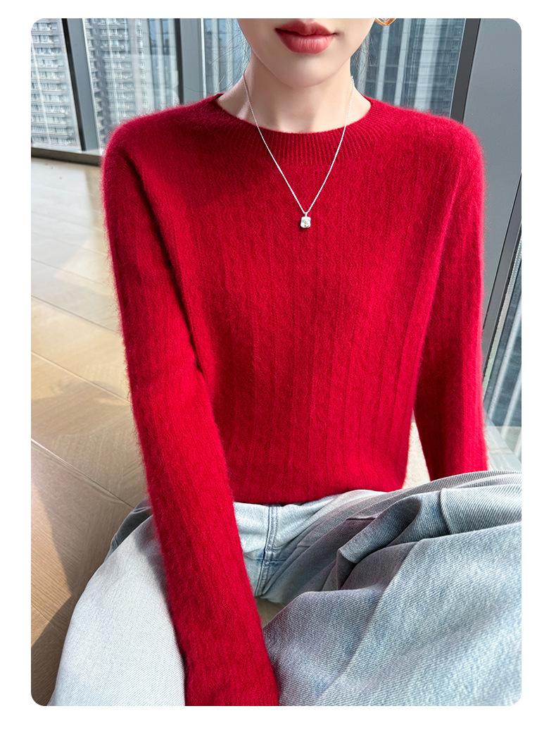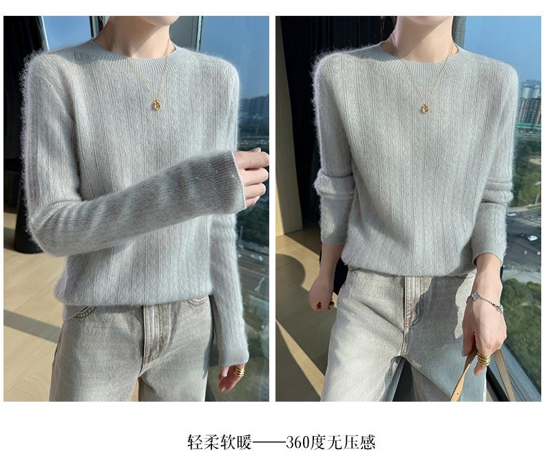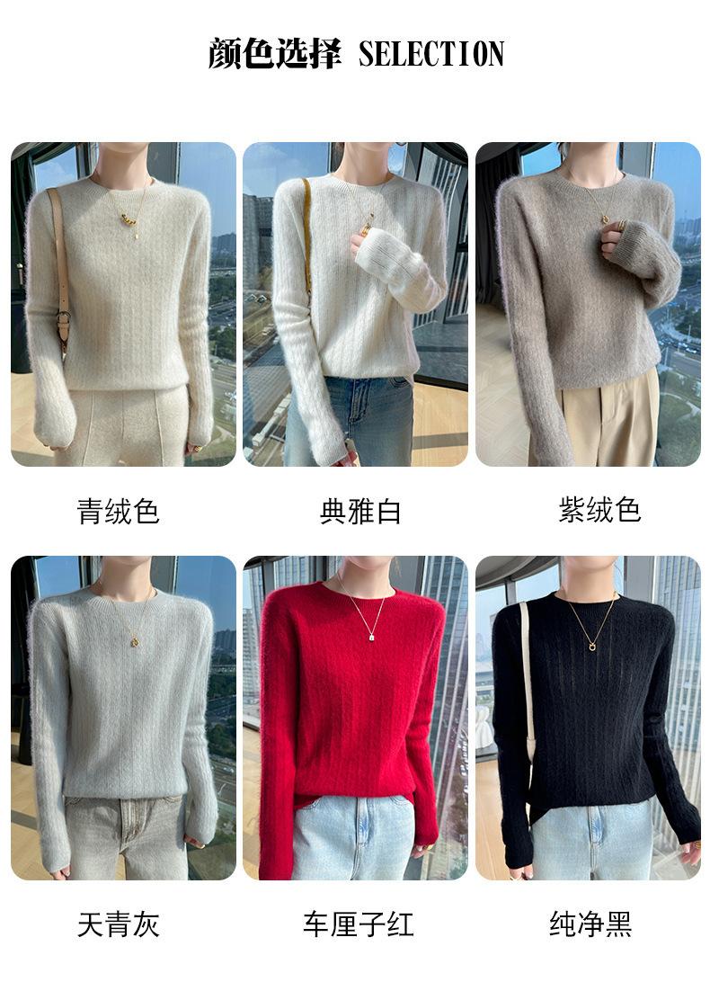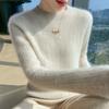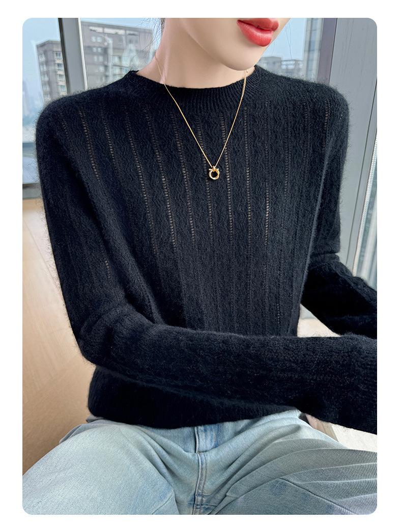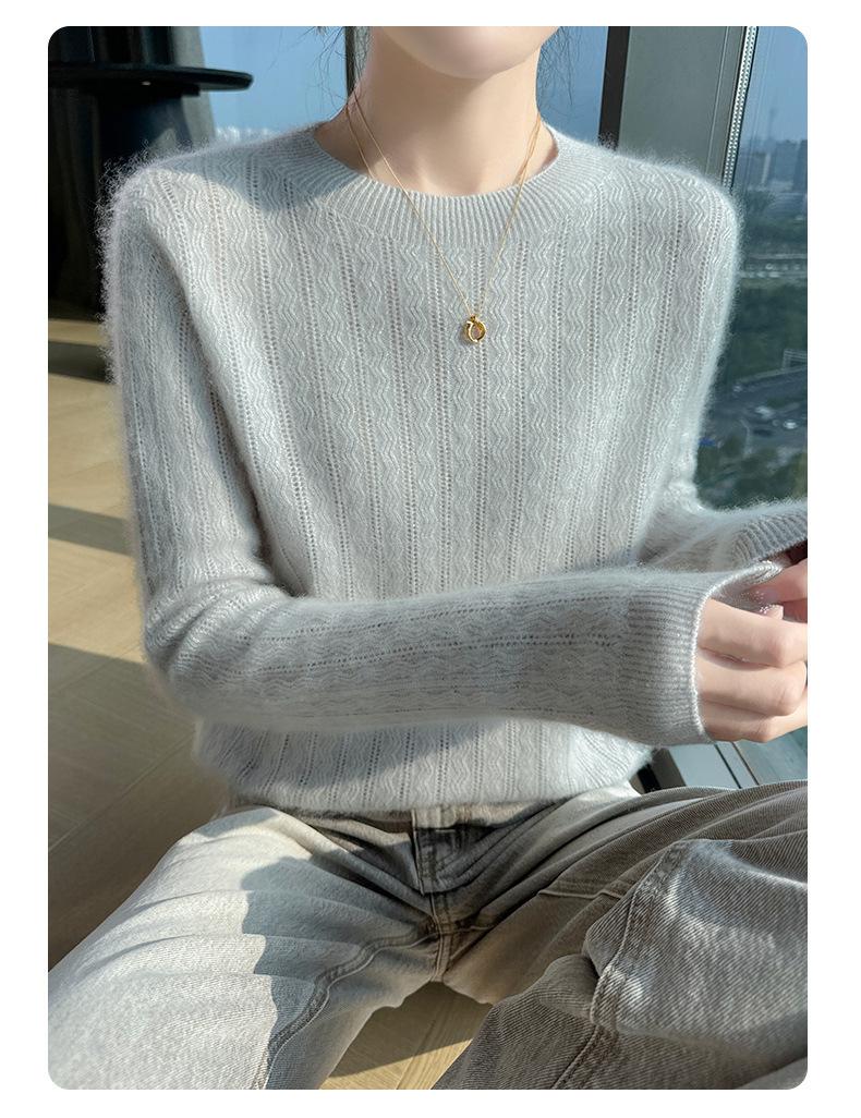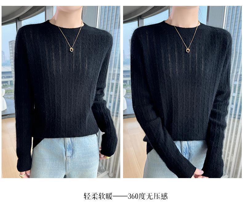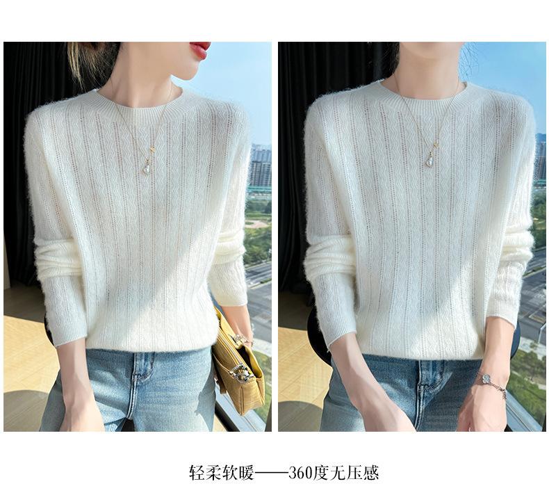 Nuevo Suéter de Cuello Redondo Otoño/Invierno para Mujer Ajustado Jersey 100% Lana Tejido Calado Base Suave Versátil Moda