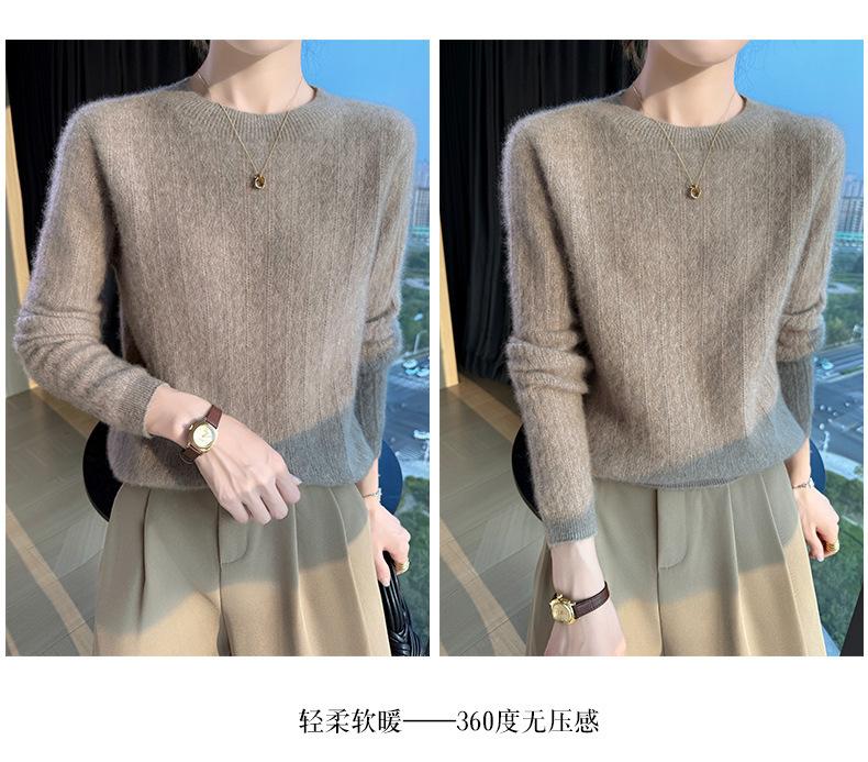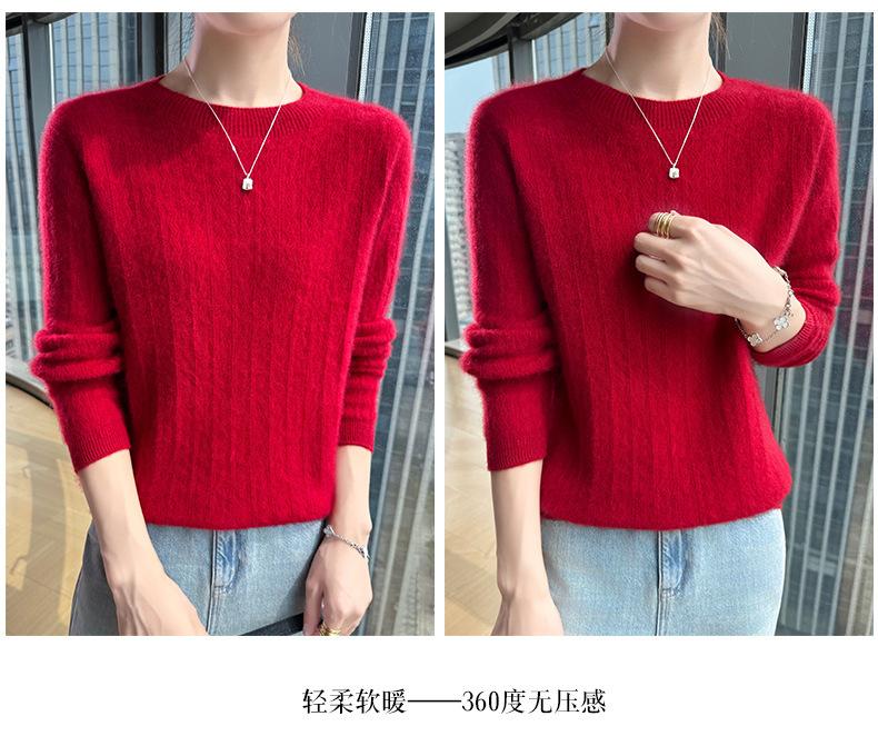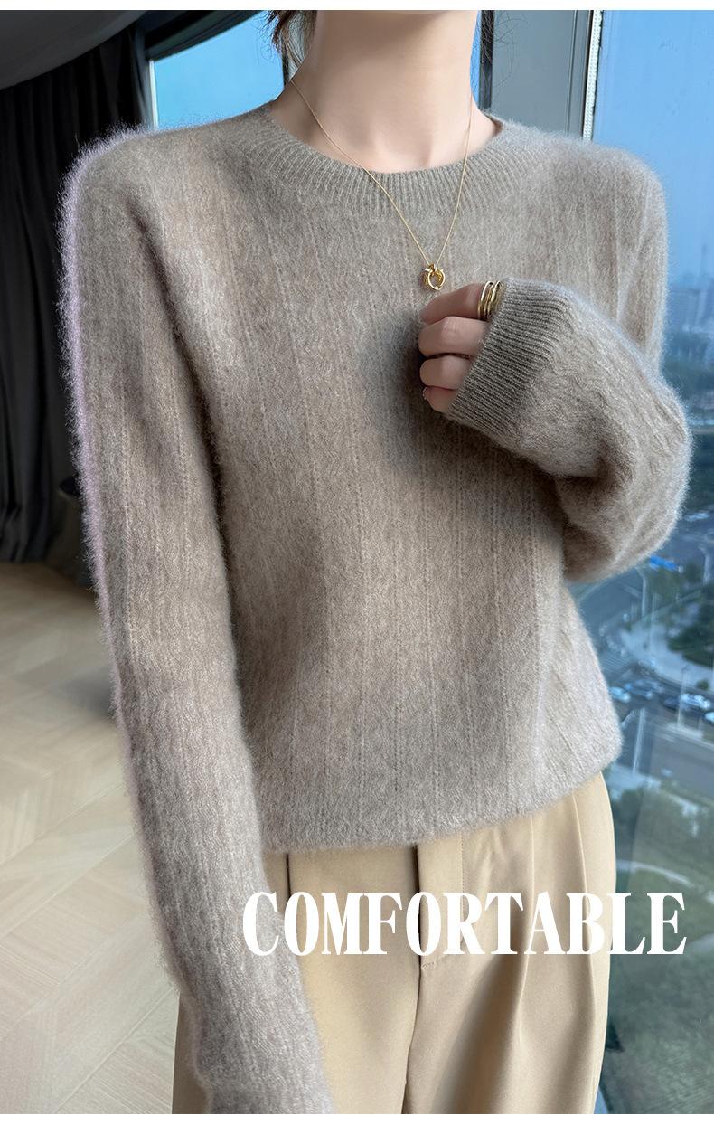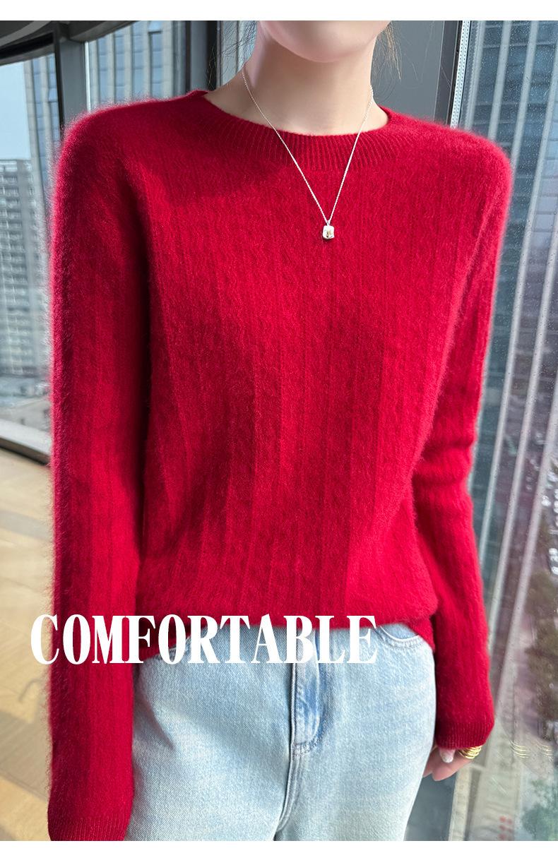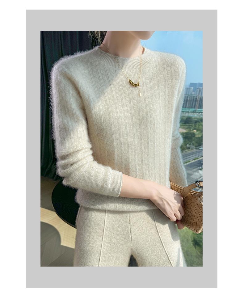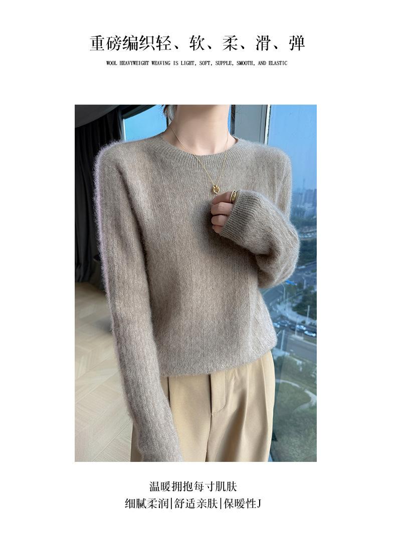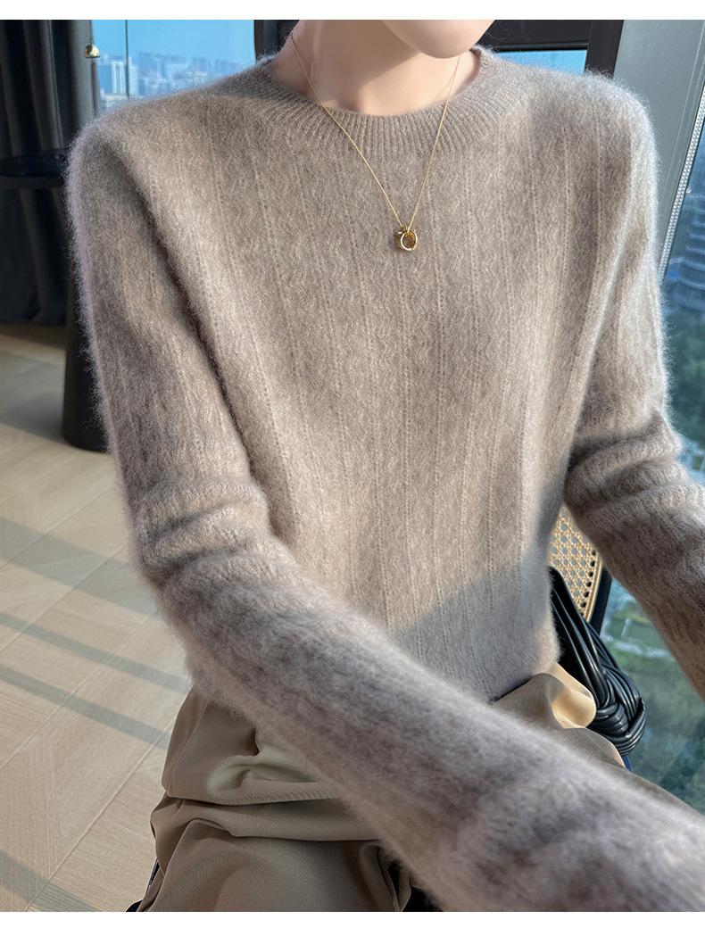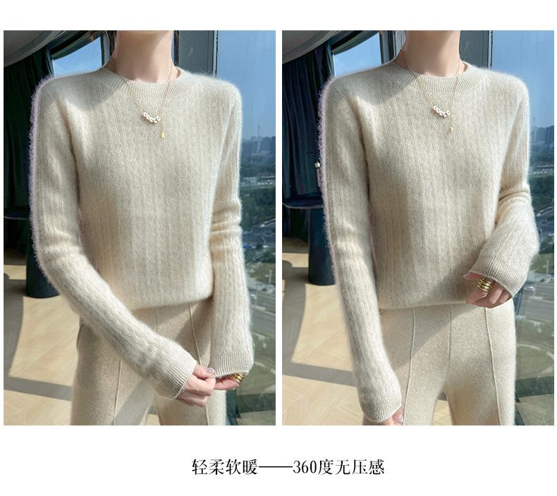 Nuevo Suéter de Cuello Redondo Otoño/Invierno para Mujer Ajustado Jersey 100% Lana Tejido Calado Base Suave Versátil Moda