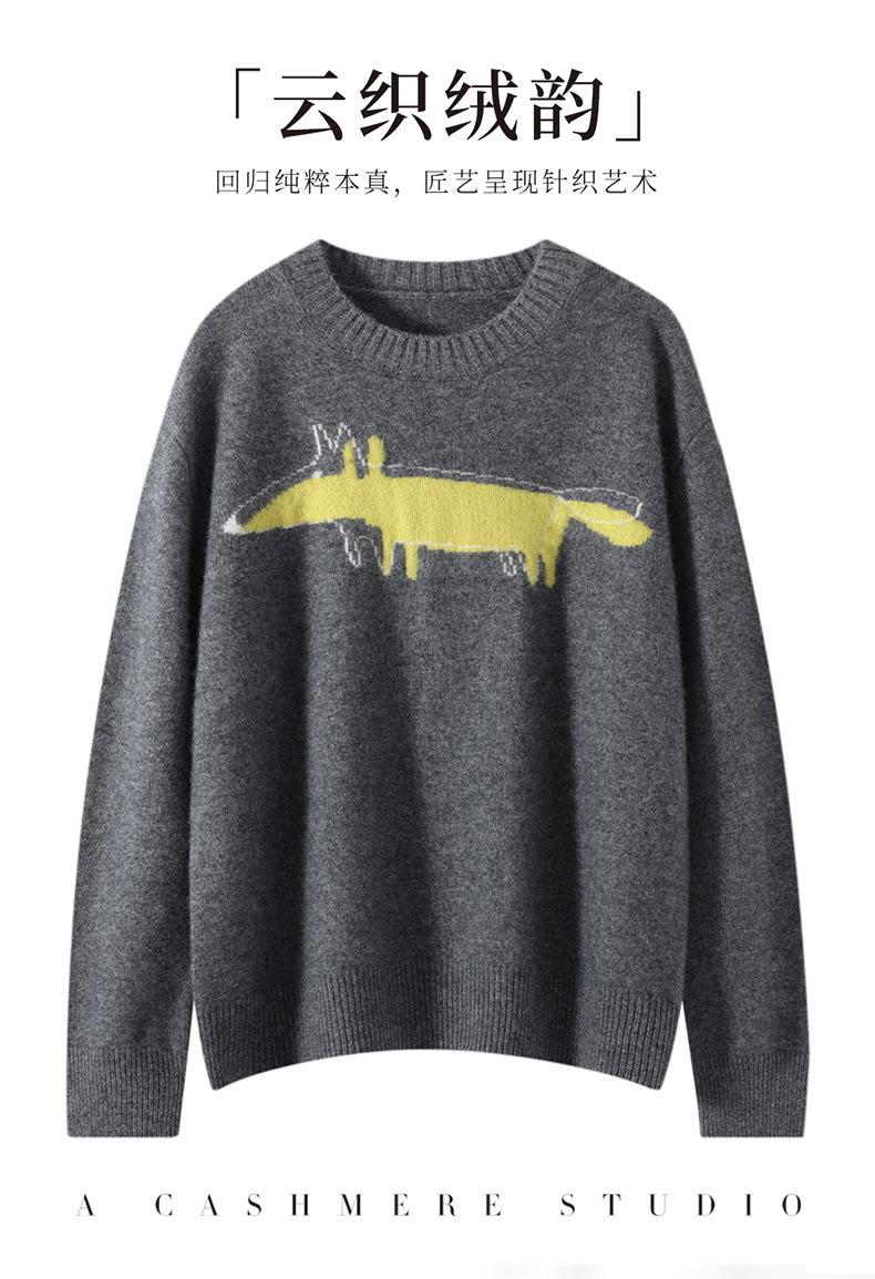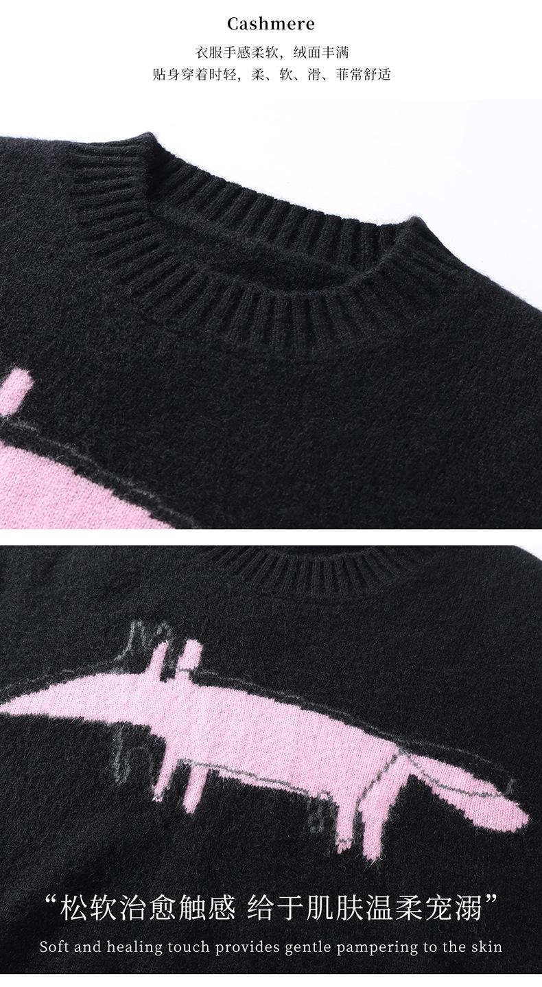 Otoño/Invierno 2025 Nuevo Suéter Grueso Holgado Adelgazante de Cuello Redondo Tejido de Cachemira Camisa Base Top Retro para Mujer