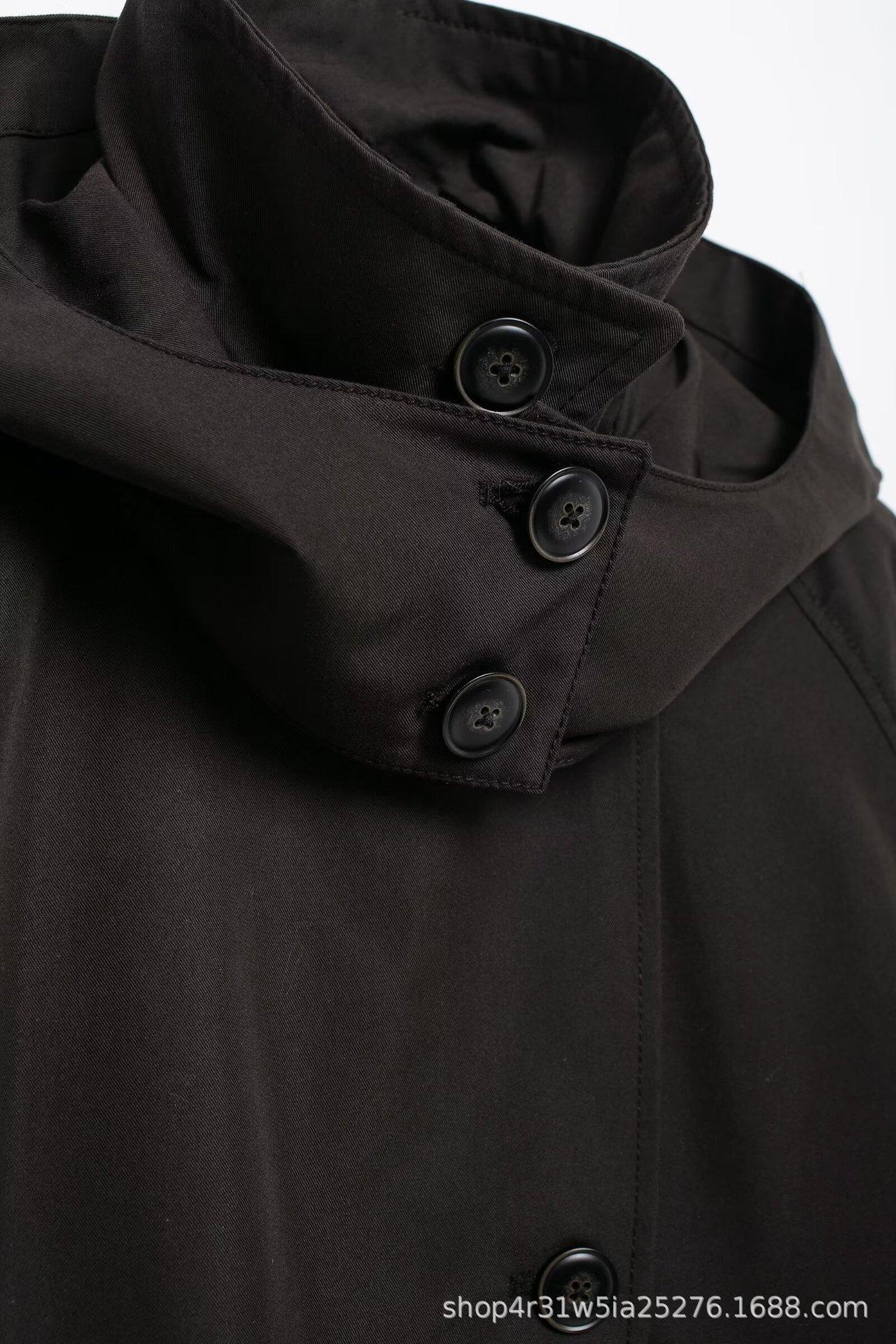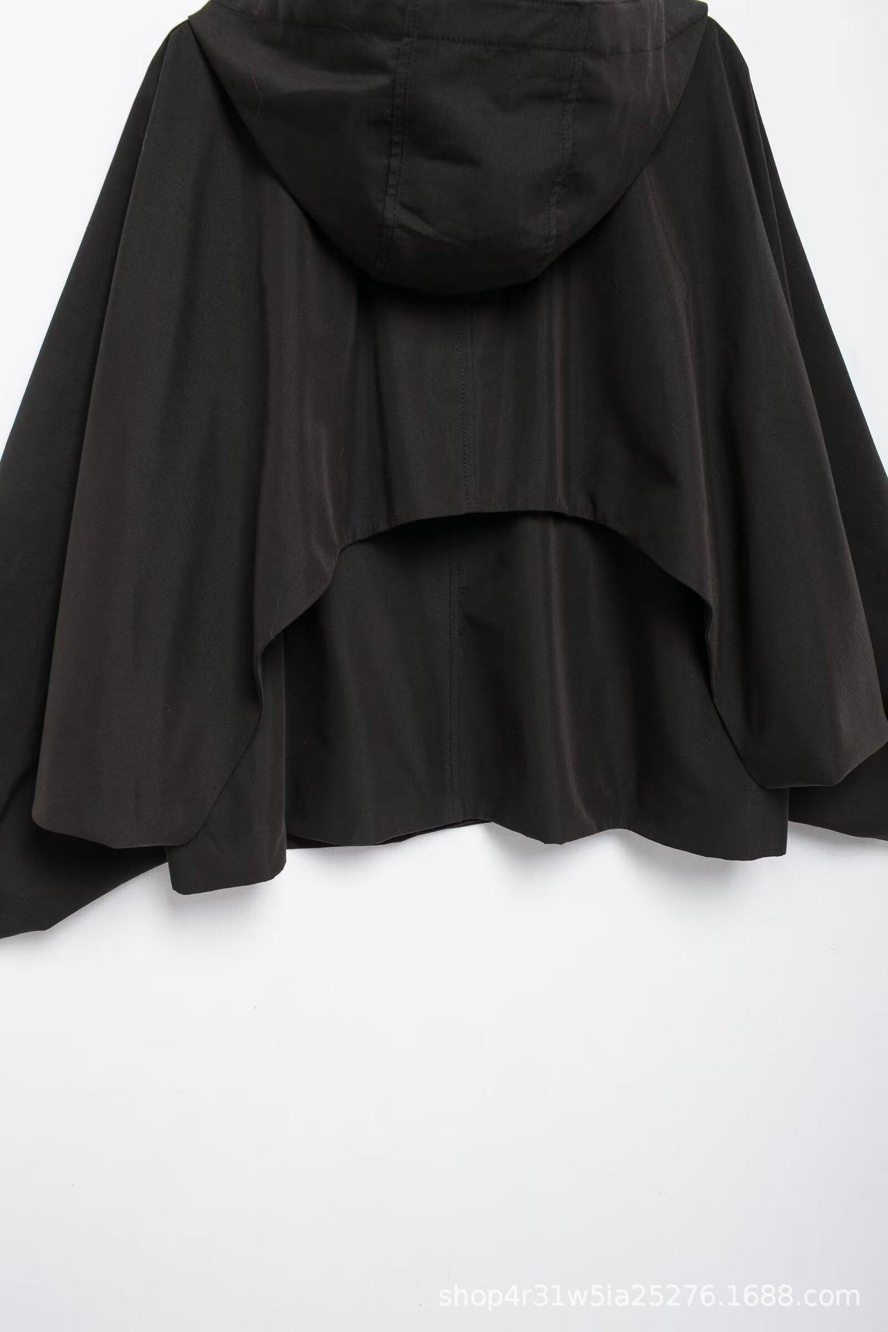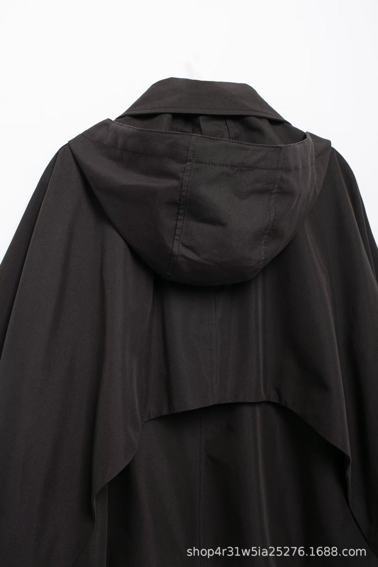 Capa corta cortavientos con capucha desmontable de doble botonadura nueva para otoño e invierno 2024 al por mayor transfronterizo de Europa y Estados Unidos
