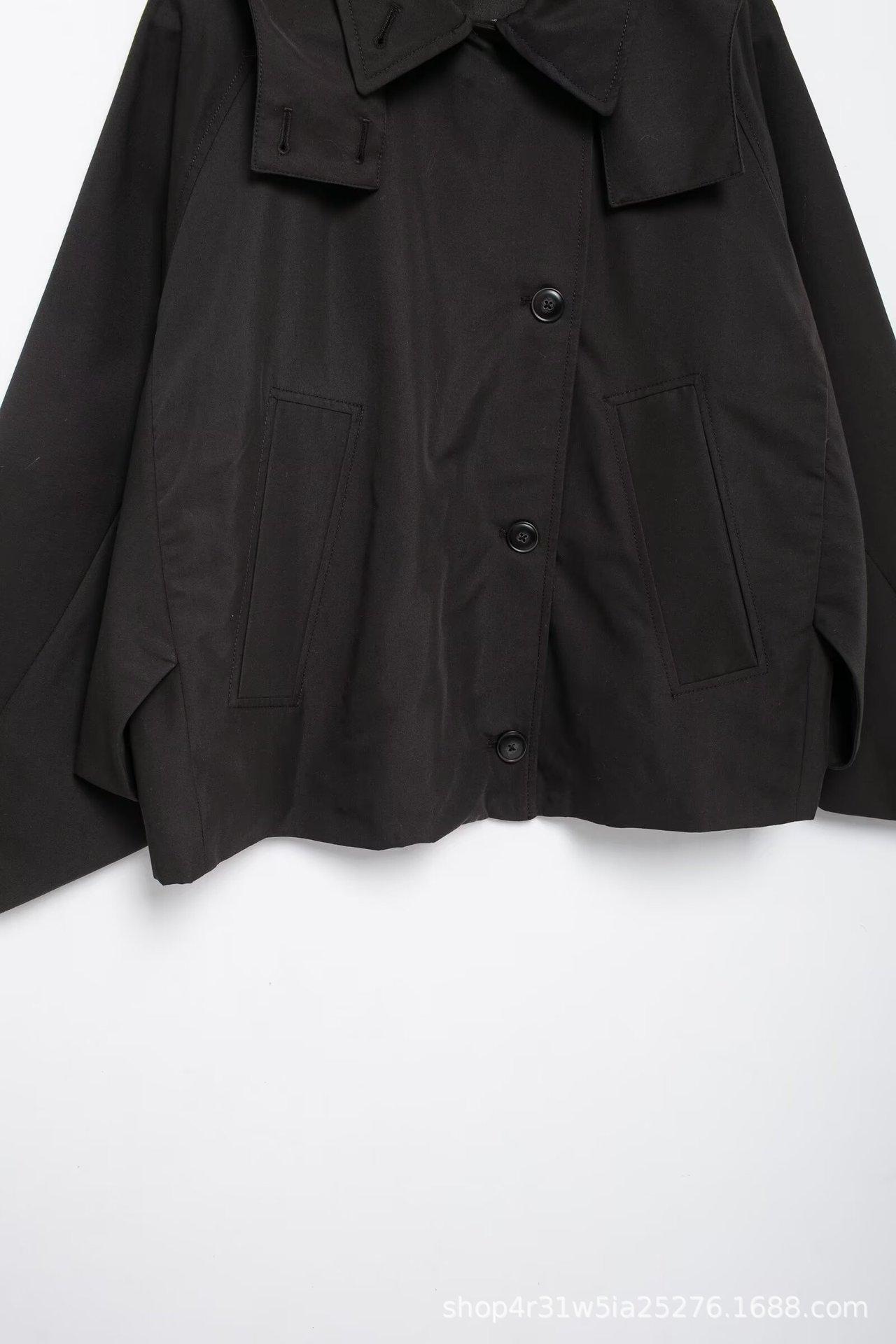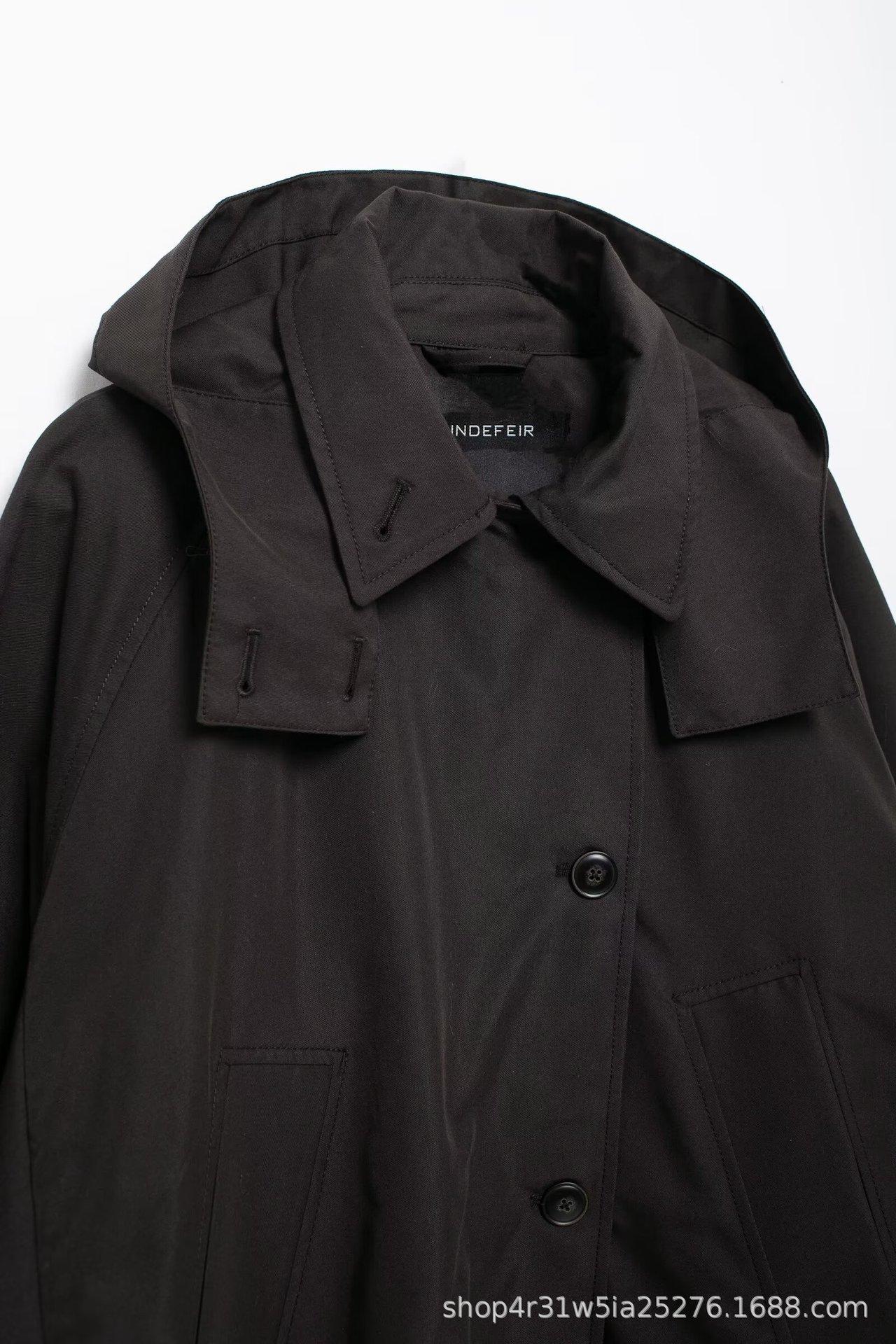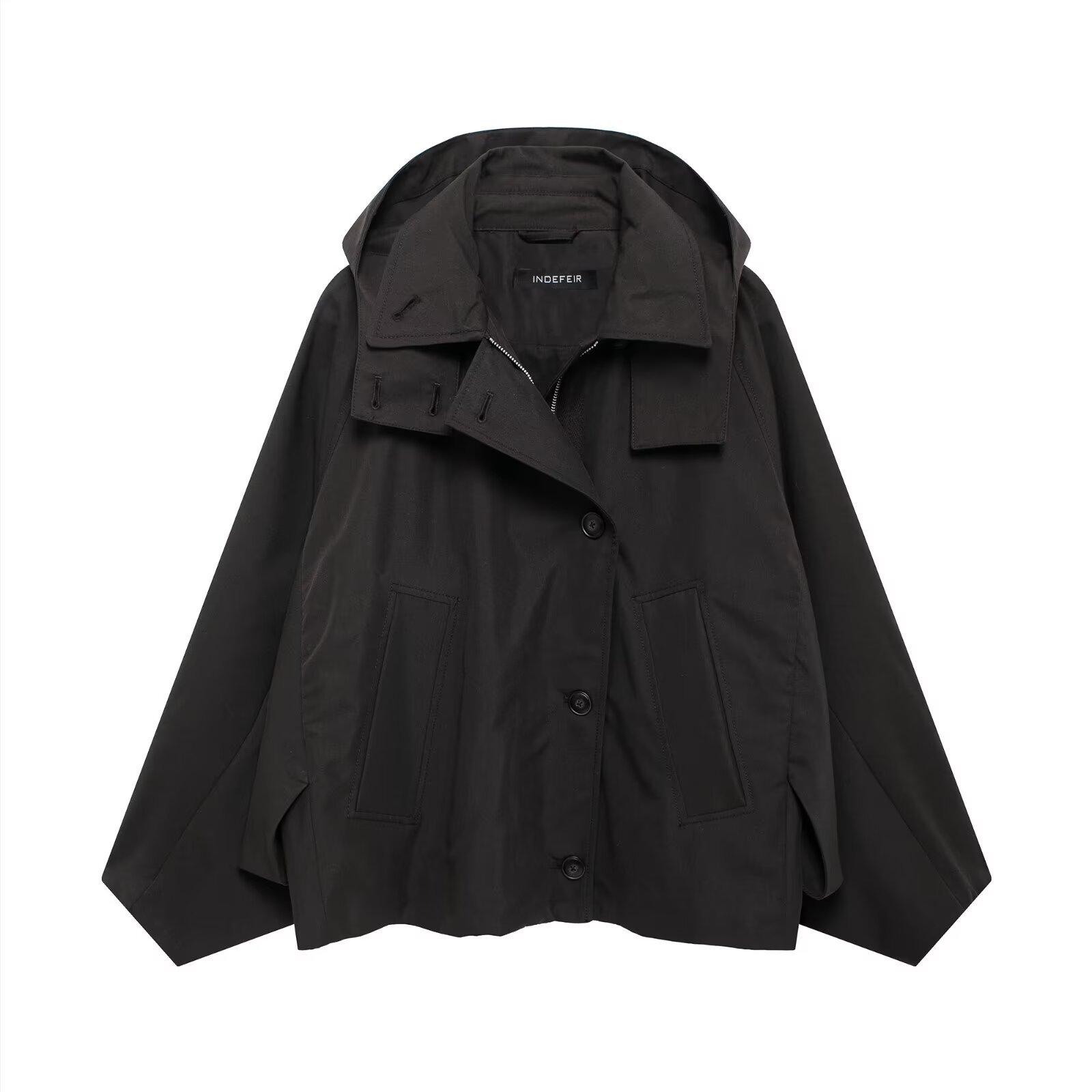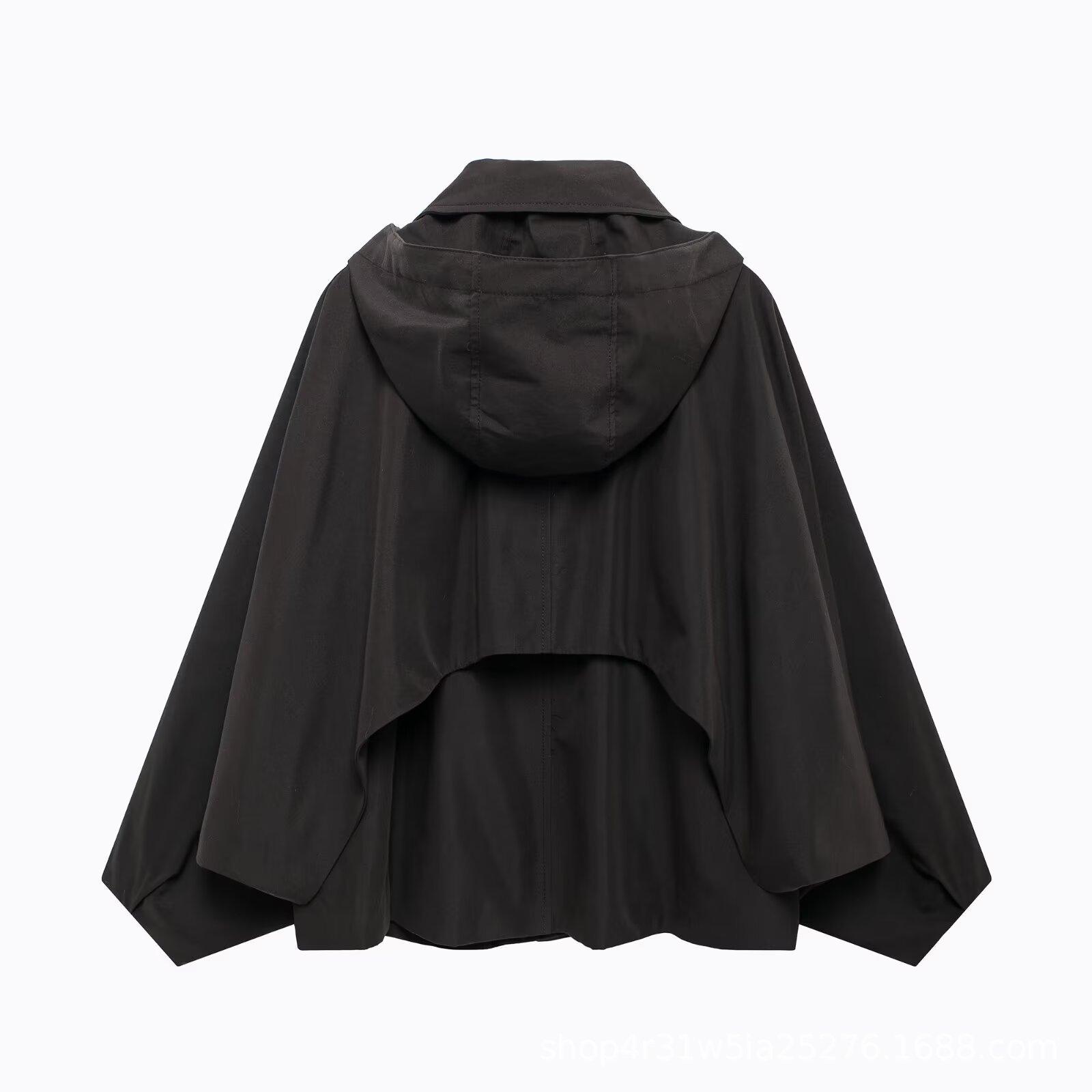 Capa corta cortavientos con capucha desmontable de doble botonadura nueva para otoño e invierno 2024 al por mayor transfronterizo de Europa y Estados Unidos