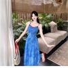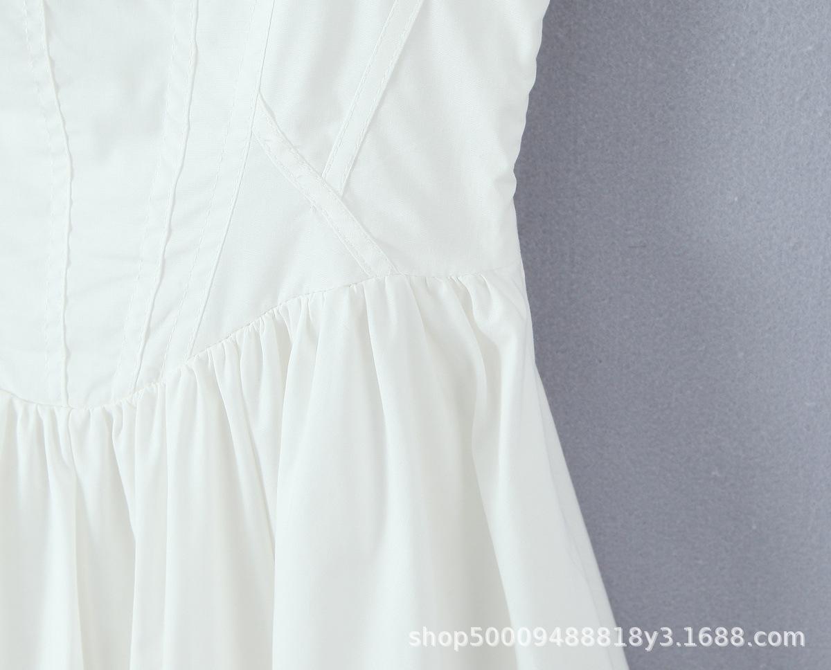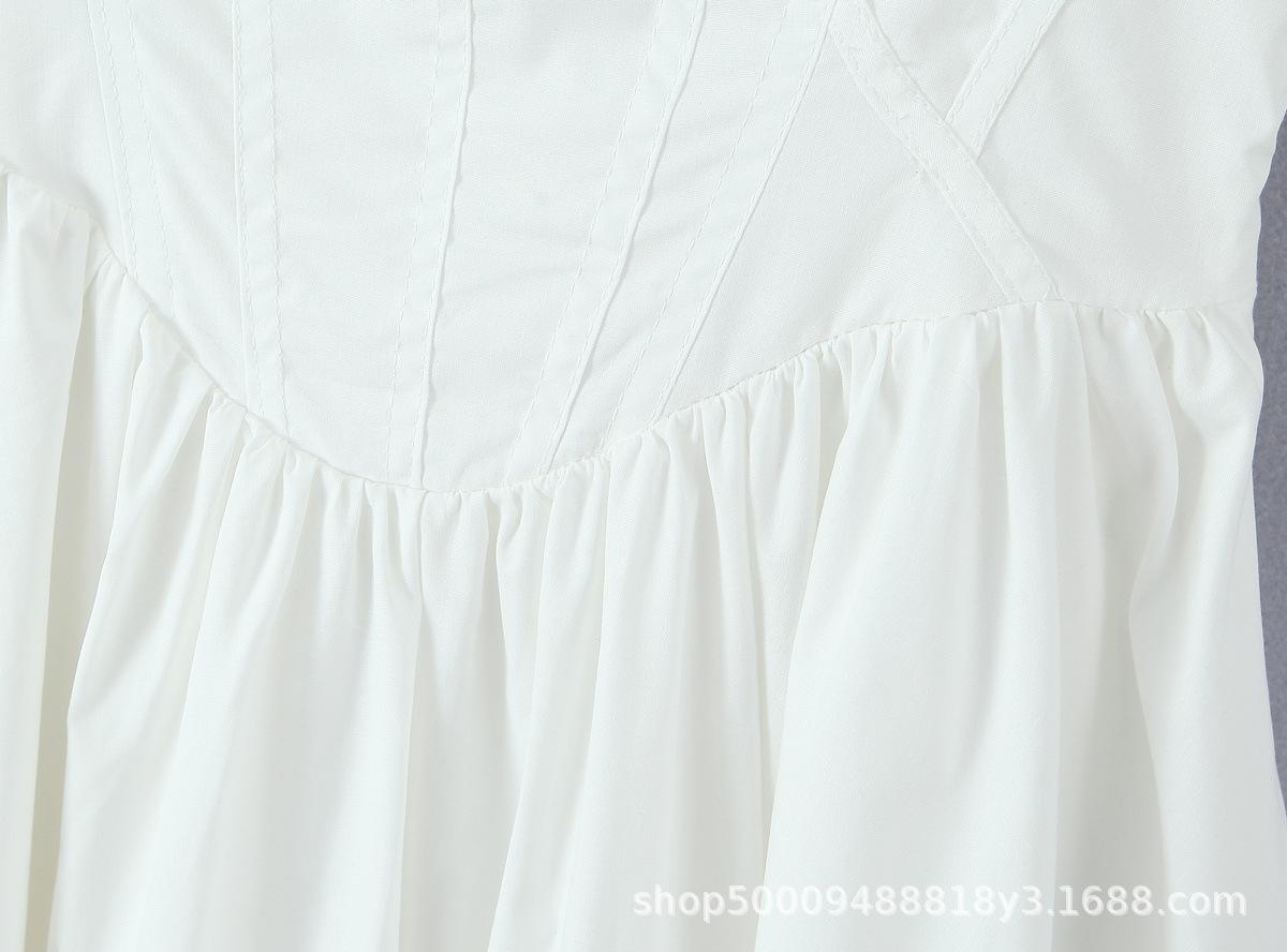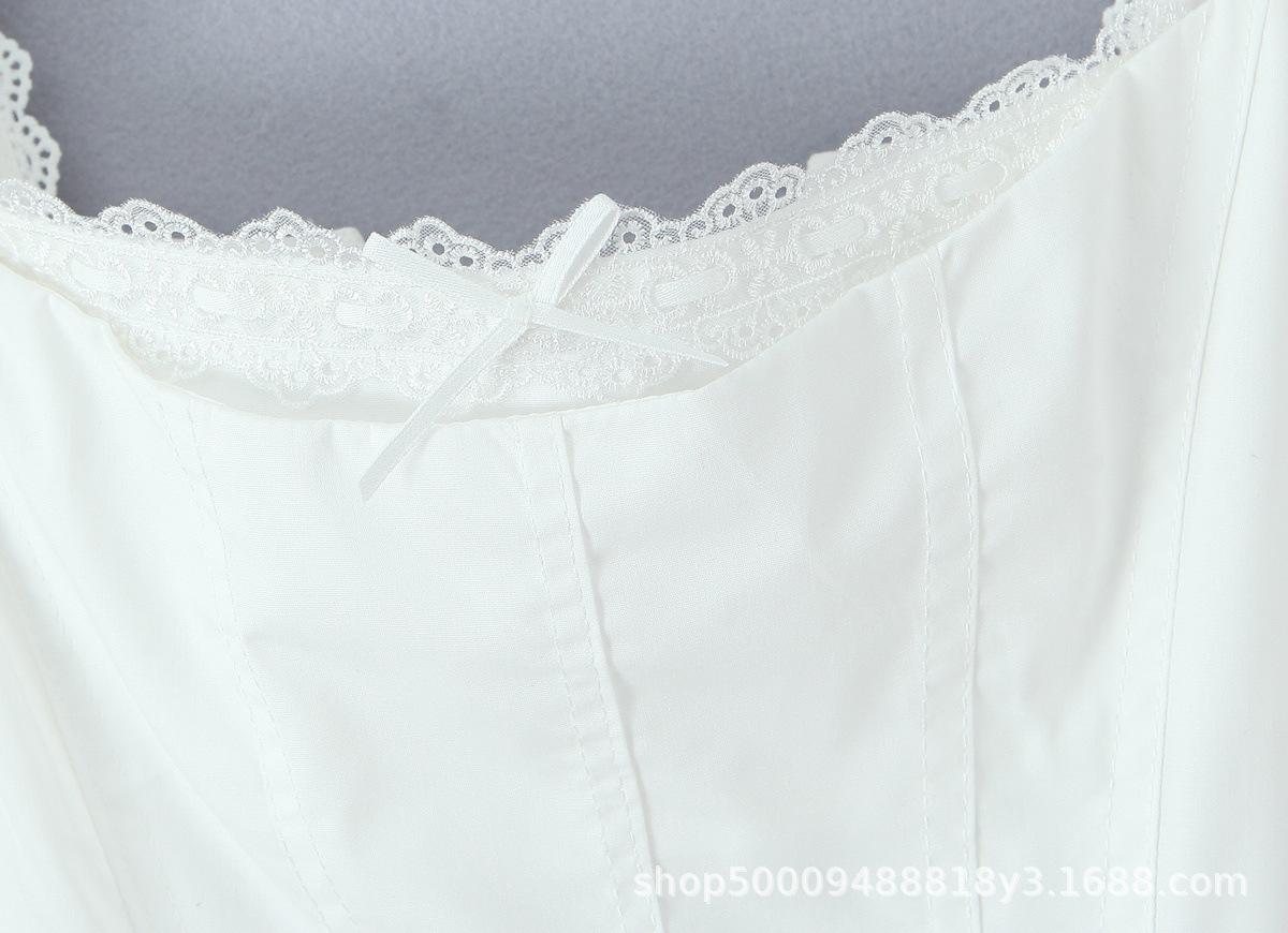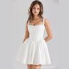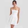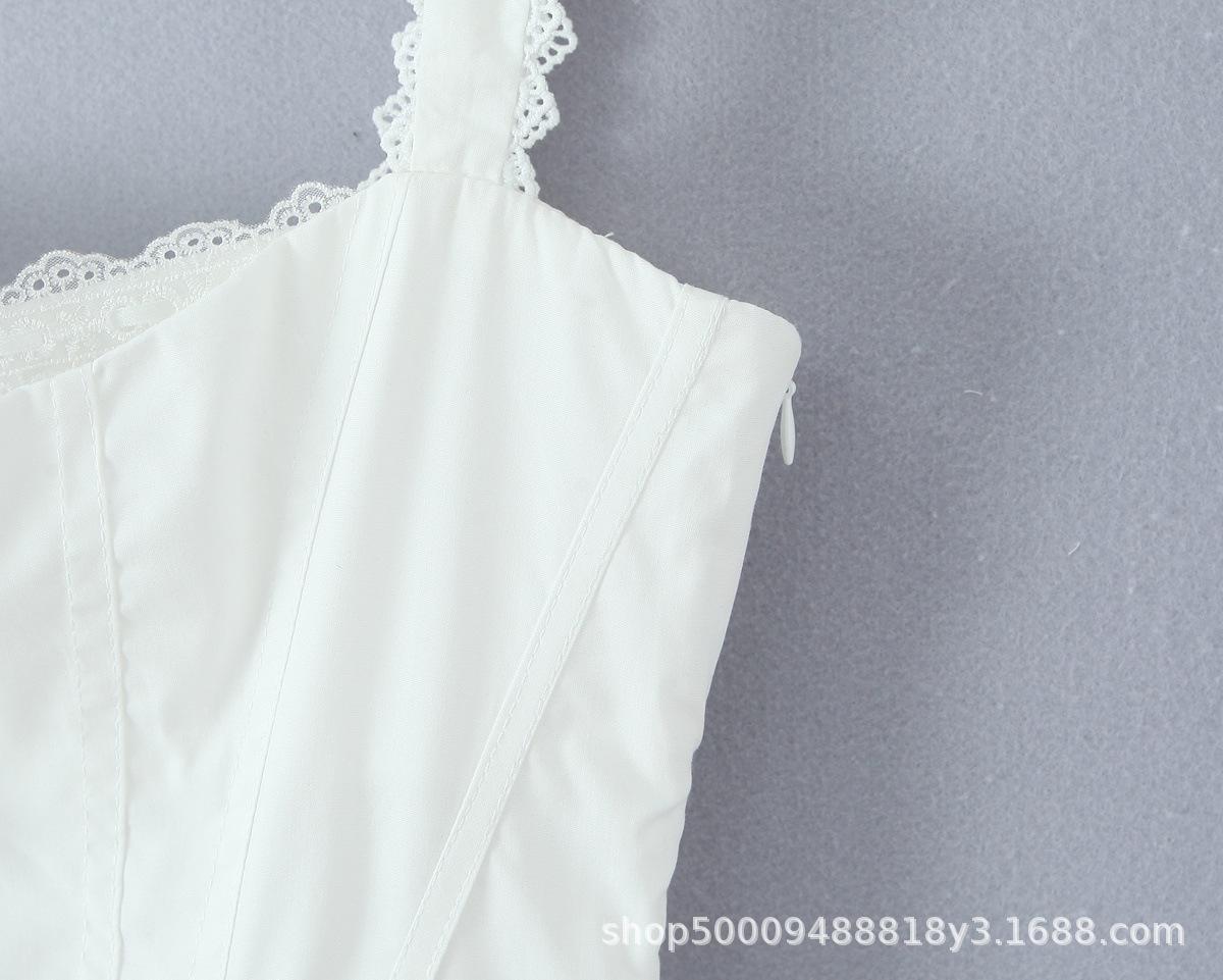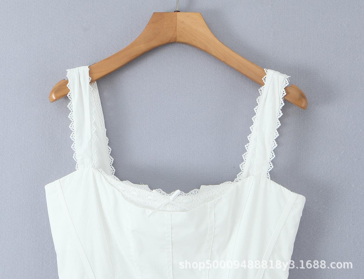 Casa Mismo Estilo Francés Deseo Puro Blanco Sexy Encaje Vestido con Tirantes para Mujer Espalda Descubierta Cintura Falda A-Línea